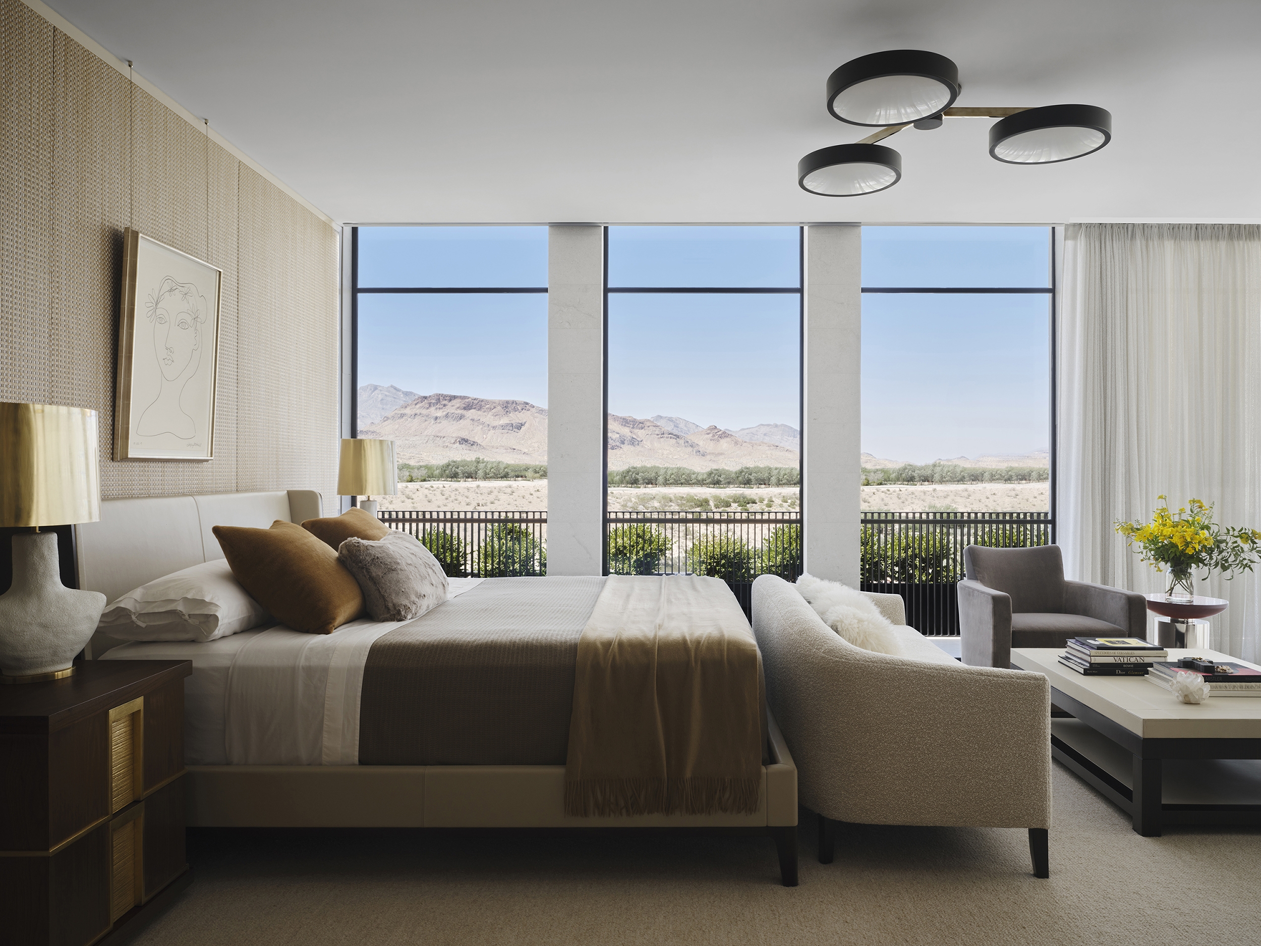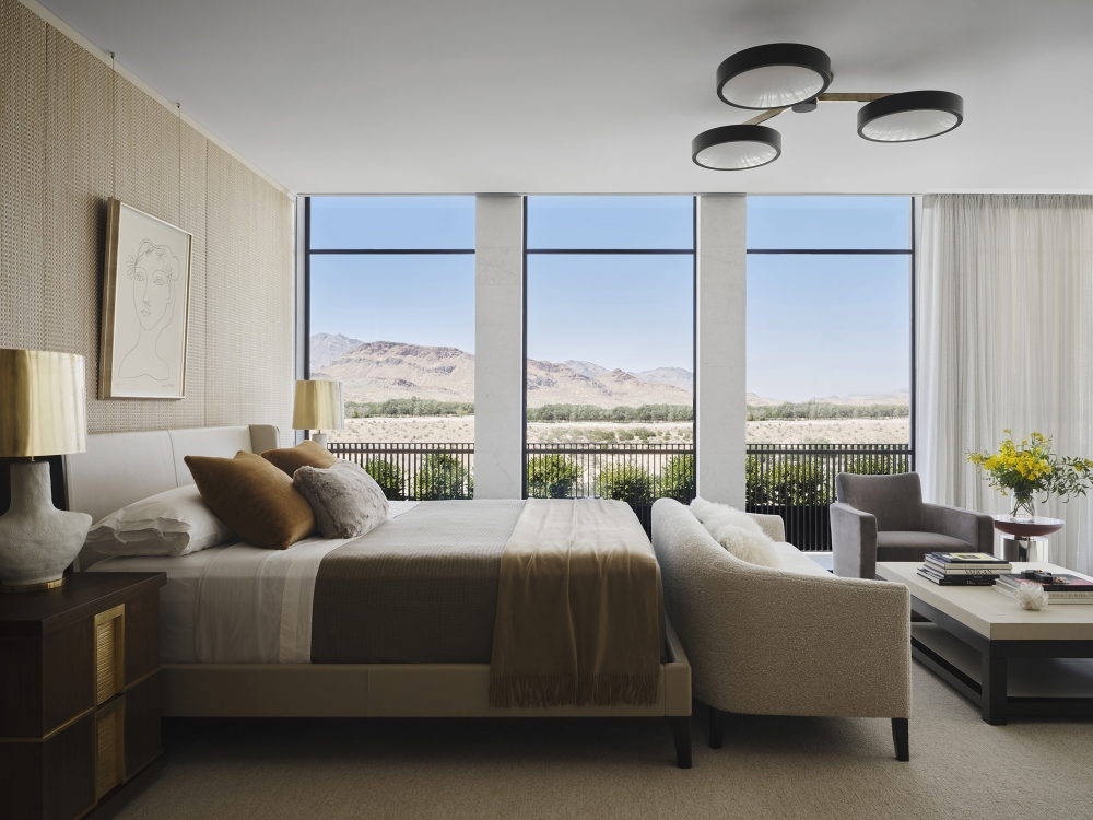Materiality becomes a medium for connection. Stone and patinated metals ground the home in its desert context, while finely crafted millwork and textiles infuse warmth and depth. Every element contributes to a sensory narrative, cool, polished surfaces set in tension with raw, organic textures, reinforcing the dialogue between shelter and exposure, precision and fluidity.