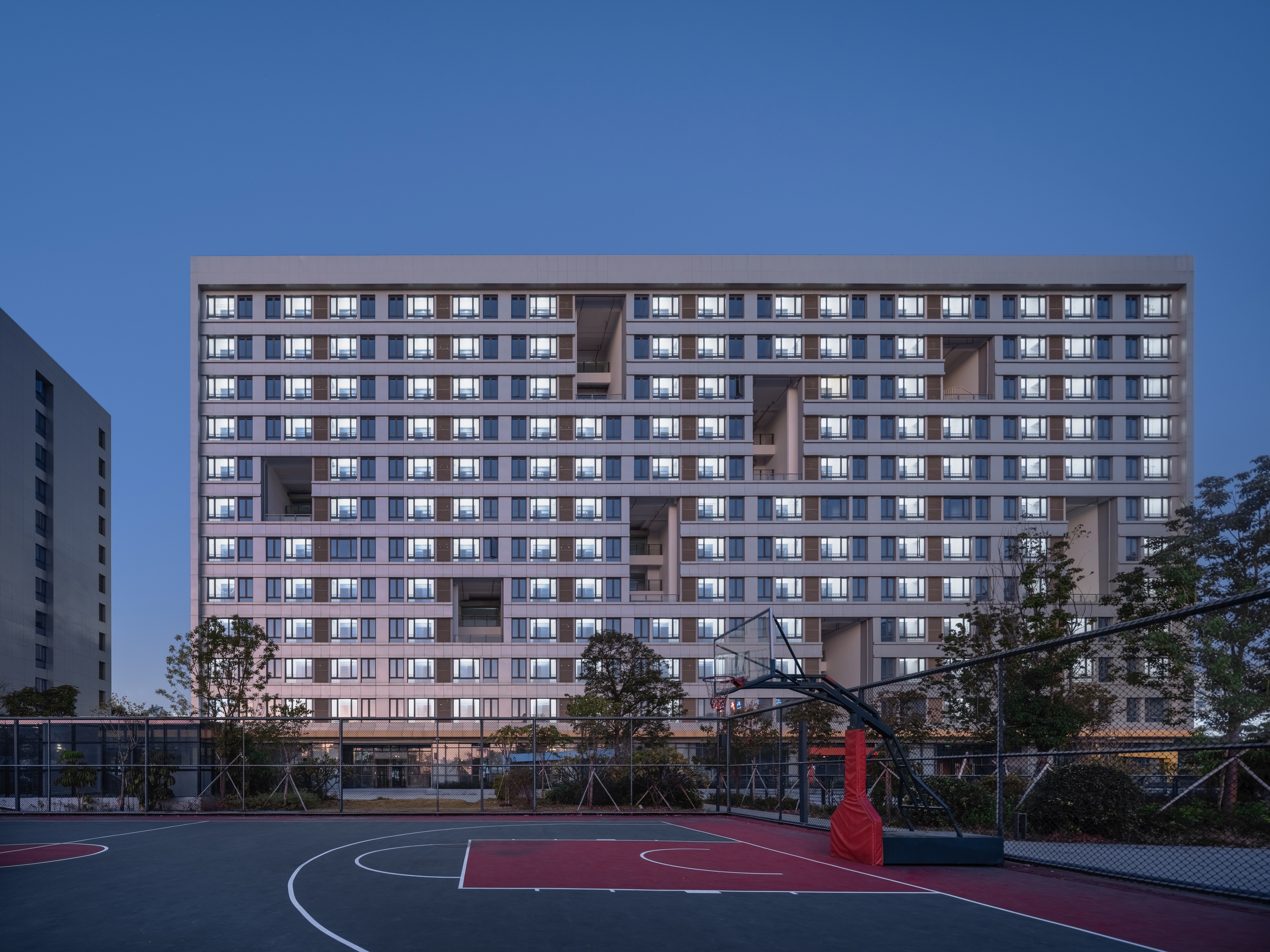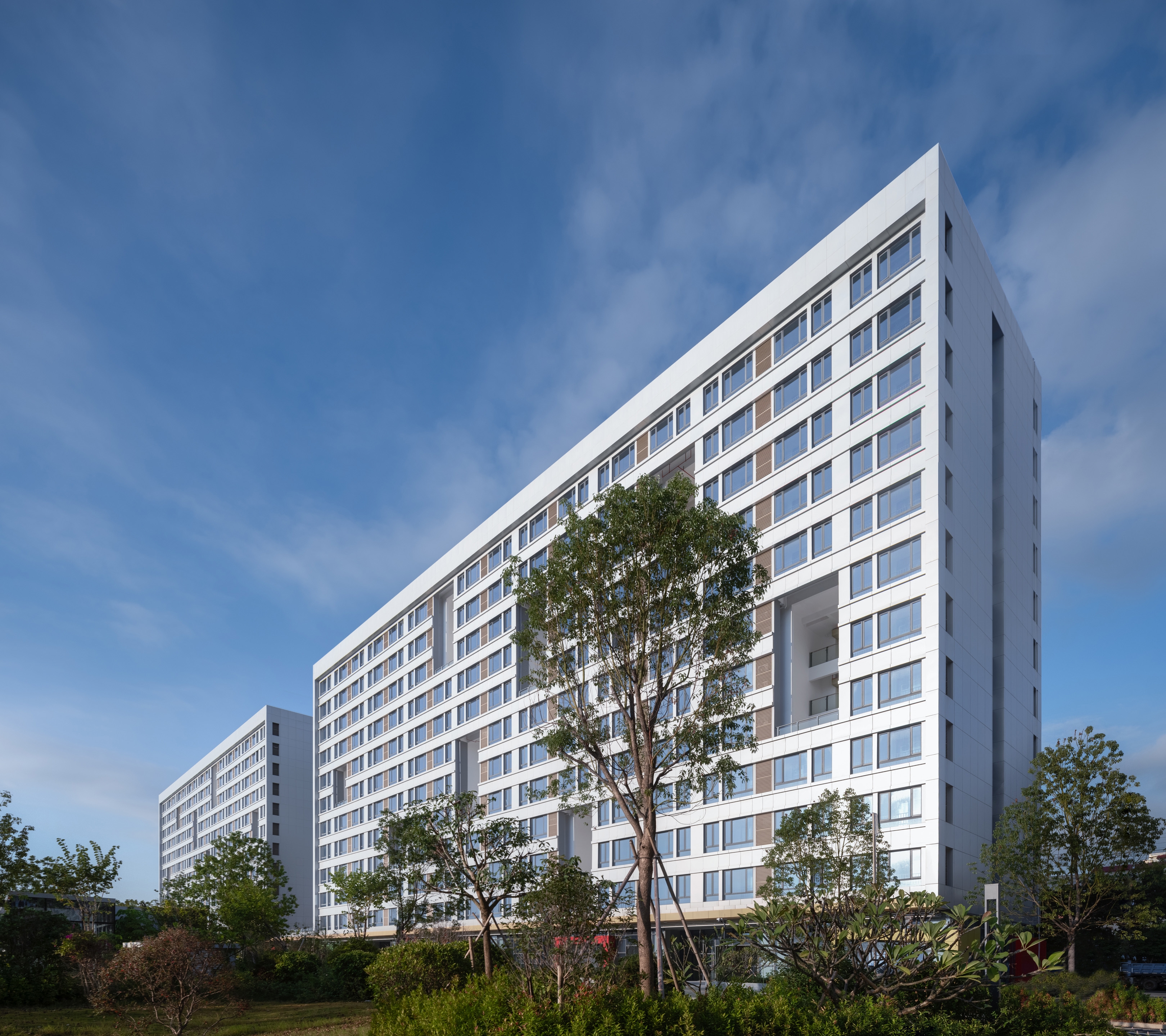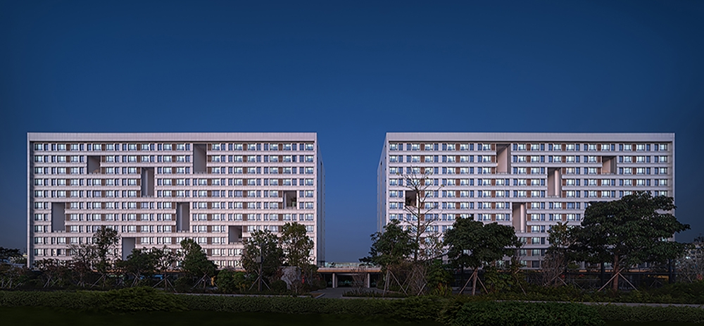 The overall design adheres to the strategy of "holistic planning and stylistic continuity." The two dormitory buildings continue the along-the-street layout from the first phase construction of the East 2nd Zone and adheres to the original master plan. They remain consistent in height and style with the dormitory buildings in the East 2nd Zone.
