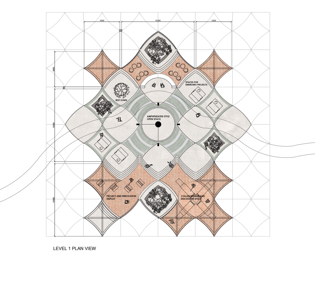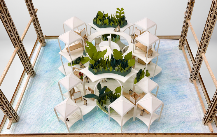 At the heart of the project lies a modular system that begins with a single core unit. Like a seed, it multiplies and branches into clusters of varying scale and function. This hierarchy allows the design to grow, evolve, and adapt with future programs- mirroring the organic rhythm of a mangrove ecosystem, and encouraging continuous learning, collaboration, and sustainable innovation.