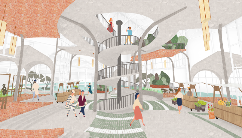 TRACK AND ROOT is a sustainable outreach hub that breathes new life into a forgotten landscape. Designed as an open platform, it provides space for sustainability-driven initiatives to test ideas, showcase projects, and connect with the public- spreading awareness on sustainable urban development.