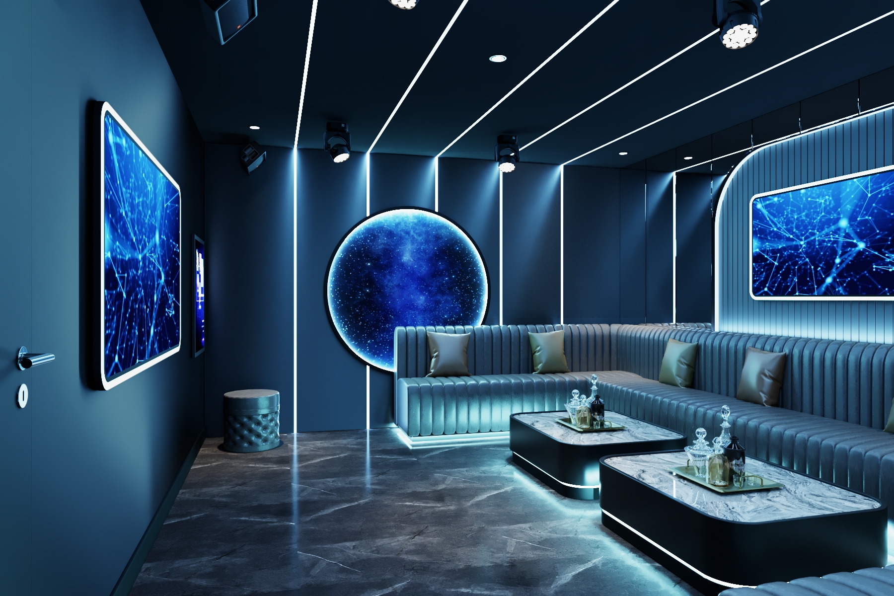 Welcome to this vibrant and metallic domain filled with blue brilliance—Chao K is not just a KTV; it is a future world woven with music and dreams, inviting you to explore endless possibilities together.