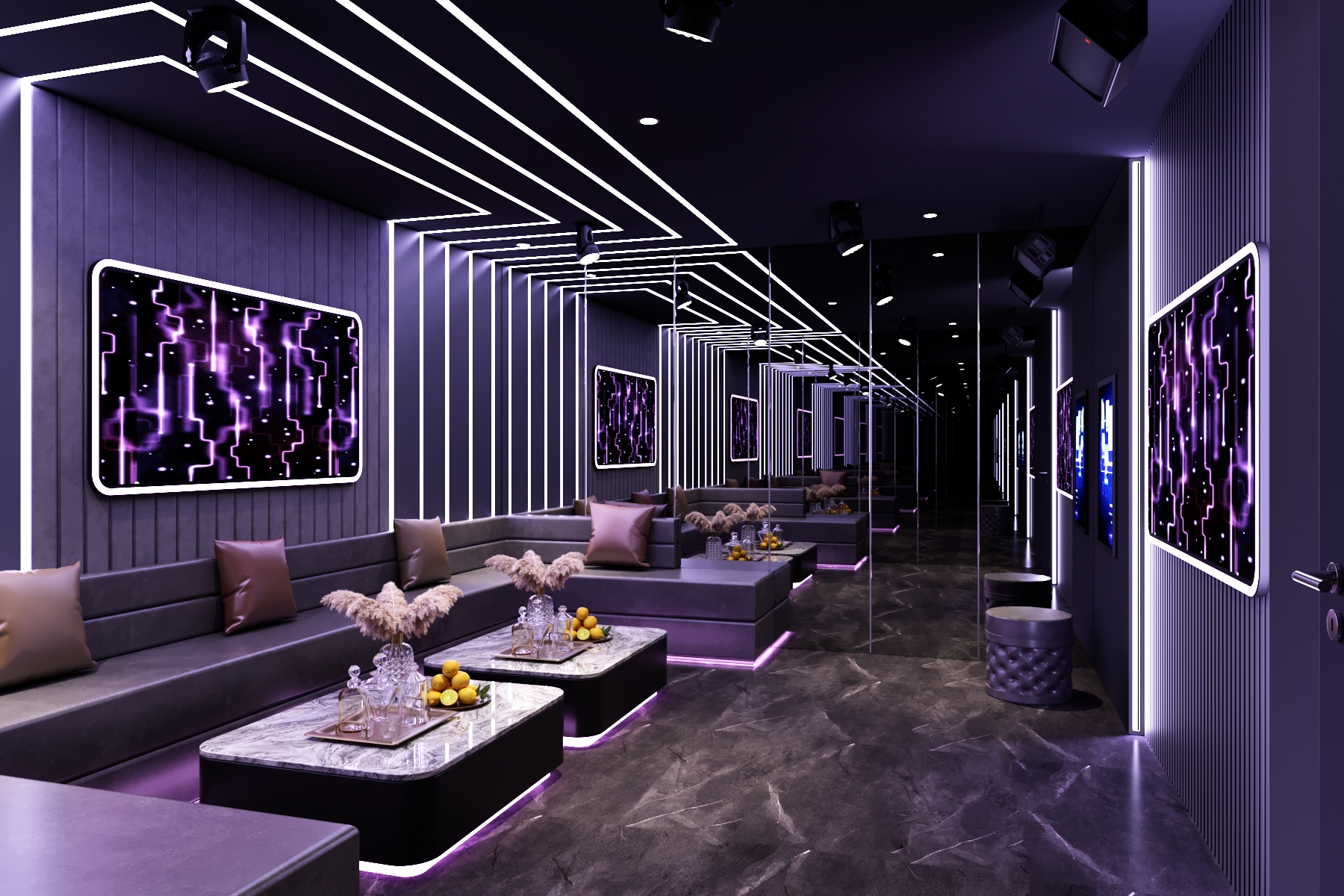 The interior unfolds like a dream: prismatic metal panels and immersive lighting choreography create a dynamic interplay of color, reflection, and rhythm. As melodies rise, surfaces shimmer in harmony, wrapping guests in an otherworldly ambiance where sound becomes light and space becomes sensation.