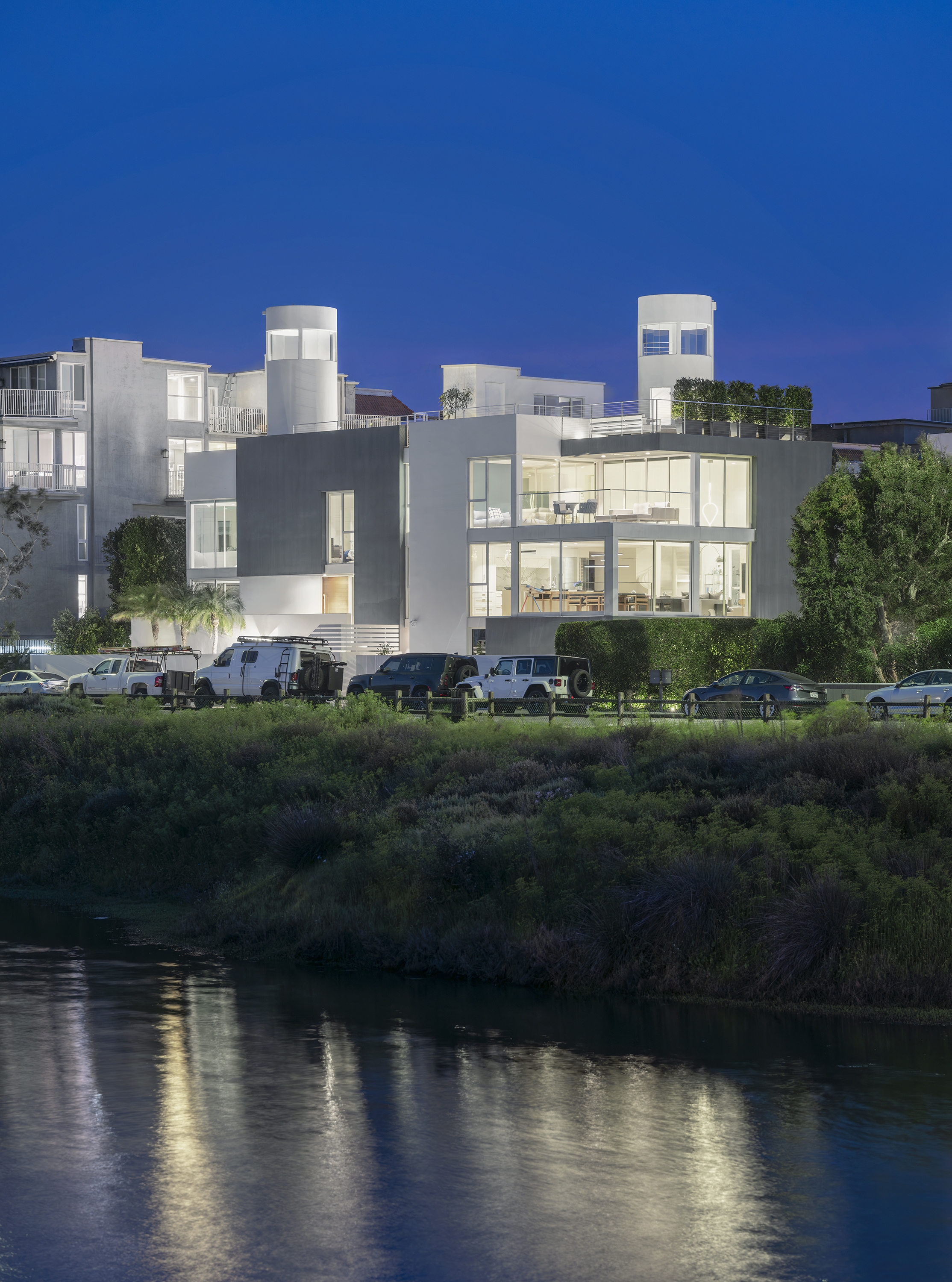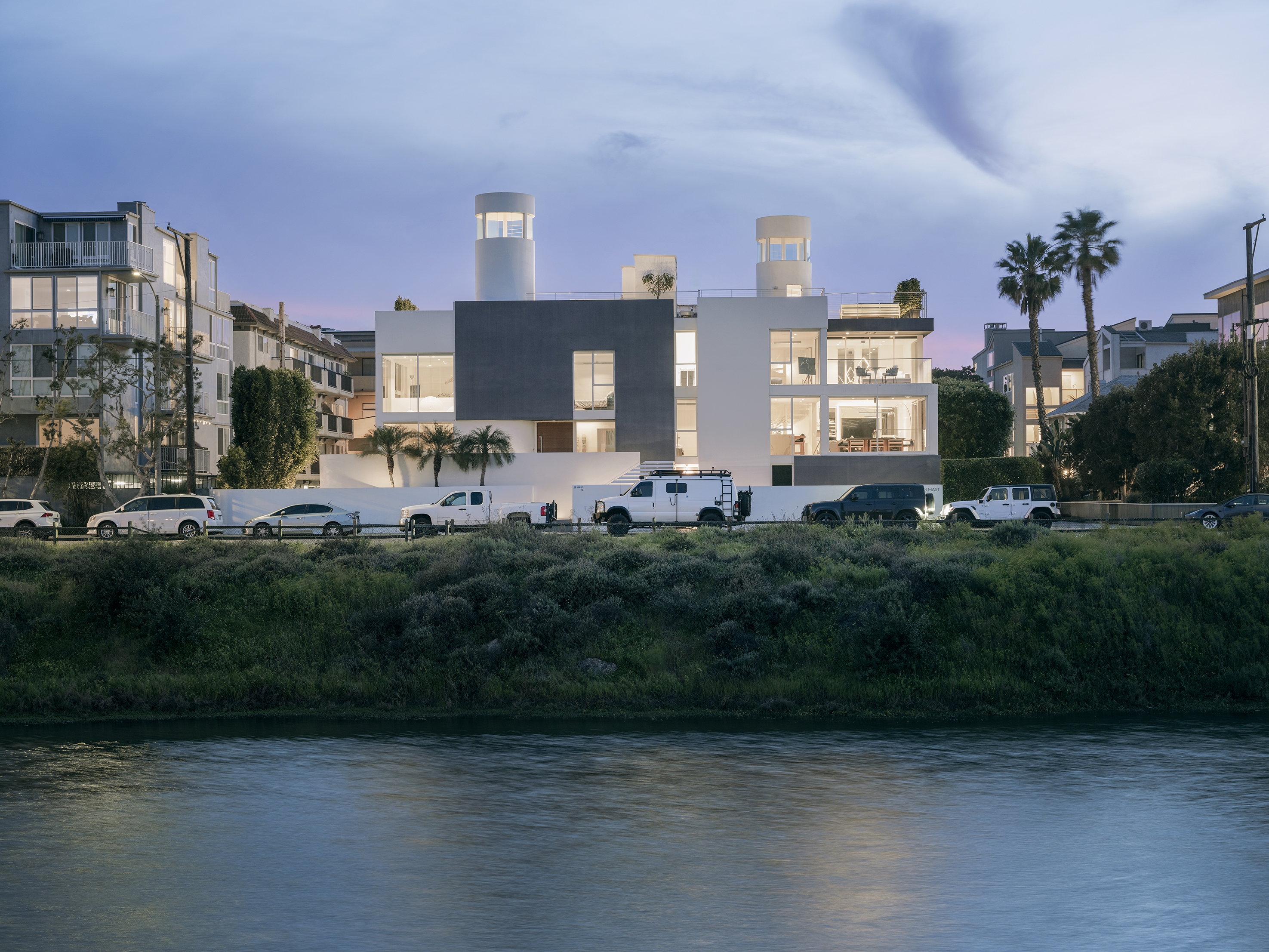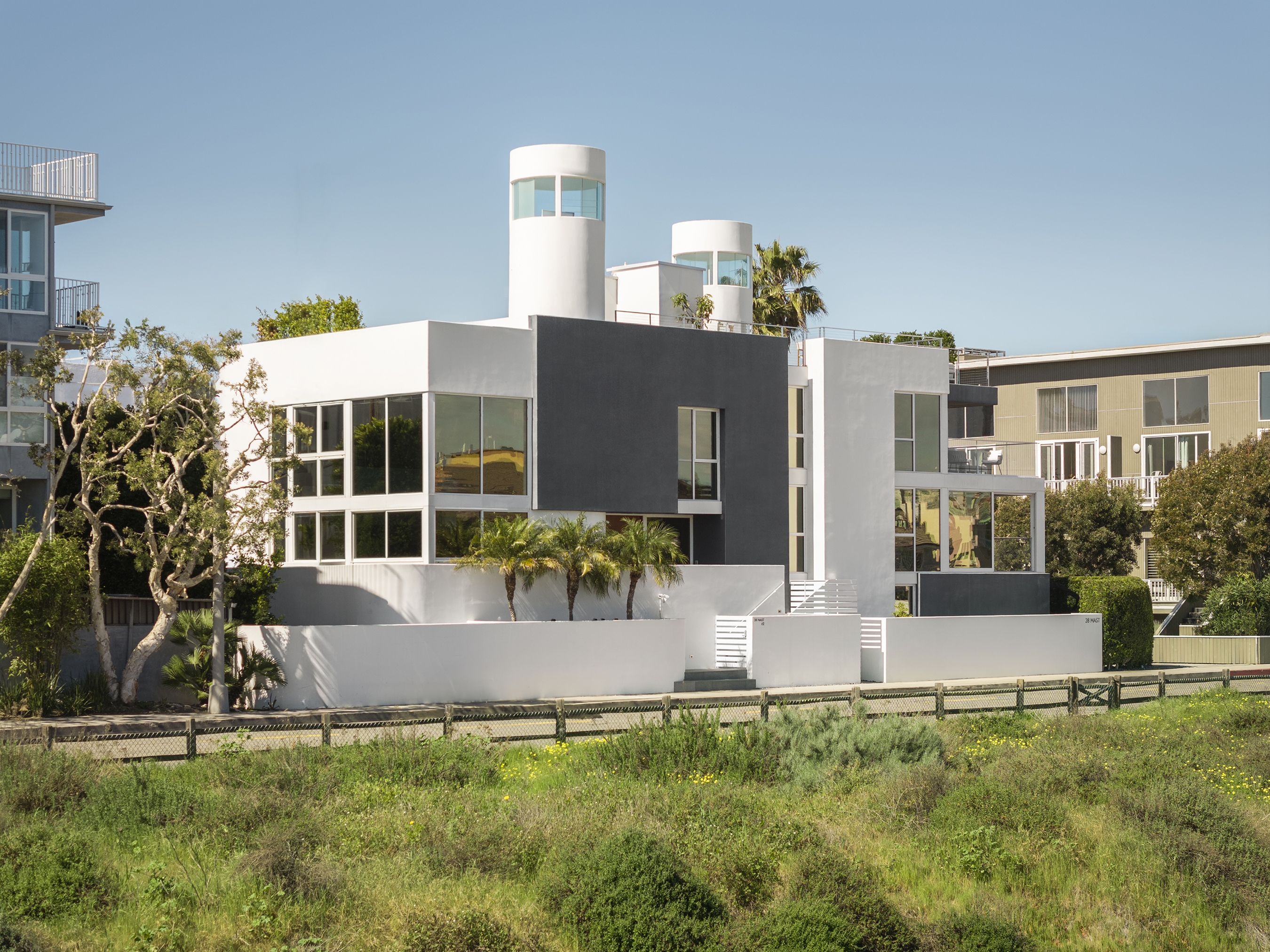 Notable from the street are the dueling towers soaring to +45’ a folly by architect Clelio Boccato (former Ray Kappe associate). Originally offering limited views, the renovation continued glazing 360° for sweeping vistas of the canal and ocean. All resulting in a contemporary design, enhancing experiences, adding valuable living space, and repositioning the property in the market.