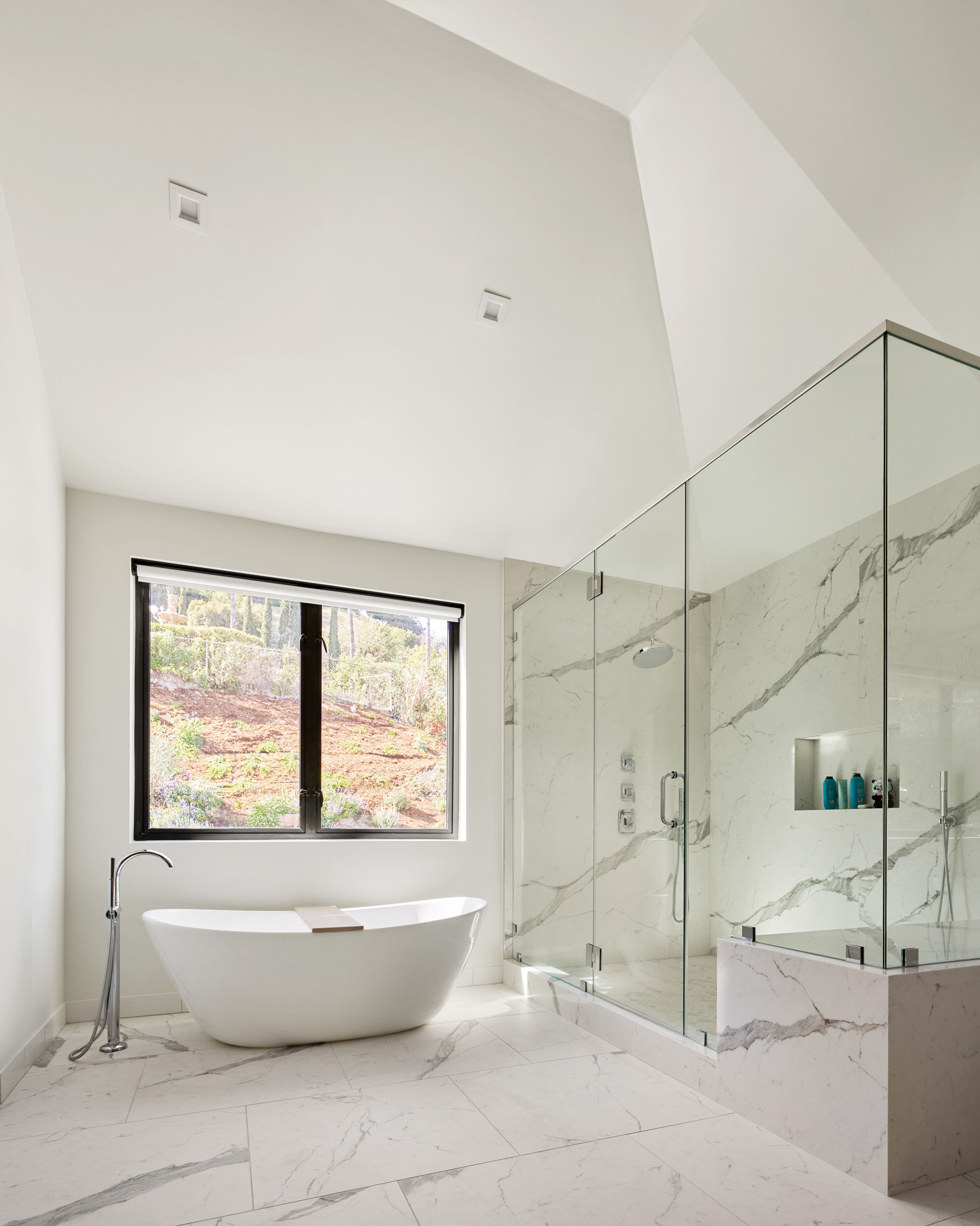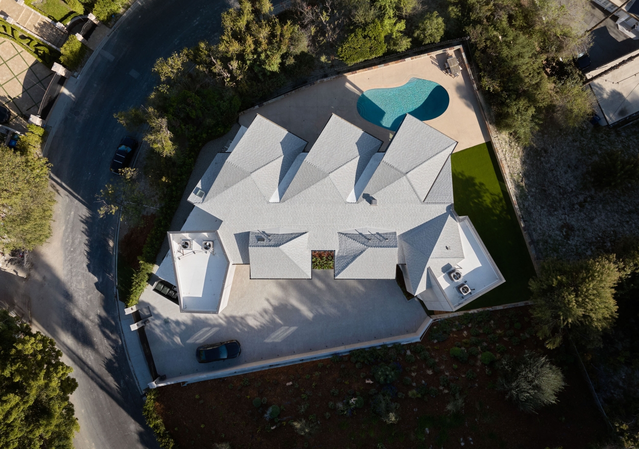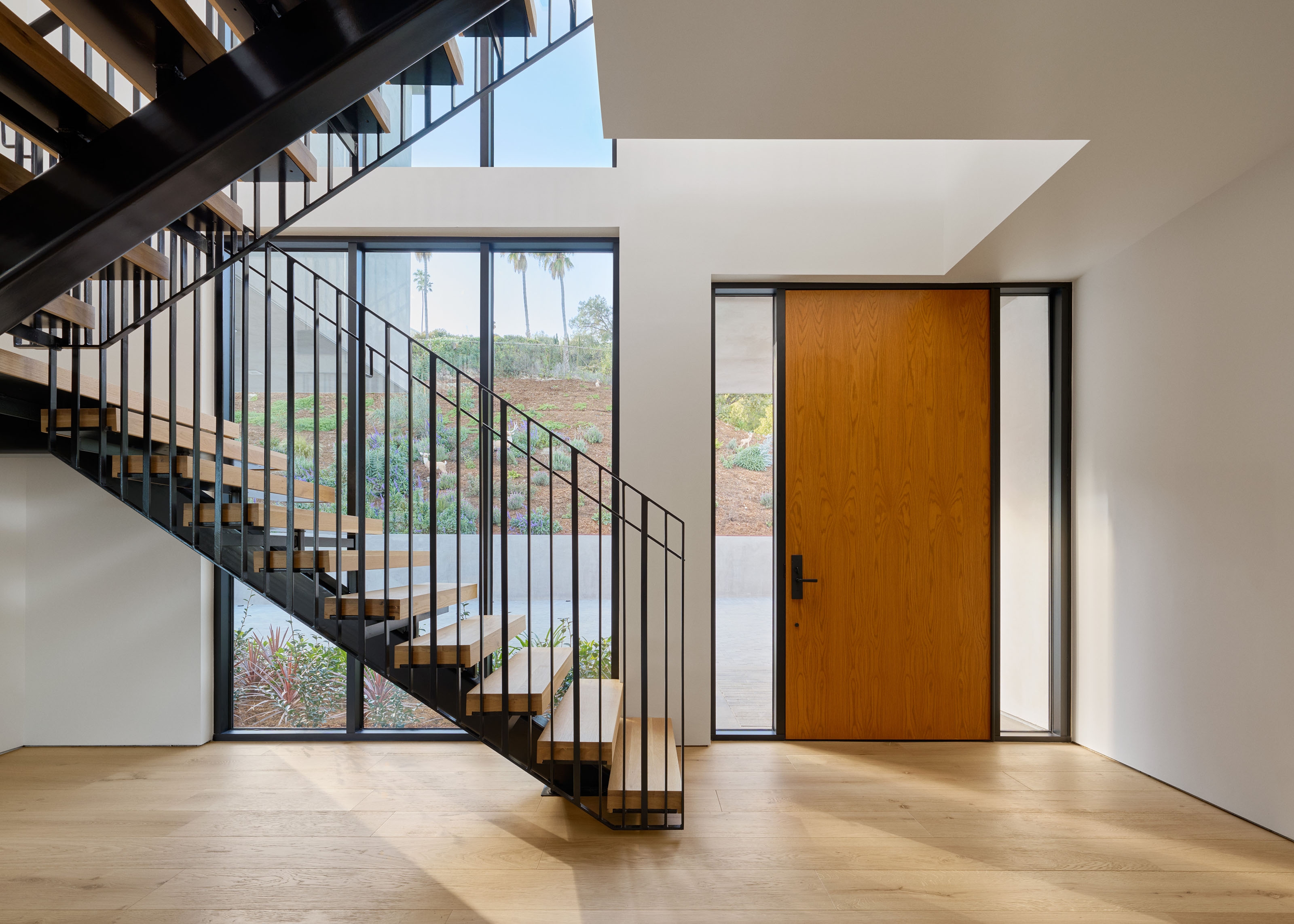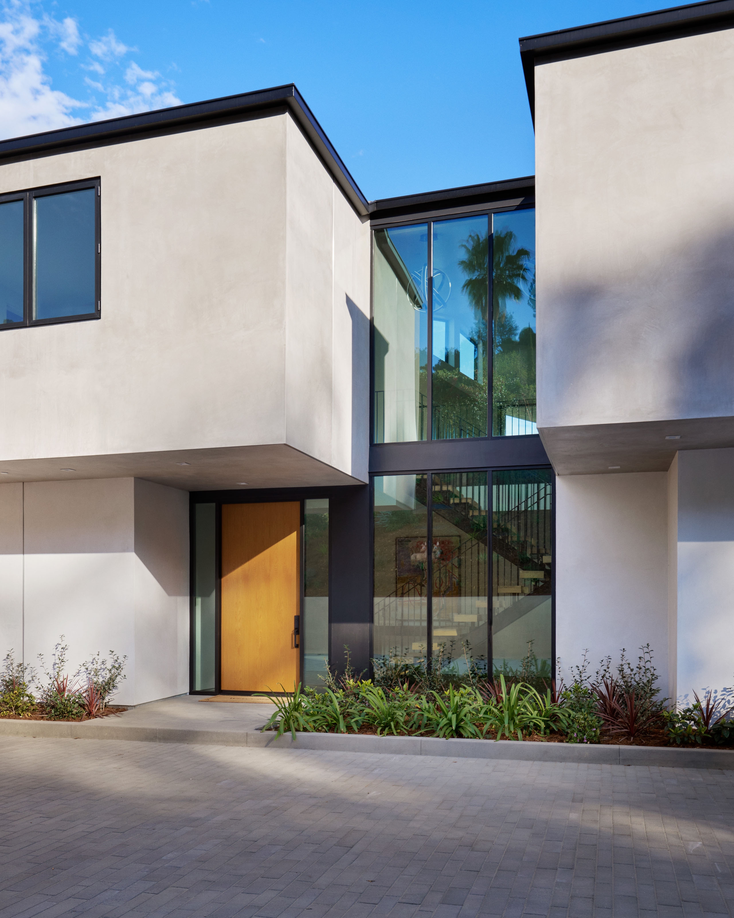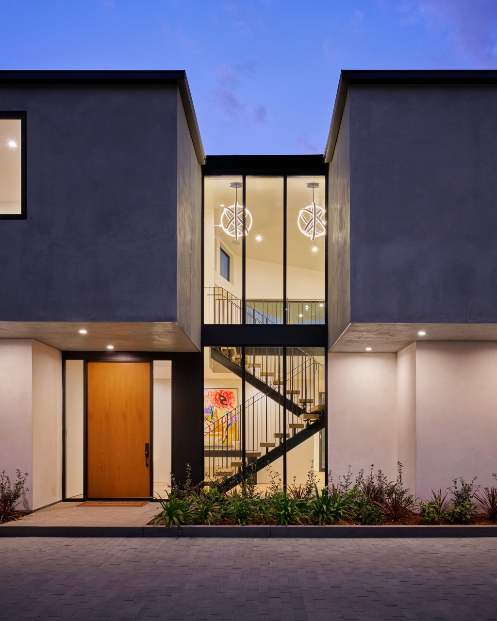 In spite of being in the Valley’s notoriously tough environment glazing is plentiful but only after careful 3D study that led to deep overhangs or vertical canyons between cantilevered 2nd floor rooms.