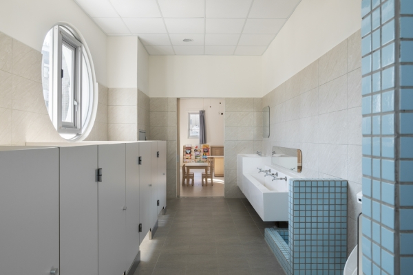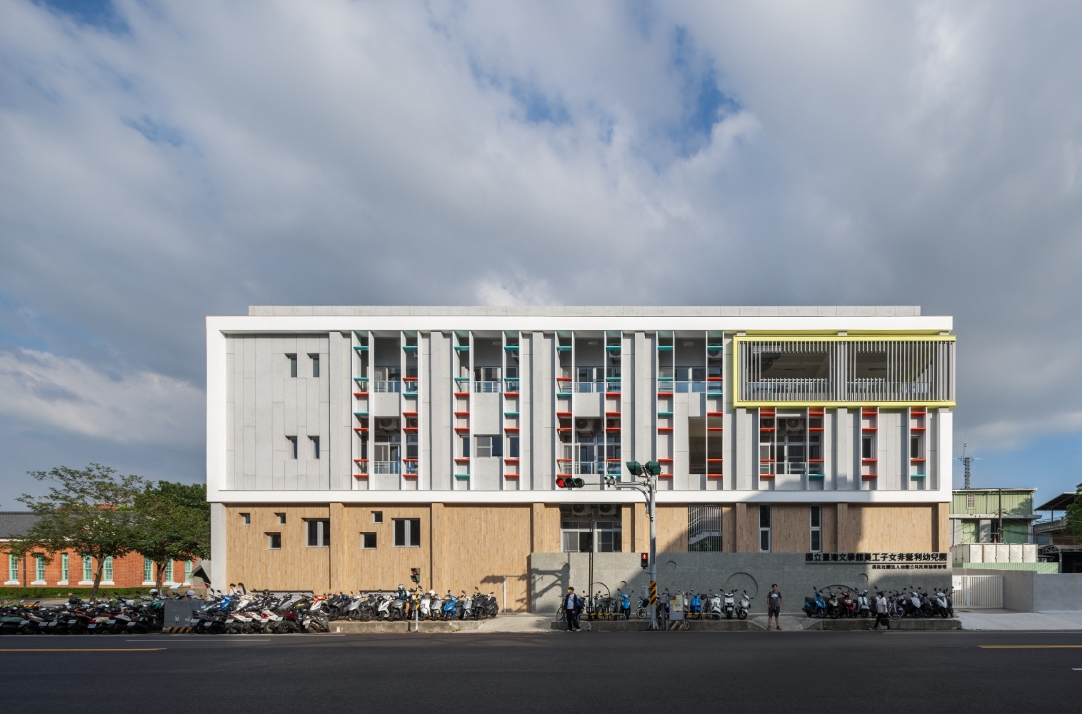 The façade incorporates colors inspired by the National Museum of Taiwan Literature—patina green, brick red, classic white, and the warm yellow of Tainan’s sunshine—stimulating creativity and fostering local identity. Here, children joyfully begin writing the prologue of their childhood, framing vibrant moments of activity and creating a picture book that is uniquely their own.