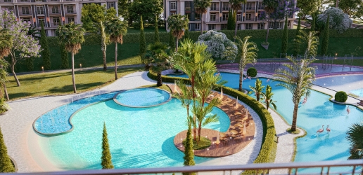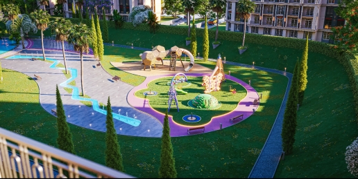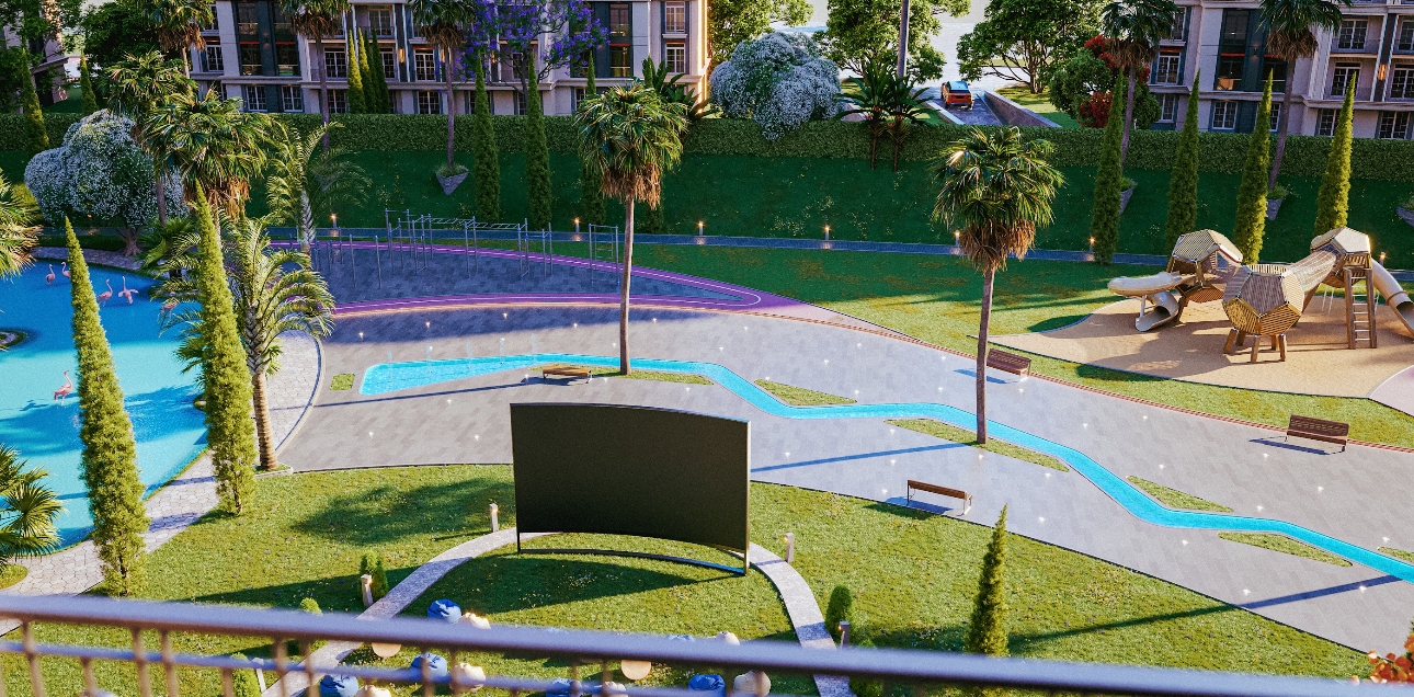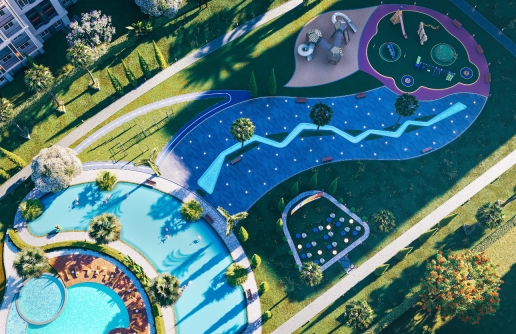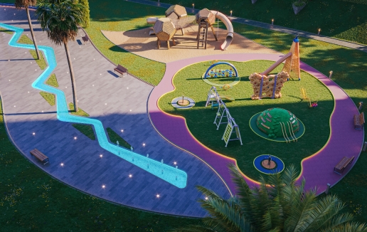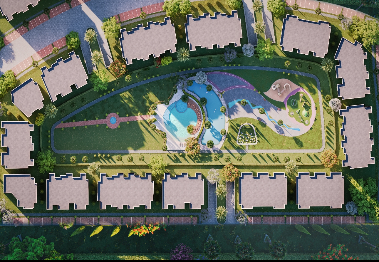 Dijar is a thoughtfully designed community where modern living meets the tranquility of nature. The masterplan reflects unity and imagination, with clusters inspired by the elegant form of a flamingo - At the top, a vibrant playground forms the "head" of the flamingo, inviting children into a world of fun. Below, shaded seating and an interactive flamingo zone create a relaxing, nature-inspired retreat. The "wings" unfold as a lagoon pool surrounded by lush greenery, while the "legs" transform into a splash pad and playful water path, symbolizing the flamingo’s graceful stride.. Every space is crafted for family life, blending lush landscaping, serene water features, and functional green areas that foster connection and well-being.