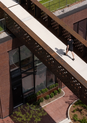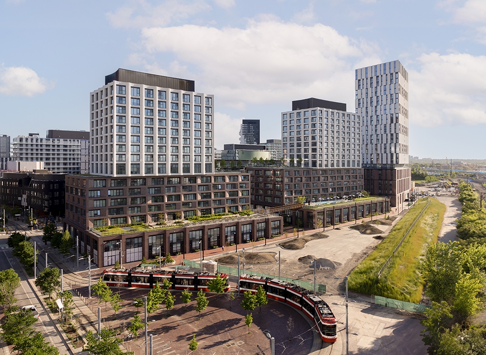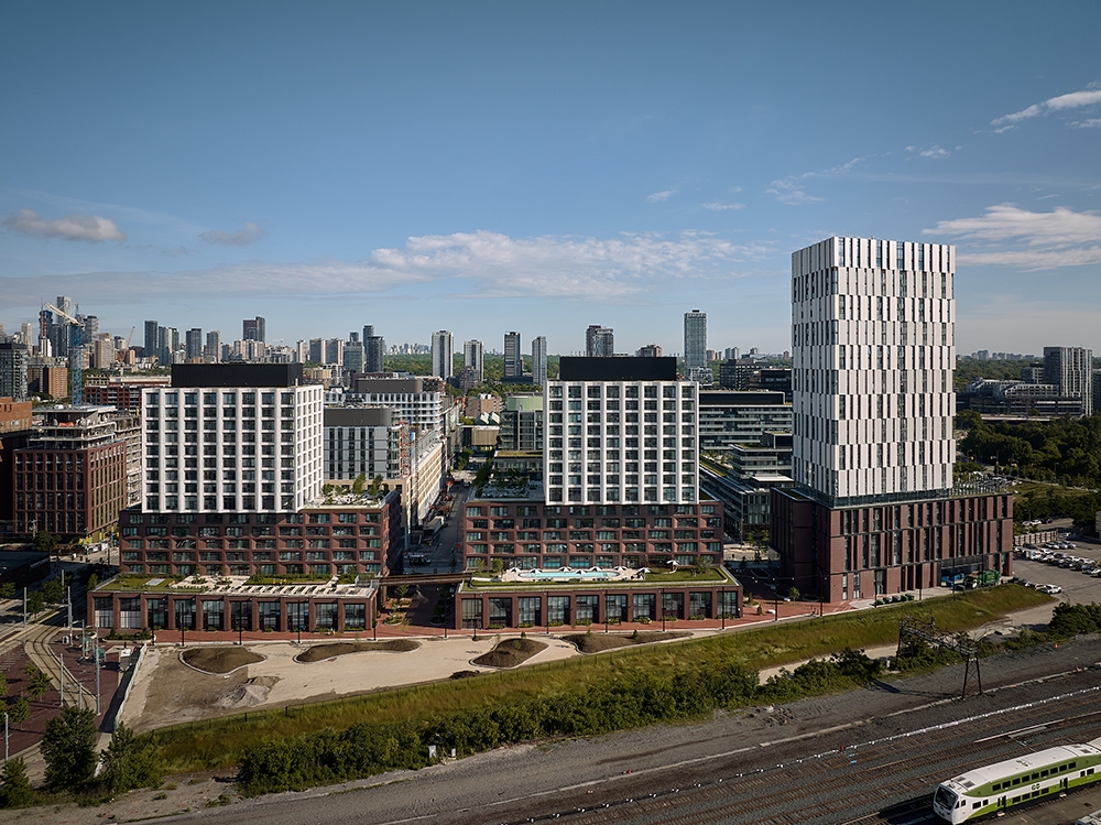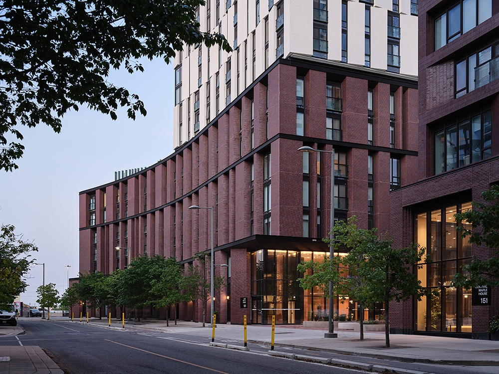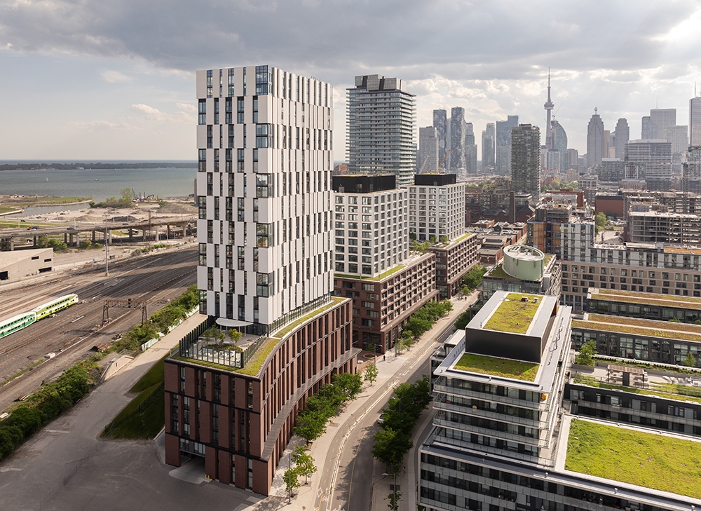 Maple House opened the newest chapter in the redevelopment of the West Don Lands (WDL), a 80-hectare brownfields in Toronto’s 19th century industrial waterfront. This 770-unit, LEED® Gold rental project addresses the city’s pressing need for high-quality housing for residents at all income levels. The architects, inspired by the site and its context, have responded with an approach that is inventive, respectful of architectural and socal heritage, and environmentally responsible. They drew heavily on the area’s diverse typologies to create a layered, tripartite massing defined by a robust, low-slung Podium layer, stacked with finely detailed Mid-rise components, and topped with sculpted Towers that identify the new neighbourhood on the skyline.