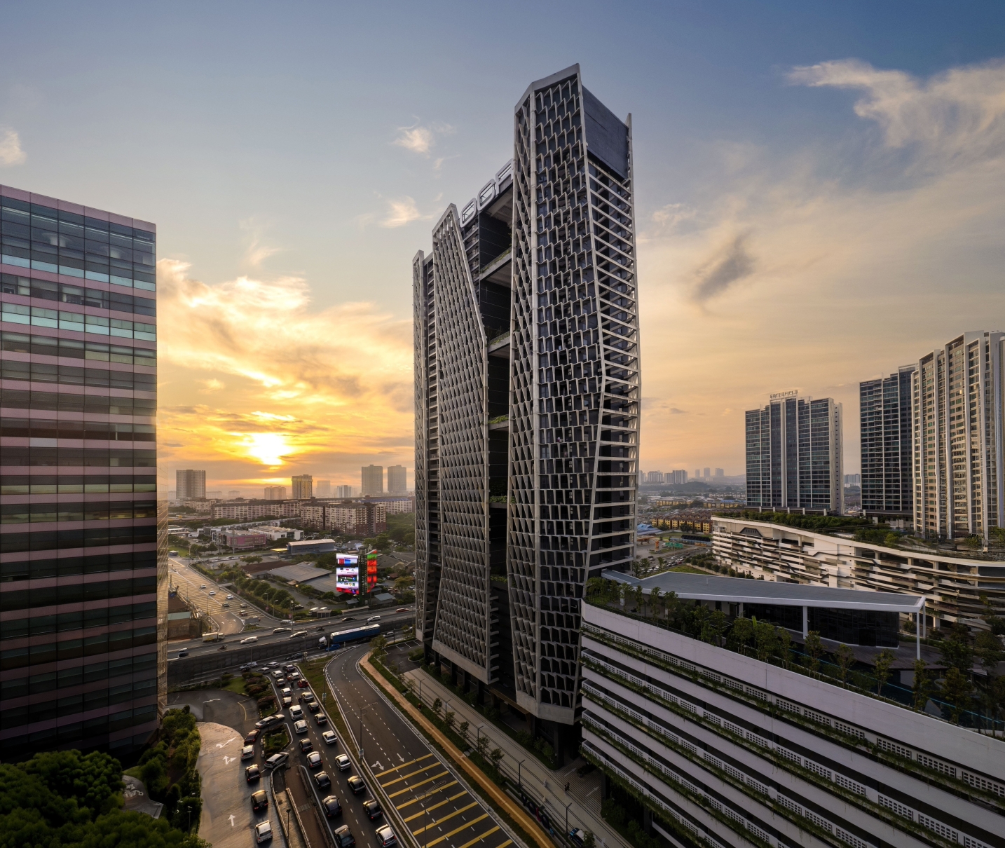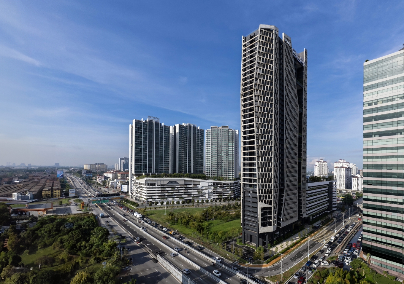 YOLO Signature Suites, a 140-meter, 40-floor office suites in Bandar Sunway, stands as a striking addition to the cityscape. It’s design draws inspiration from the rugged, sculptural characteristics of mountains, with curved lines, undulating shapes, and layered contours that blend harmoniously with the natural environment. The building's fluid and dynamic exterior mirrors the undulating slopes of mountains. Focused on creating a vibrant community hub near universities, the project promotes collaboration, learning, and social interaction. It integrates functional spaces, innovative technologies, and sustainable features to foster an inclusive, future-ready space for students, faculty and locals.