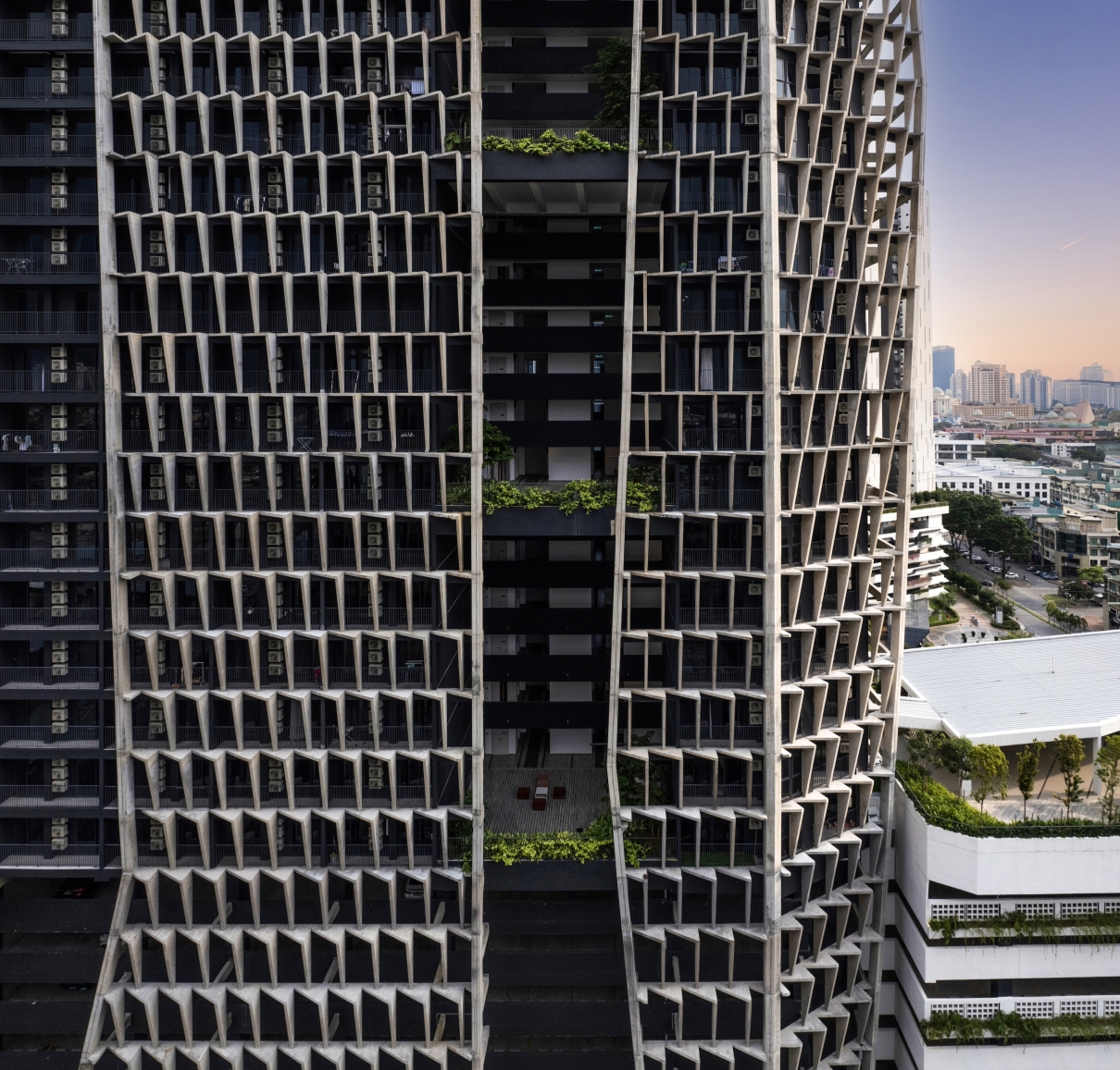 The architectural vision draws inspiration from the textured stone facade. The tower facade features around creating a dynamic interplay of light, shadow and materiality. The combination of angles, finishes and textures in the buildings facade design creates an interplay that captures the changing reflections of sunlight throughout the day.