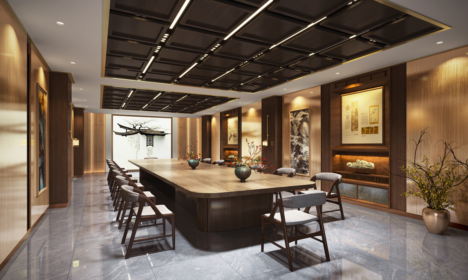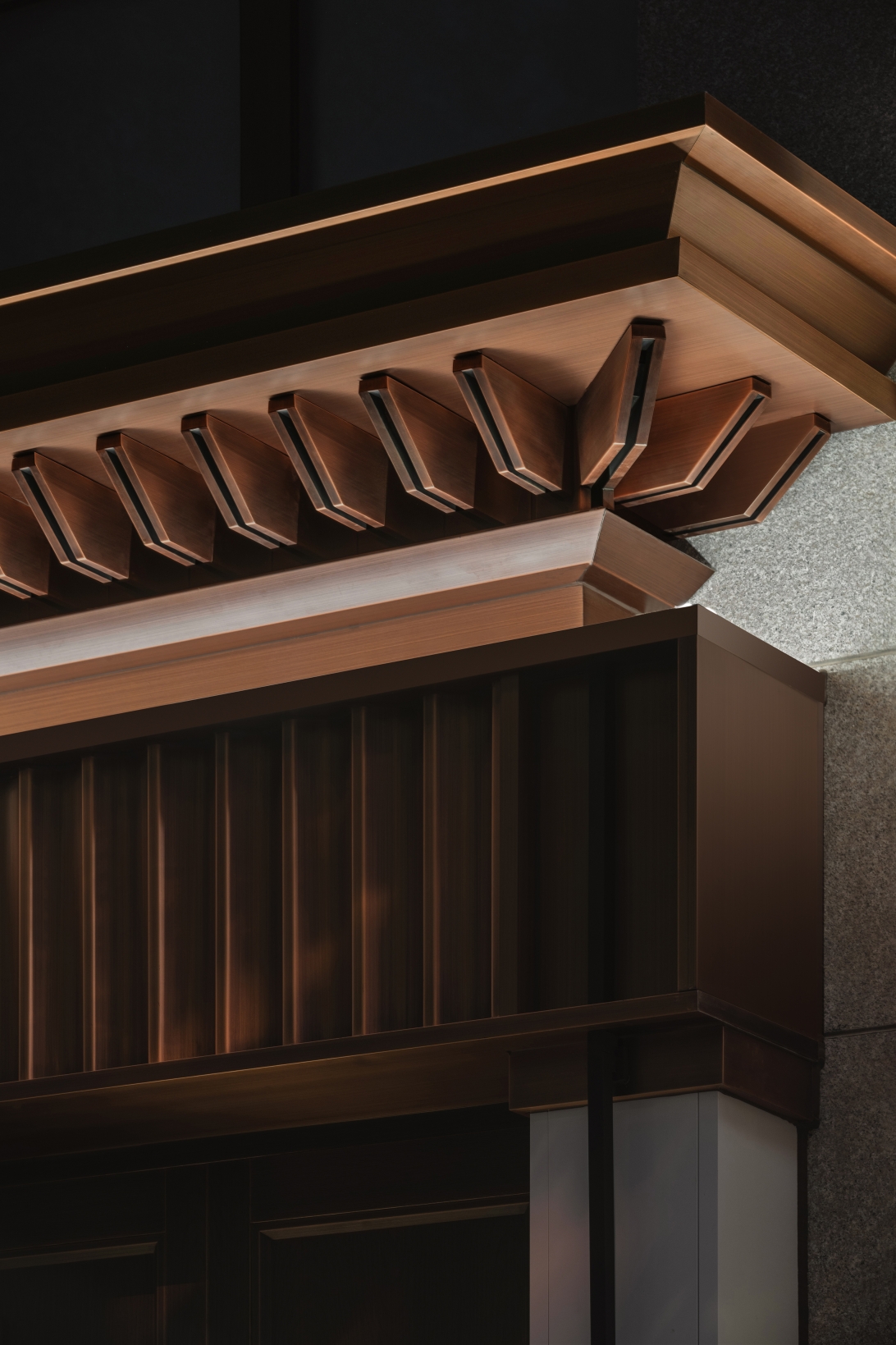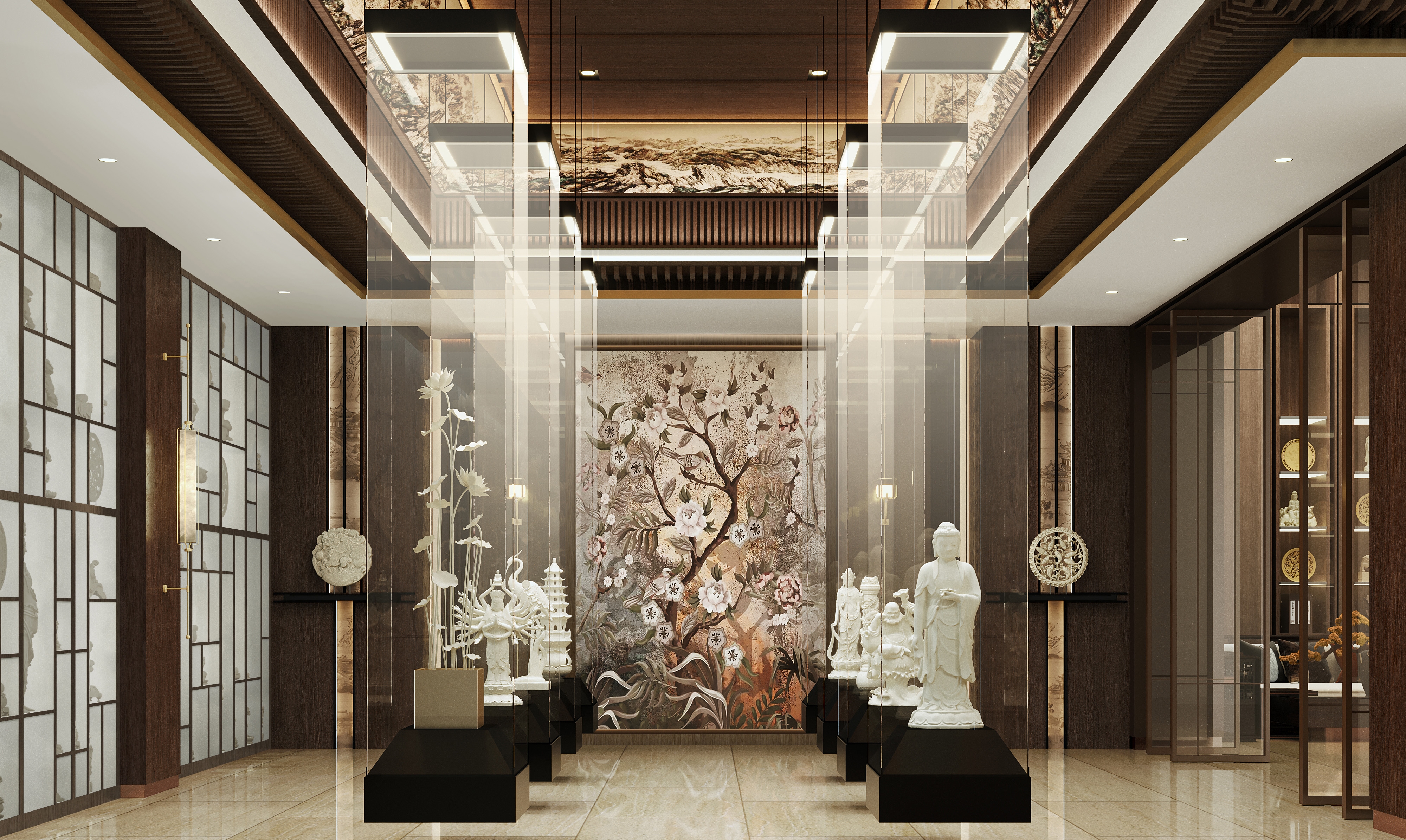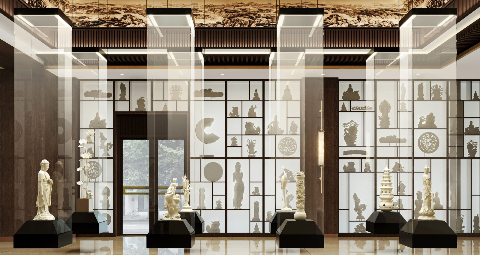 The project unites cultural exhibition and retail, transforming tradition into an immersive customer experience. The design blends Chinese architectural motifs—screen walls, flying eaves, and copper detailing—with modern simplicity, creating a refined environment that elevates both display and commerce.