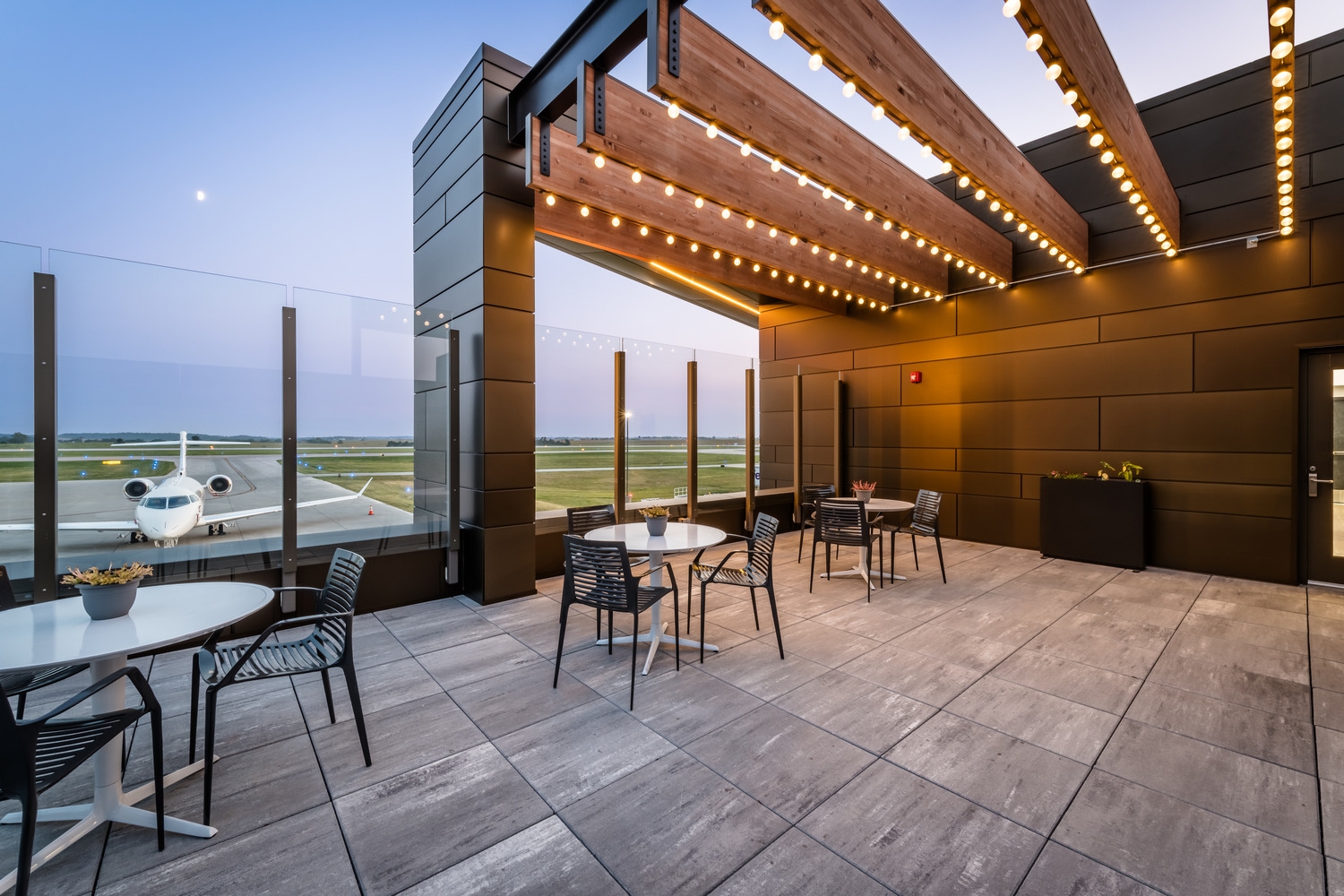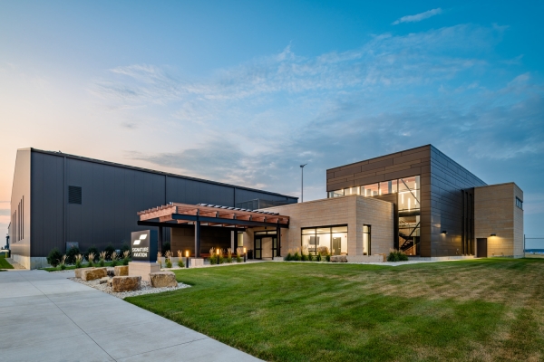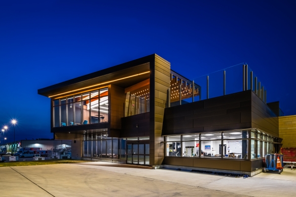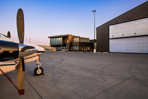 The Eastern Iowa Airport's new Fixed Base Operator (FBO) facility and aircraft storage hangar elevates aviation infrastructure by integrating functionality, sustainability, and refined design. Built to accommodate growing demand for athletic charters and executive flights, it enhances private and corporate aviation services while supporting regional growth.