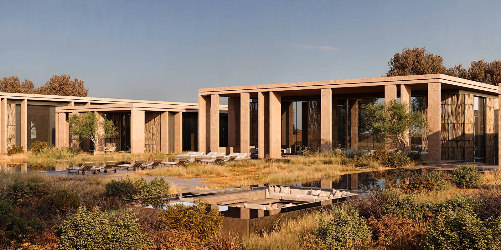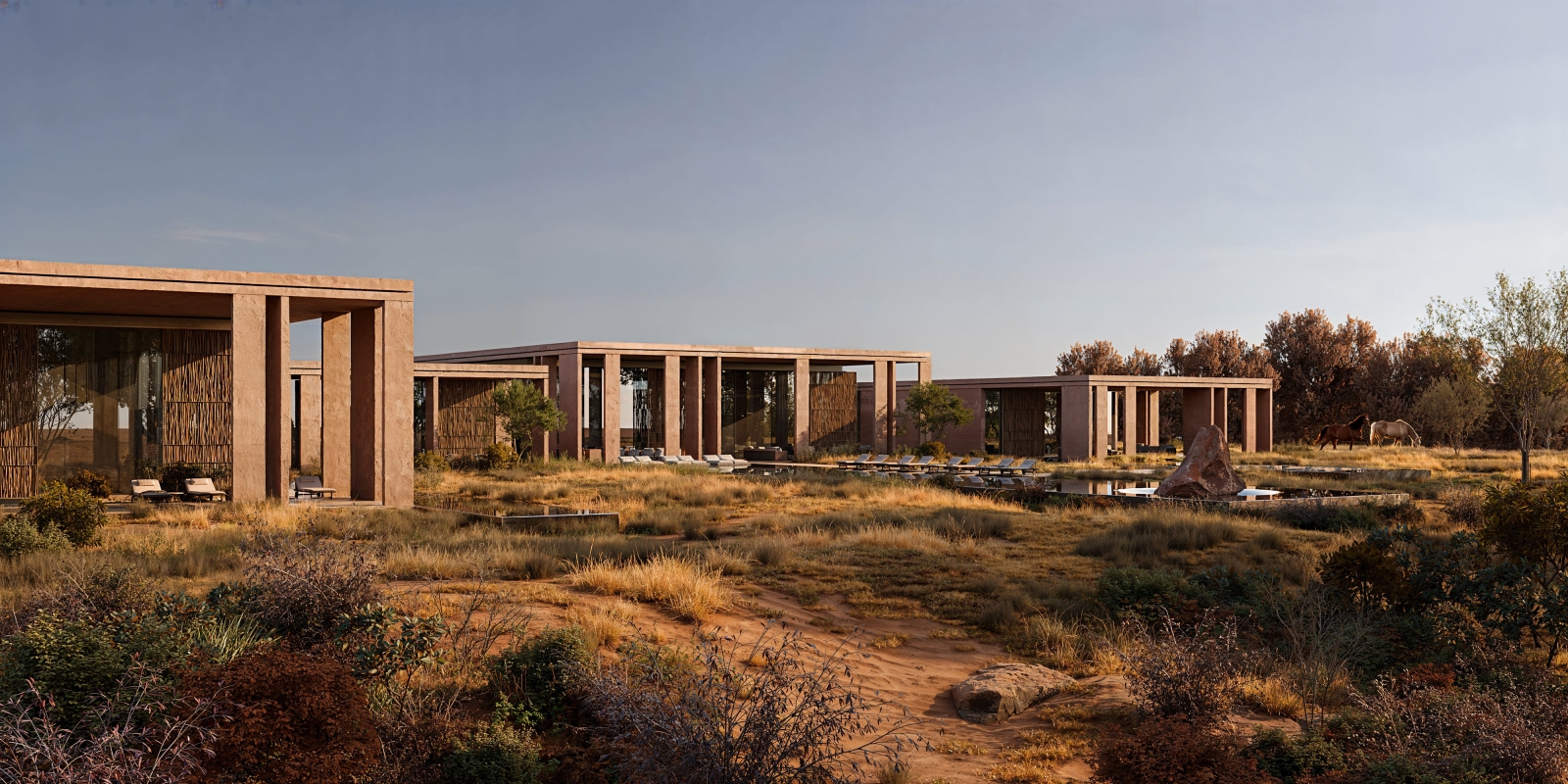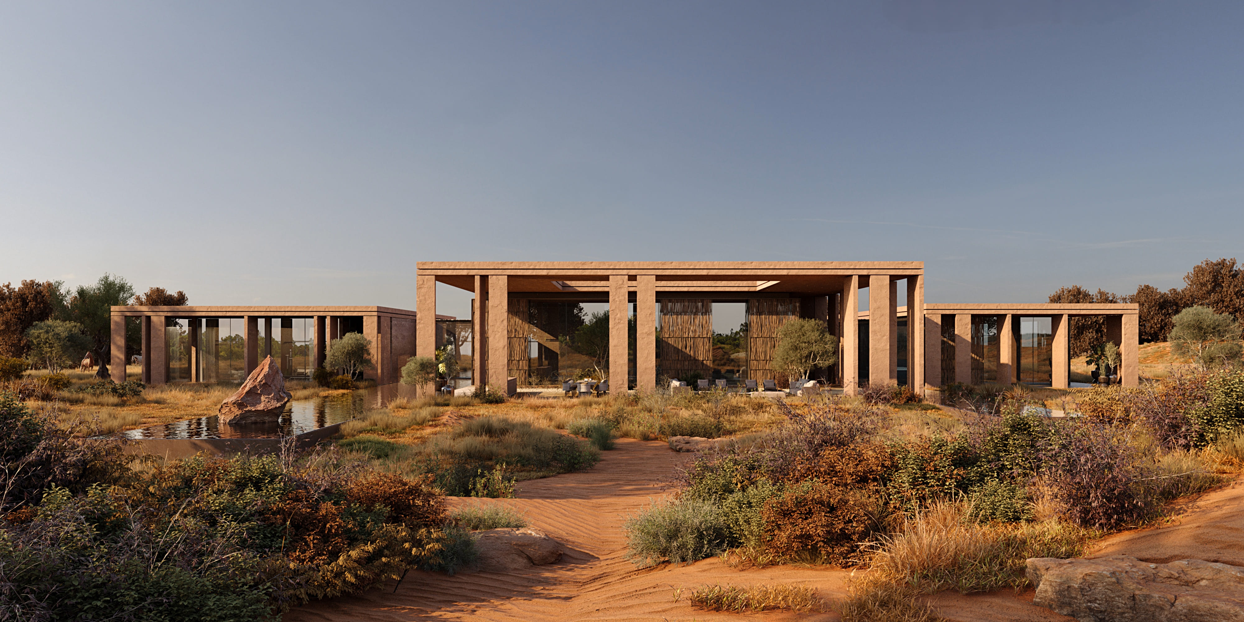 The architecture unfolds as a sequence of calm, luminous volumes. Soft curves, deep overhangs, and filtered light create a spatial experience grounded in subtle architectural complexity. The layout prioritizes privacy and introspection: each suite functions as an independent living unit, framed by curated outdoor views and modulated daylight.