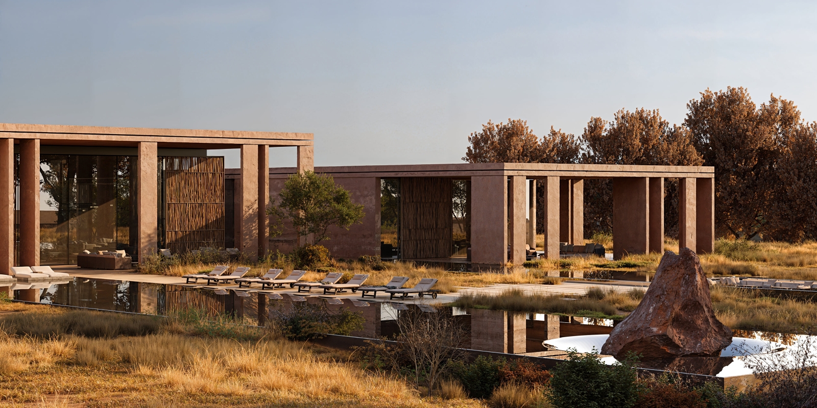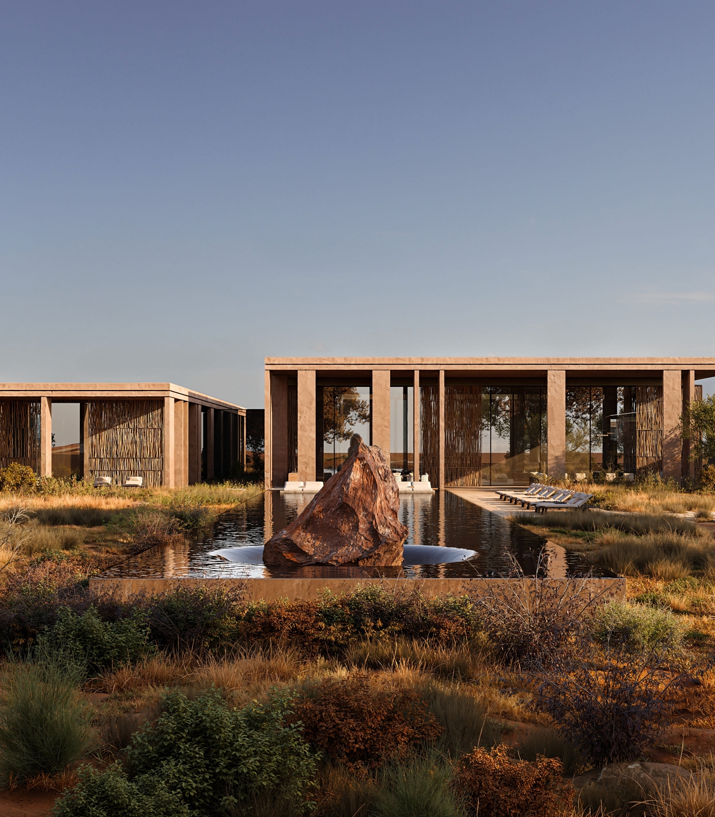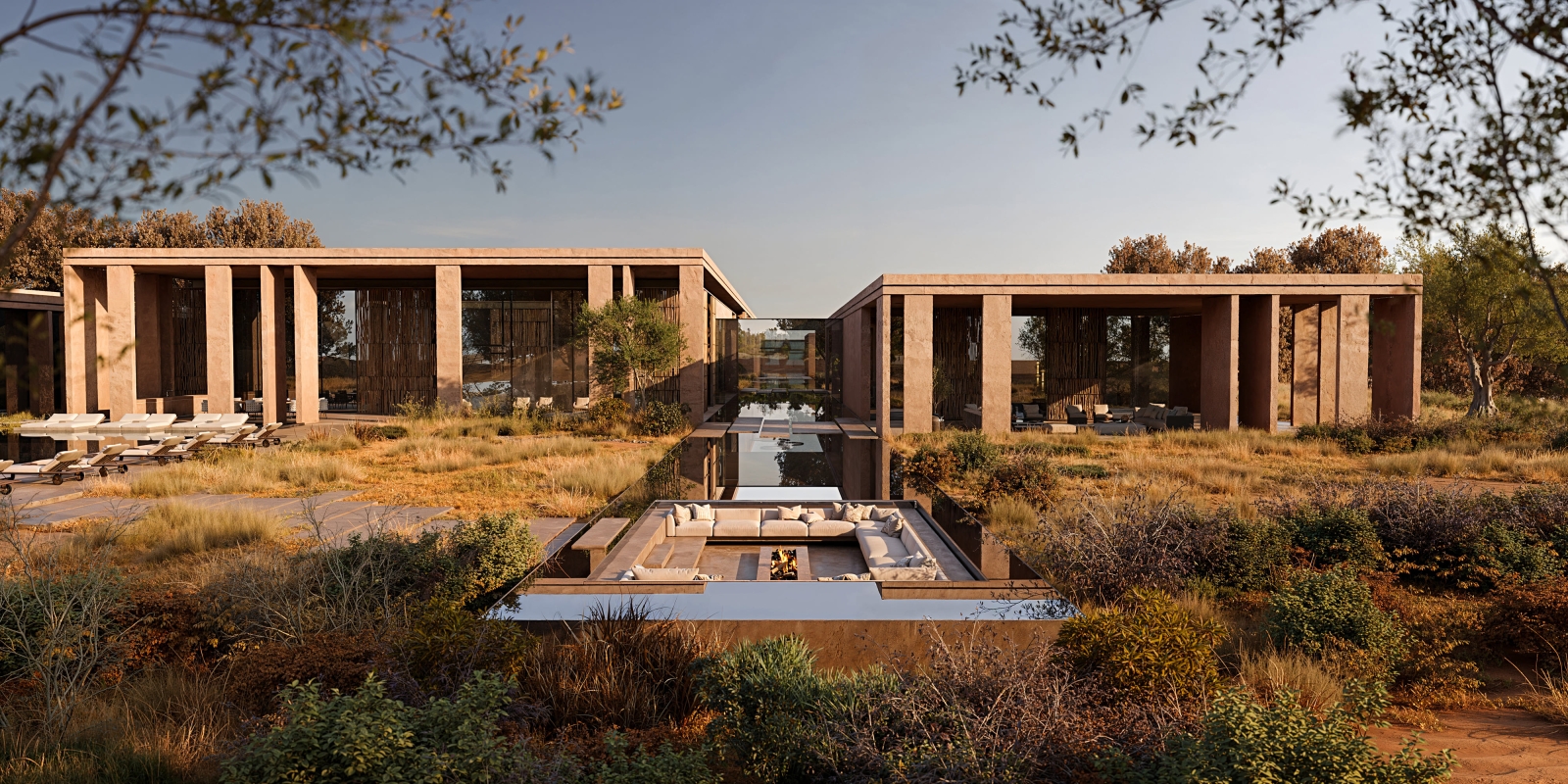 The architecture unfolds as a sequence of calm, luminous volumes. Soft curves, deep overhangs, and filtered light create a spatial experience grounded in subtle architectural complexity. The layout prioritizes privacy and introspection: each suite functions as an independent living unit, framed by curated outdoor views and modulated daylight.