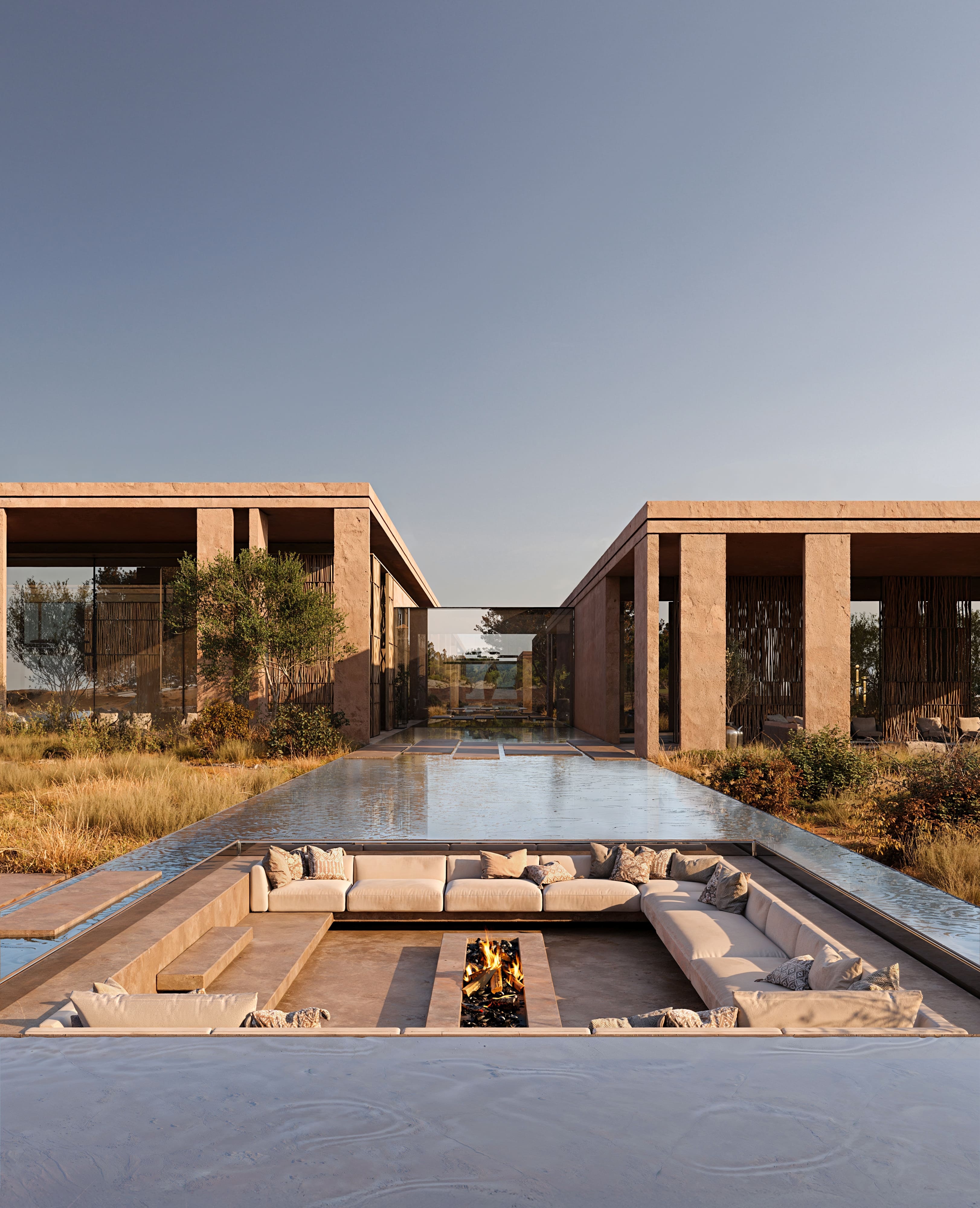 Serava Villa is a private residence located in one of the most secluded and exclusive areas of Abu Dhabi. The design draws inspiration from the surrounding desert landscape and nearby sea, interpreting their fluidity, textures, and tones through sculptural forms and a muted material palette.
