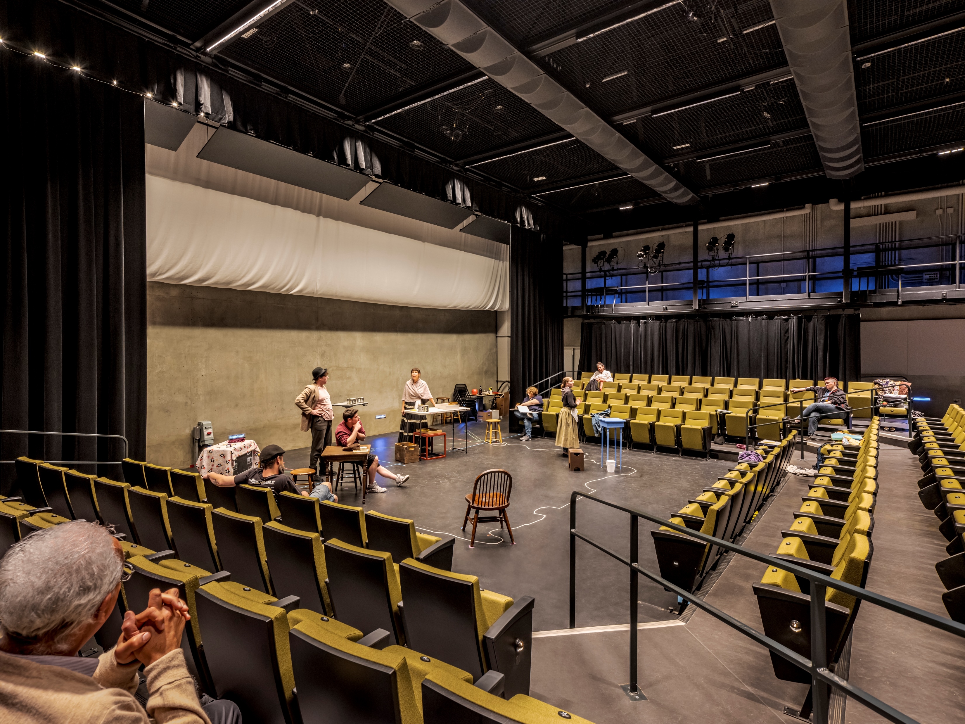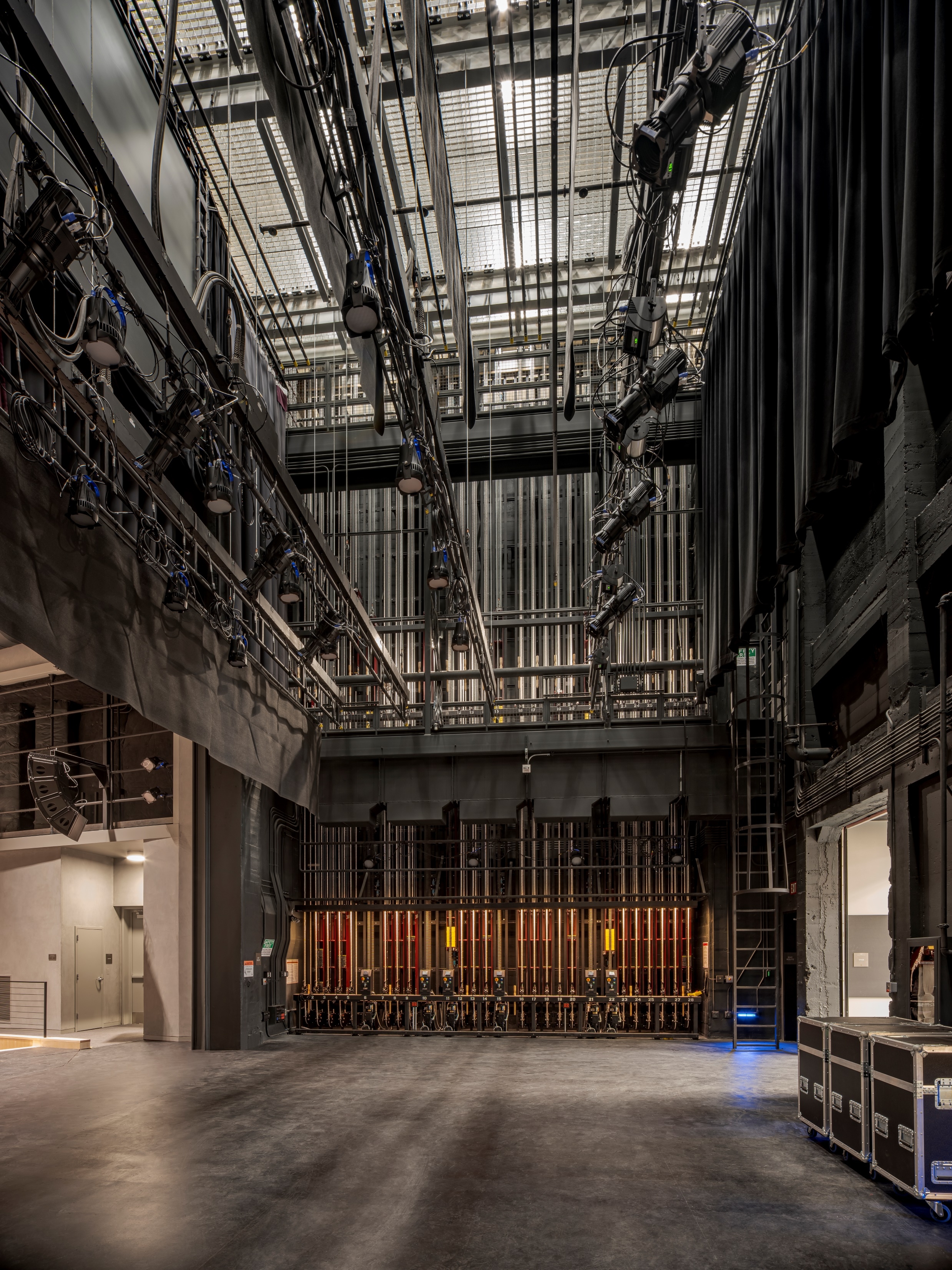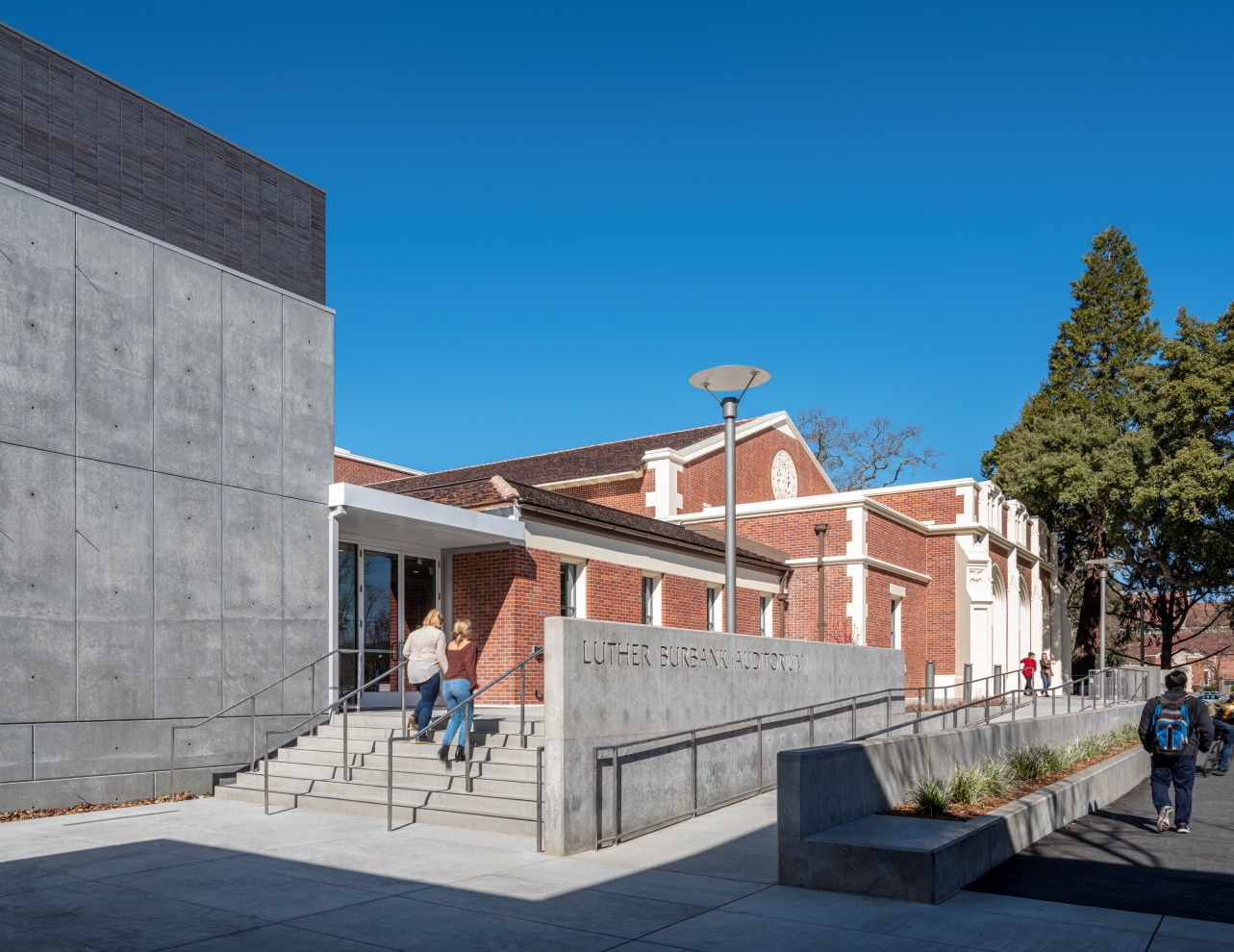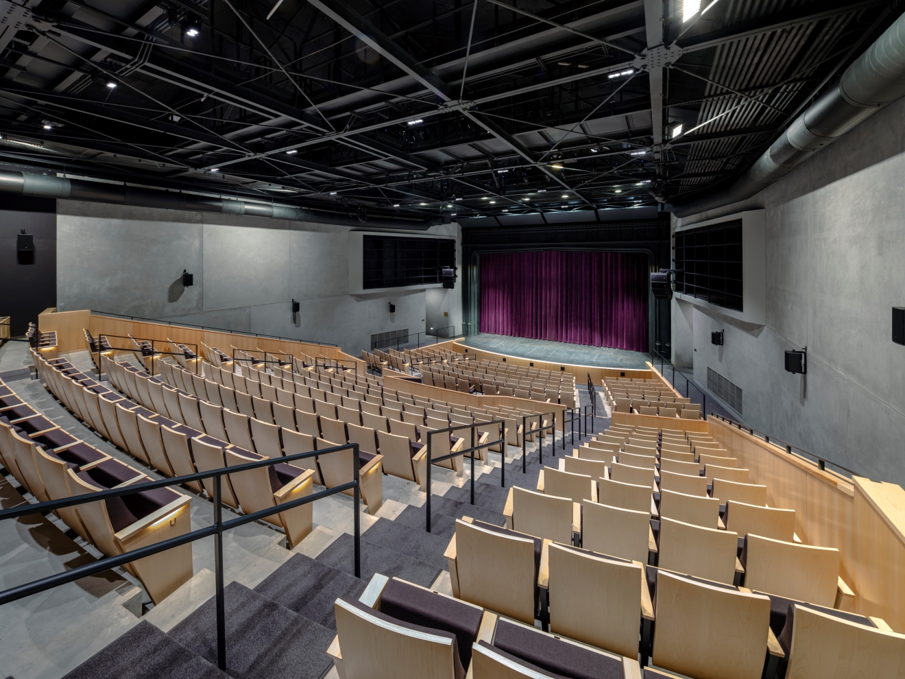 The project transformed the 34,300 square foot, 80-year-old heritage building at the core of the campus into a technologically advanced facility to house its Theatre Arts and Summer Repertory Theatre programs. The expanded main entry terrace and lobby welcome the public into a bright and contemporary space. The existing shallow-sloped main auditorium was completely reconfigured to provide tiered seating for 400 with superior sight lines. Floor levels and circulation paths were altered substantially to significantly improve accessibility for both students and audience members. Major upgrades to building systems, stage rigging, acoustics, and theatre technology enhance experience and learning opportunities. A new 200-seat multipurpose addition was constructed to serve campus instructional needs as a lecture classroom and act as a “black box” studio theater and rehearsal venue.