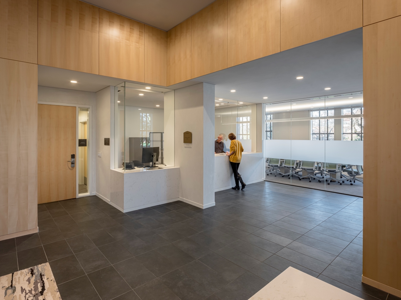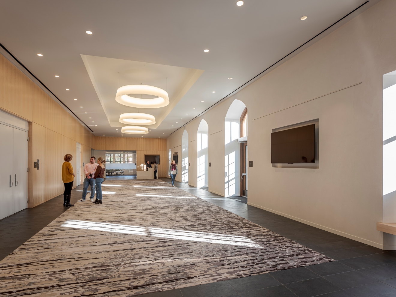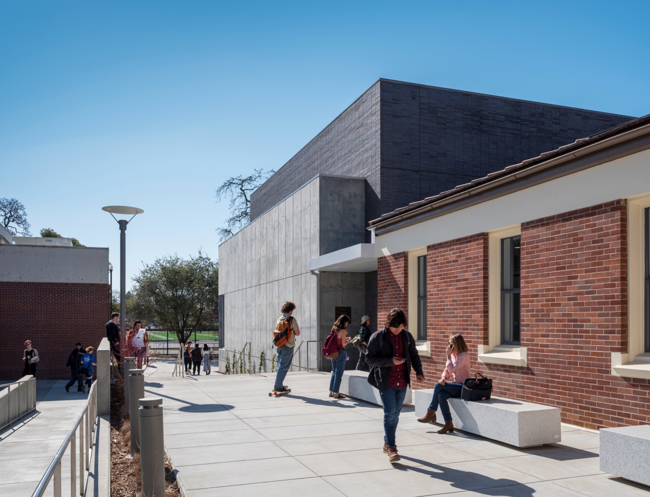 The building provides an important connection between the college and the community. Locating the new addition between the existing structure and adjacent to the music department creates an active social space for students and visitors to gather before and after performances.