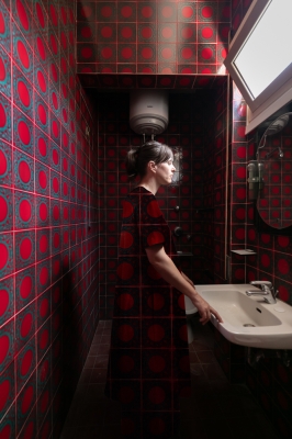 the story of a past era. The various textures of the wallpaper and tiles clearly