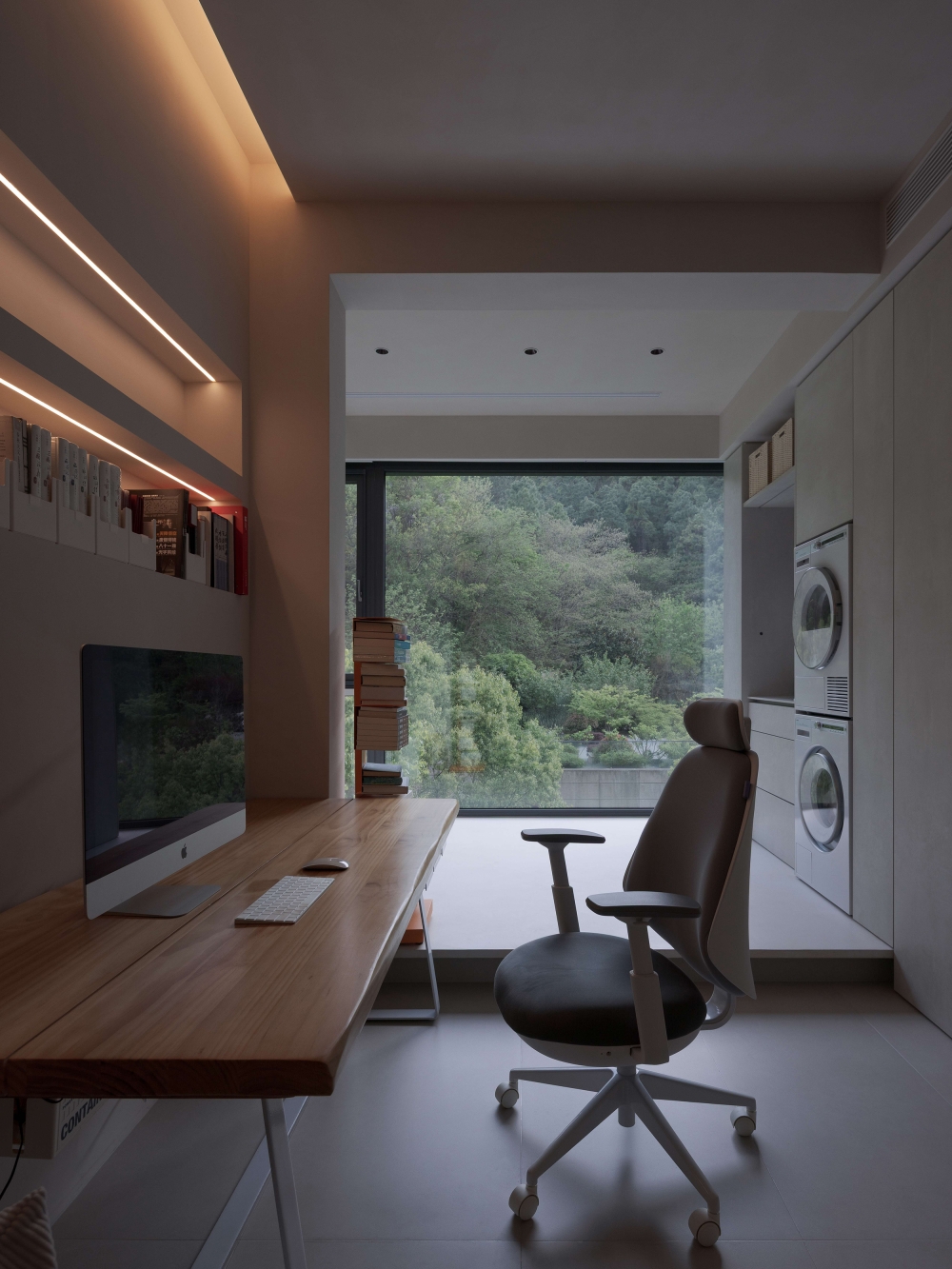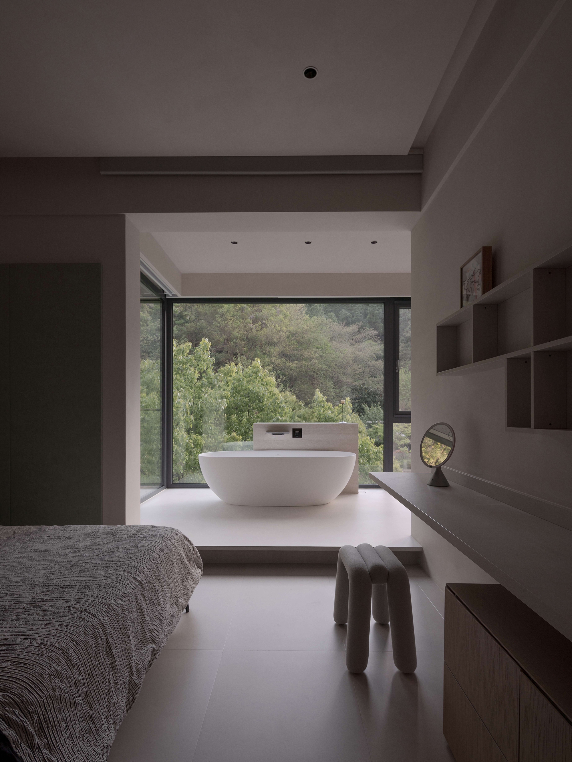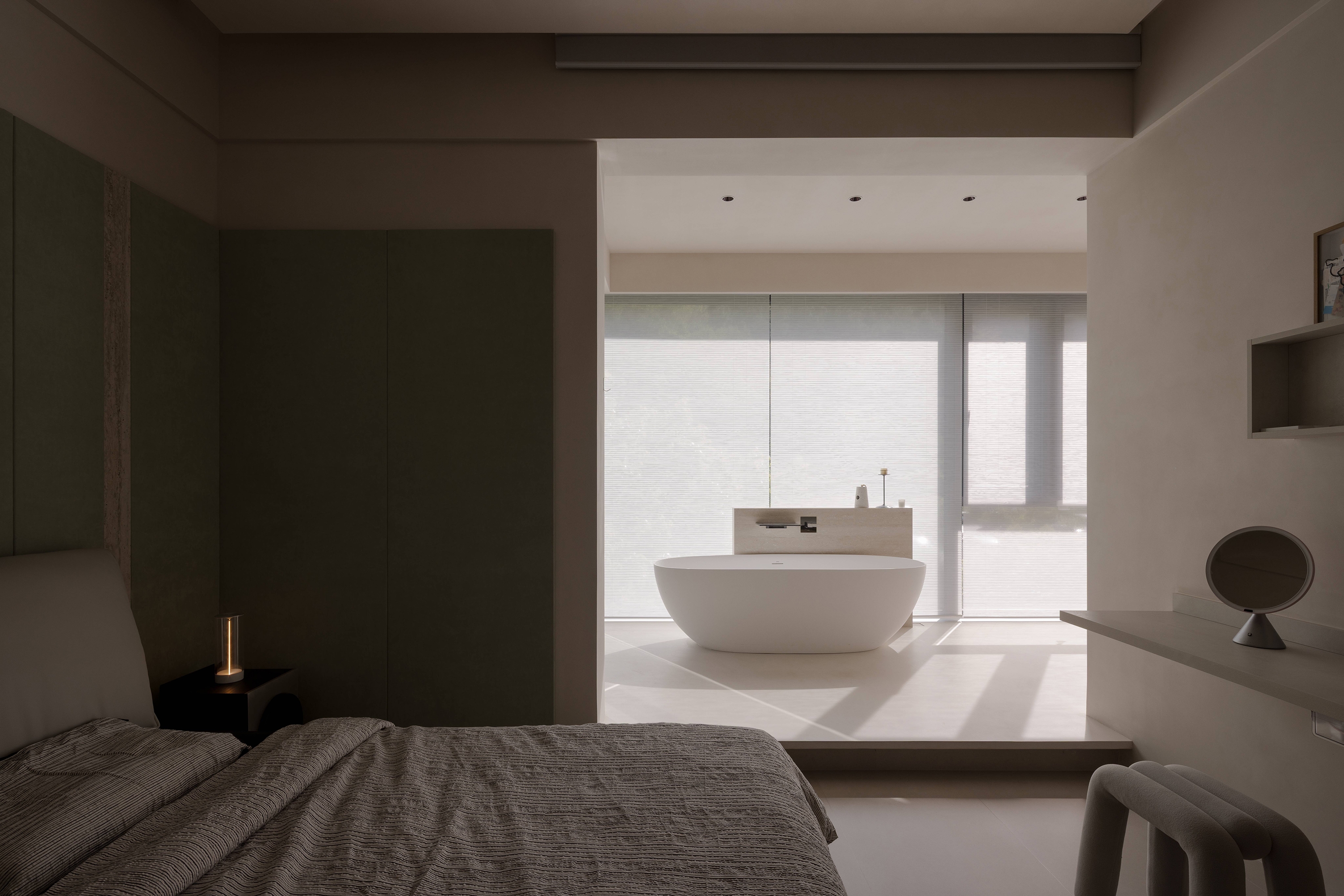 Functionality merges seamlessly with aesthetics. Custom entryway cabinets create an intuitive circular pathway, while open layouts between bedroom, study and balcony enable effortless transitions between daily rituals. The "nature bath" integrates the tub with terrace views, merging utility with sensory pleasure. Every element—from storage to light gaps—prioritizes adaptable elegance.