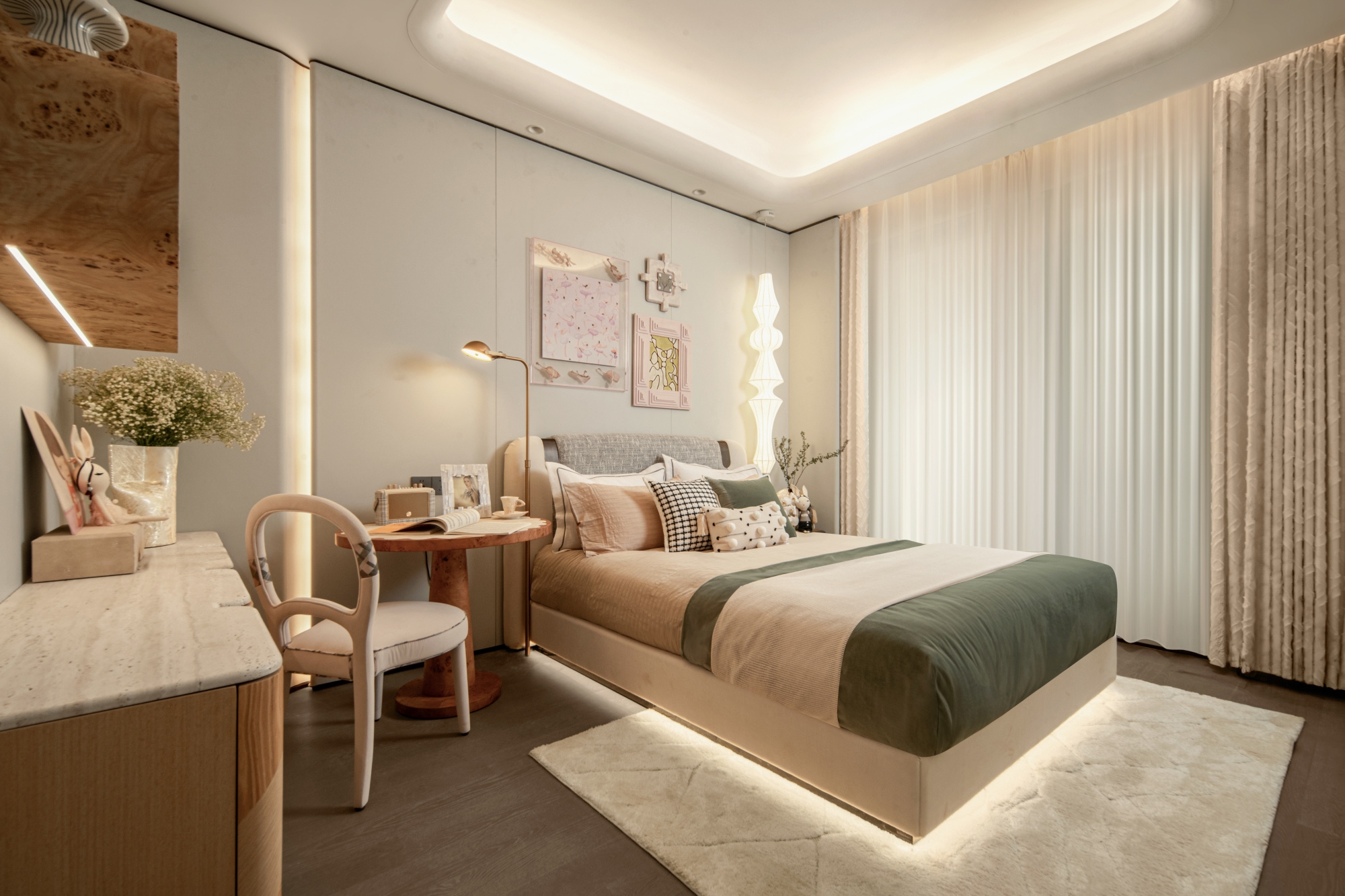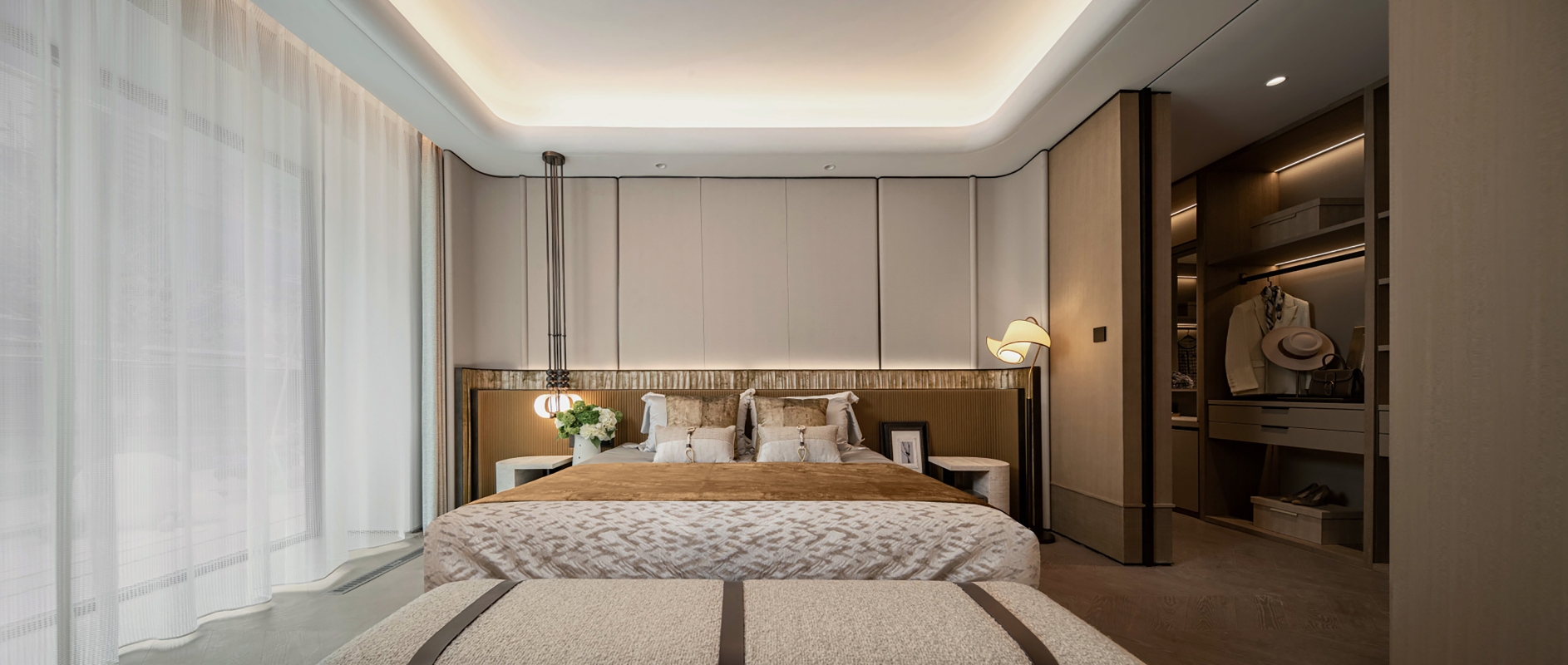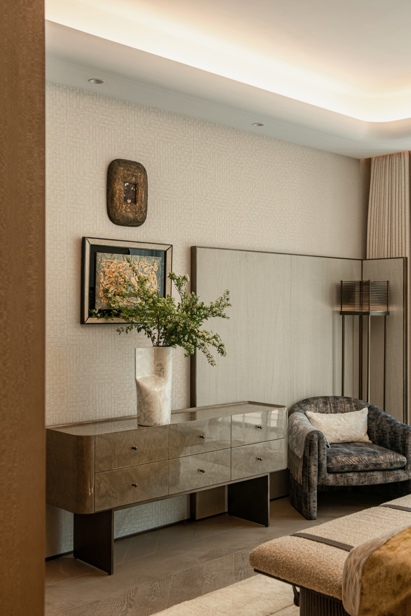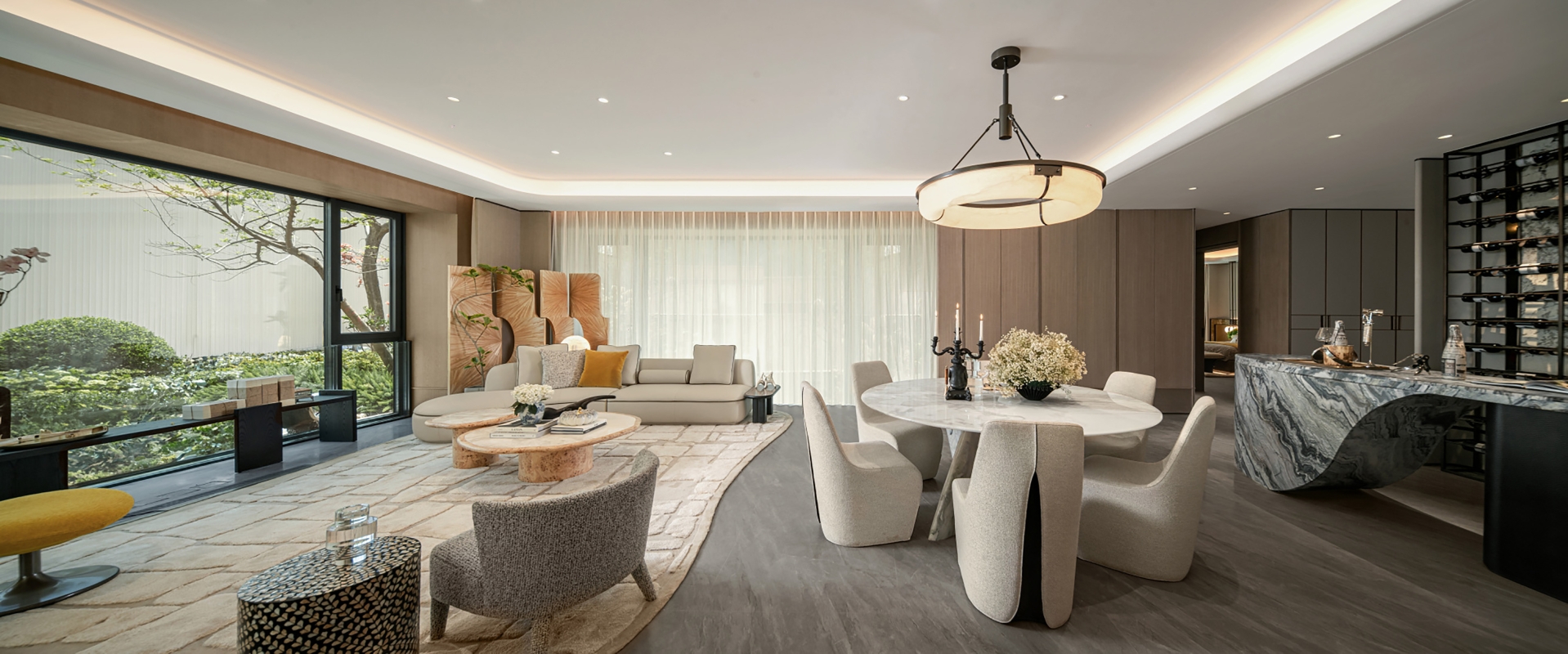 Jinmao Qujiang Puyi Oriental 269 unit is presented to cultural connoisseurs who are well versed in Chinese culture and have outstanding taste. The design of this model room is based on the majestic charm of the ancient capital of thirteen dynasties, integrating contemporary luxury living concepts. It deeply deconstructs and innovatively interprets the essence of "Xi'an culture" and the aura of "luxurious East", creating a prestigious mansion that carries historical glory and reflects the spiritual world of contemporary literati. Contemporary expression of the ancient capital's cultural context: Design is not simply a pile up of historical symbols, but rather a modern design language that condenses the profound cultural heritage of Xi'an. The spatial pattern draws inspiration from the opening and closing of the prosperous Tang Dynasty, or uses a finely crafted relief background wall to metaphorically represent the texture of the city wall bricks and stones, or subtly blends with the artistic conception of "Qu Jiang Liu Yin" in the streamlined shape of the ceiling, or uses customized artworks to abstractly interpret the vigorous spirit of the stone carvings in the stele forest.
