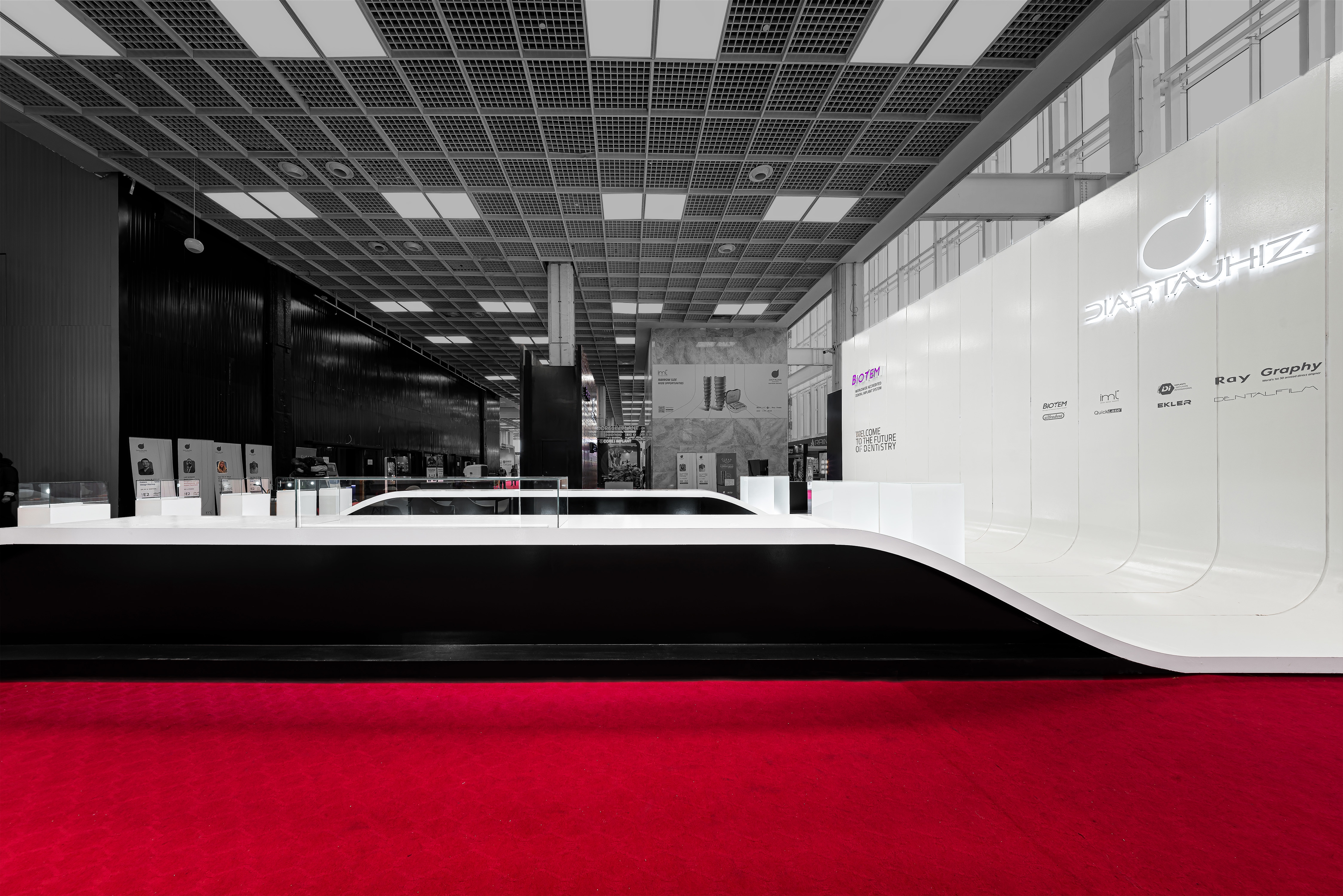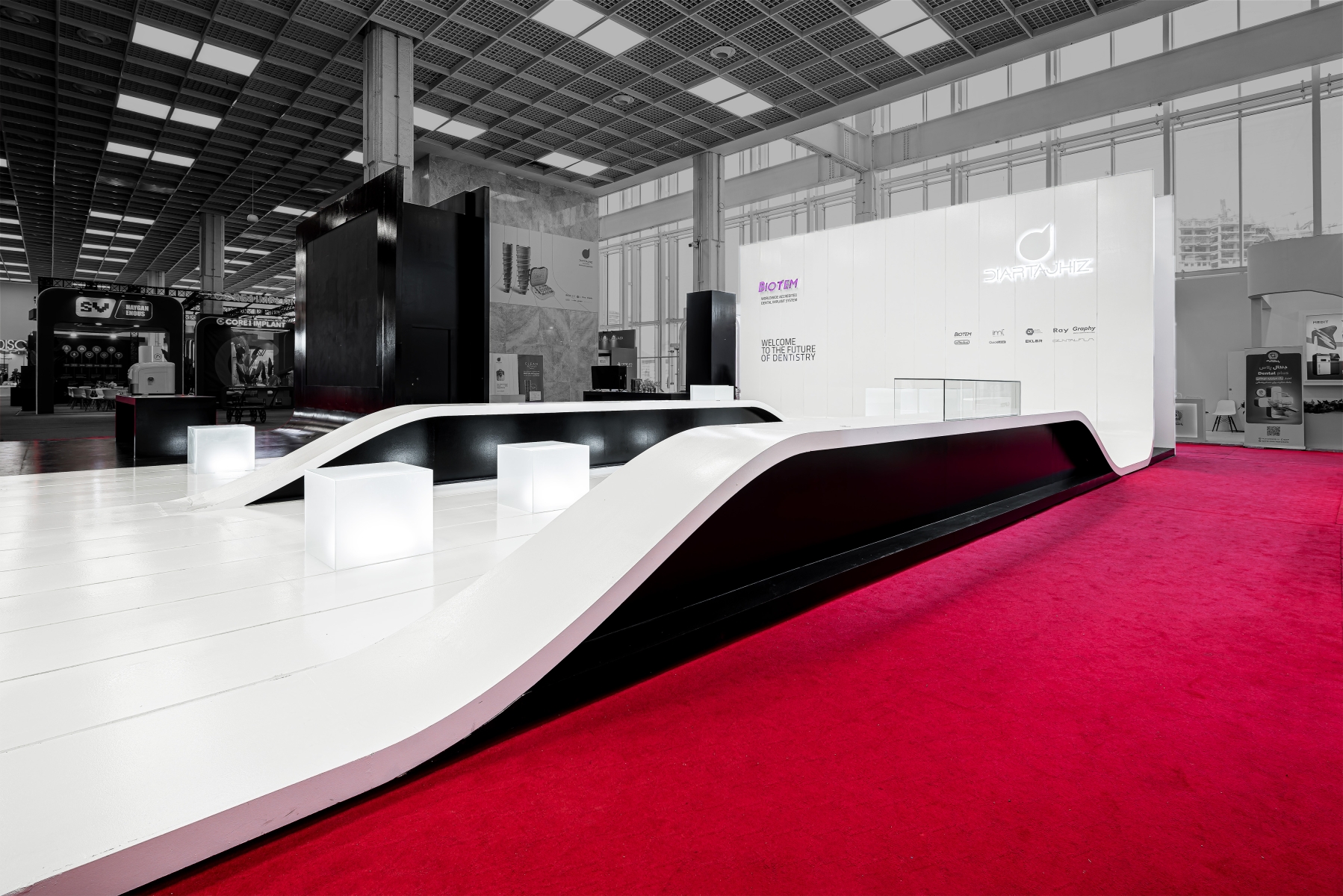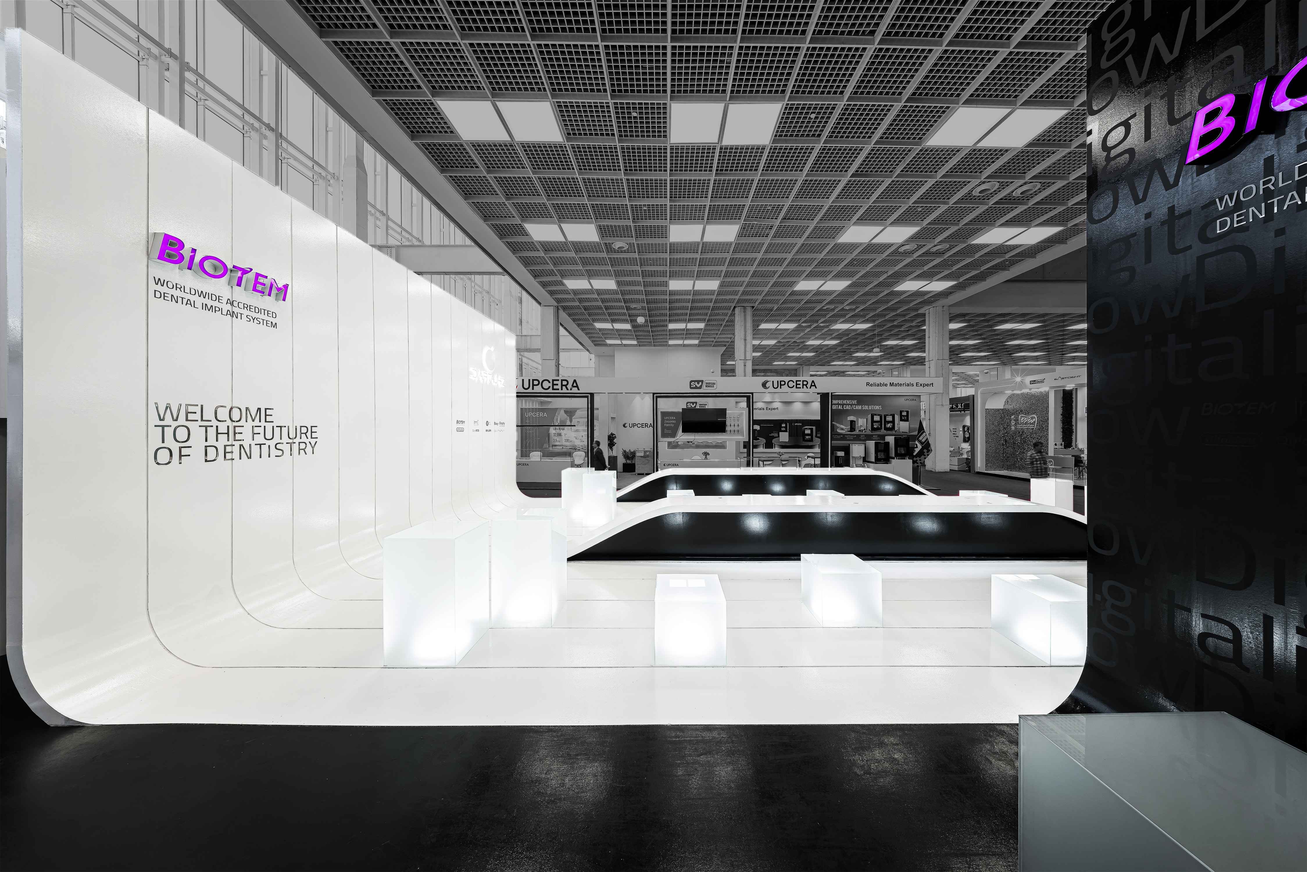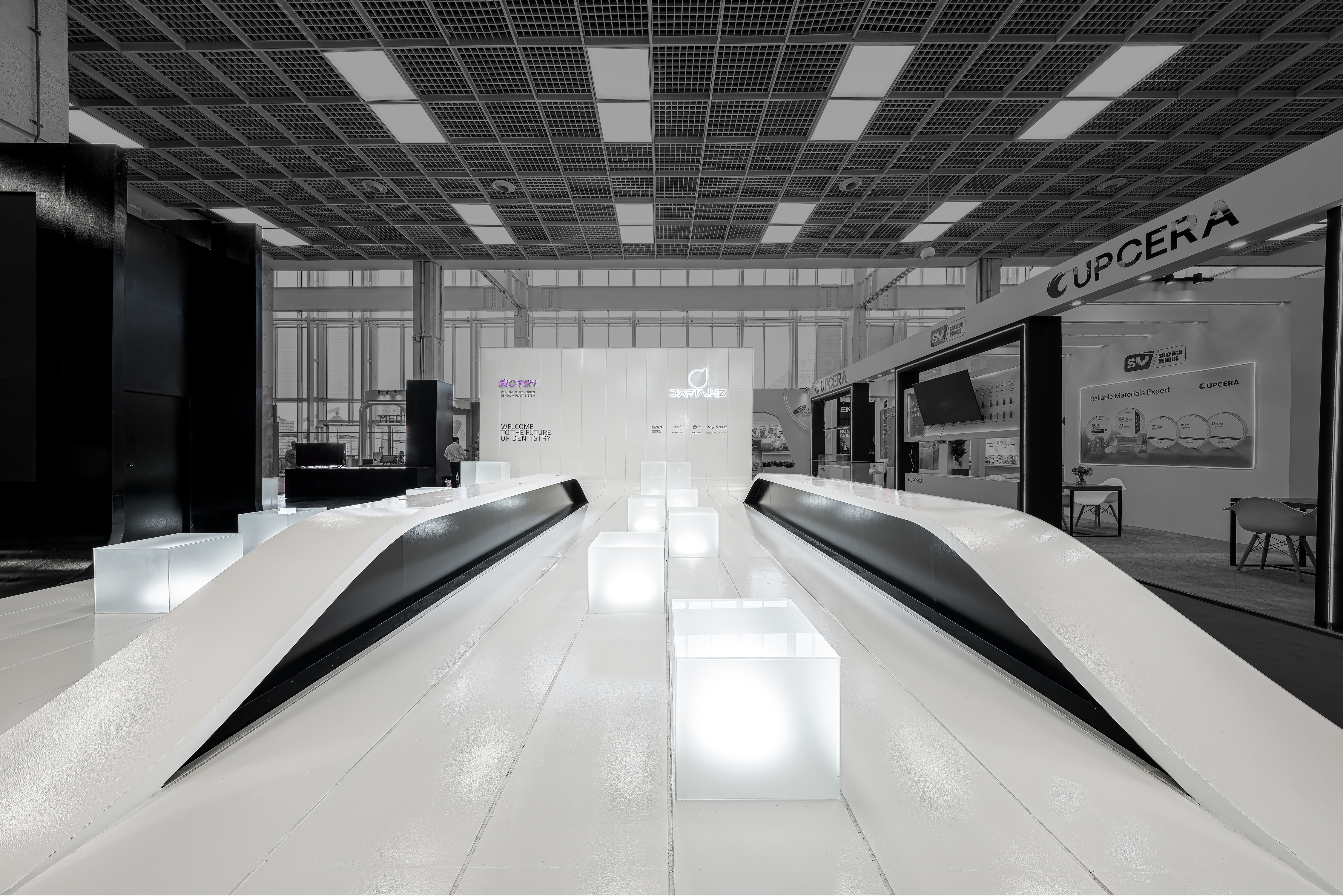 The 203 m² exhibition booth at Iran Mall, Tehran, was designed for a leading dental equipment company to boost brand awareness and sales. The challenge was to create a space that attracted visitors, encouraged dialogue, and supported business agreements.