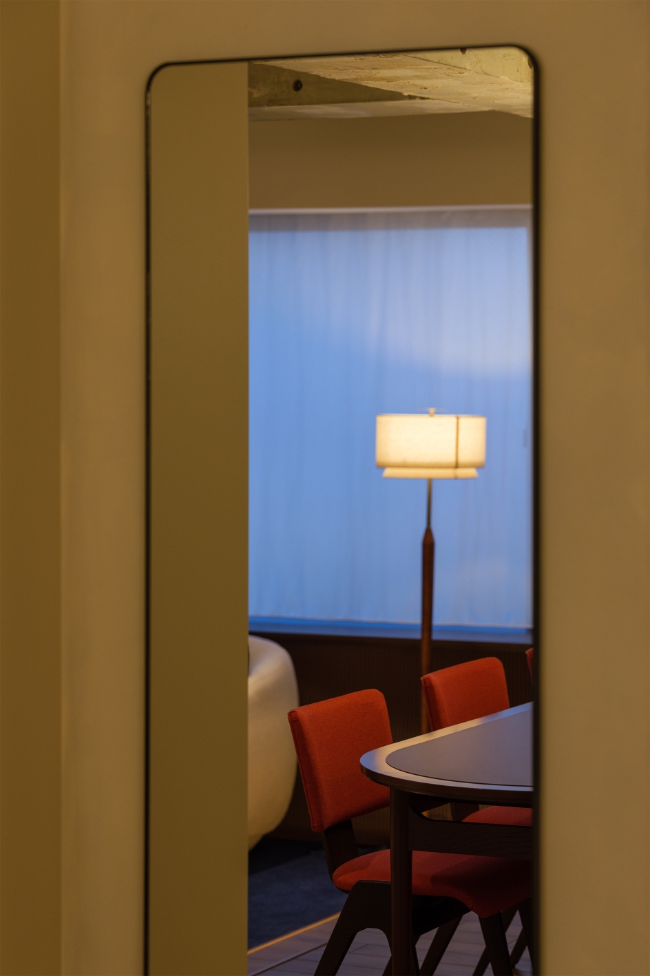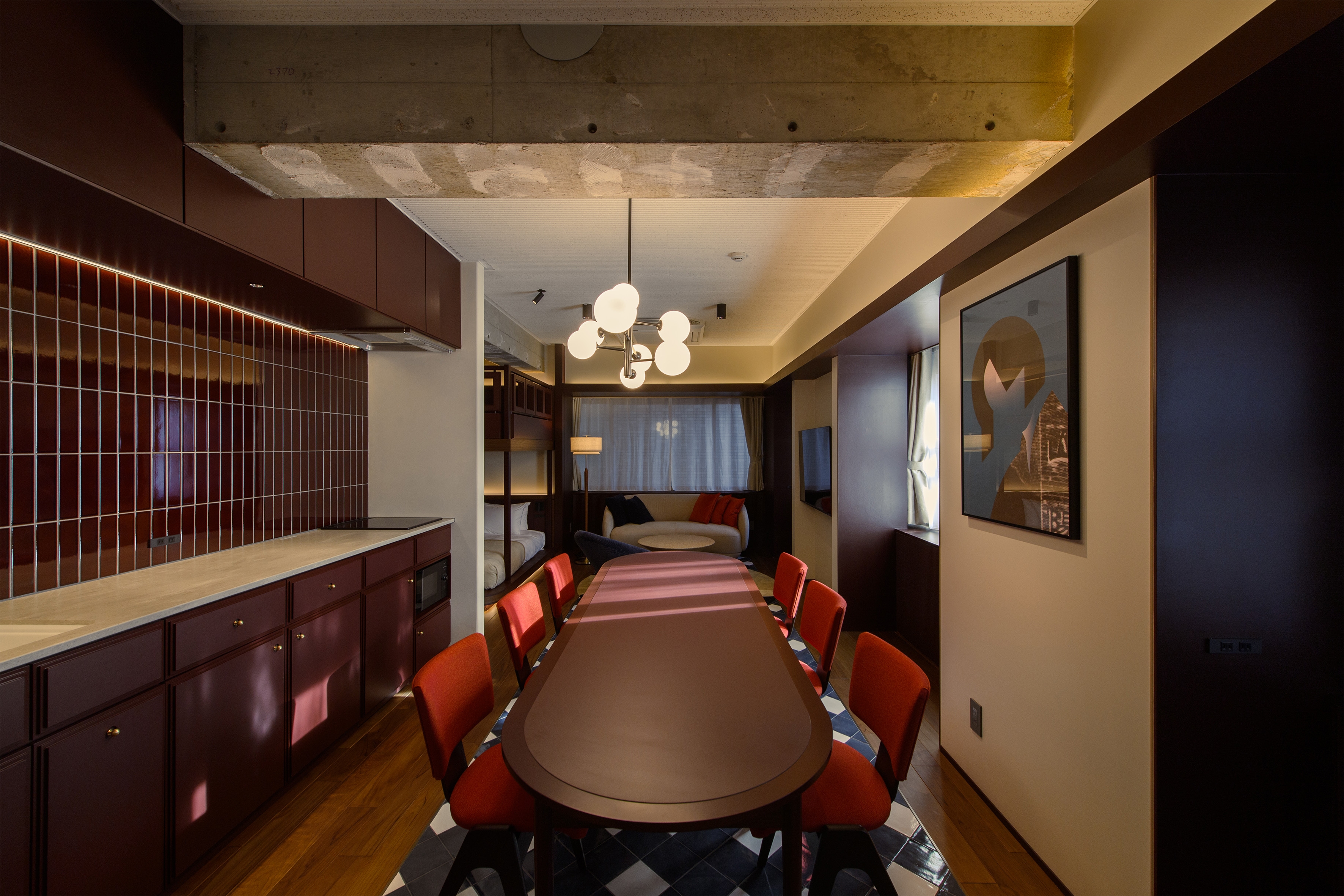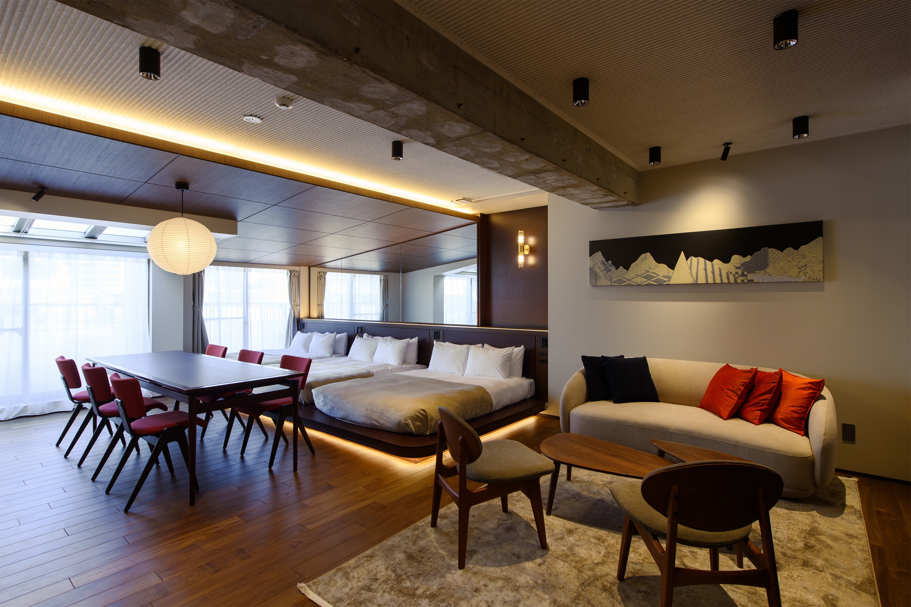 The interior is based on a mid-century modern aesthetic, chosen for its lasting appeal beyond trends. While rooted in simplicity and function, the design incorporates retro-modern details to add subtle elegance. Exposed structural elements and raw materials are paired with delicate moments to reflect Aoyama’s balance of refinement and authenticity.