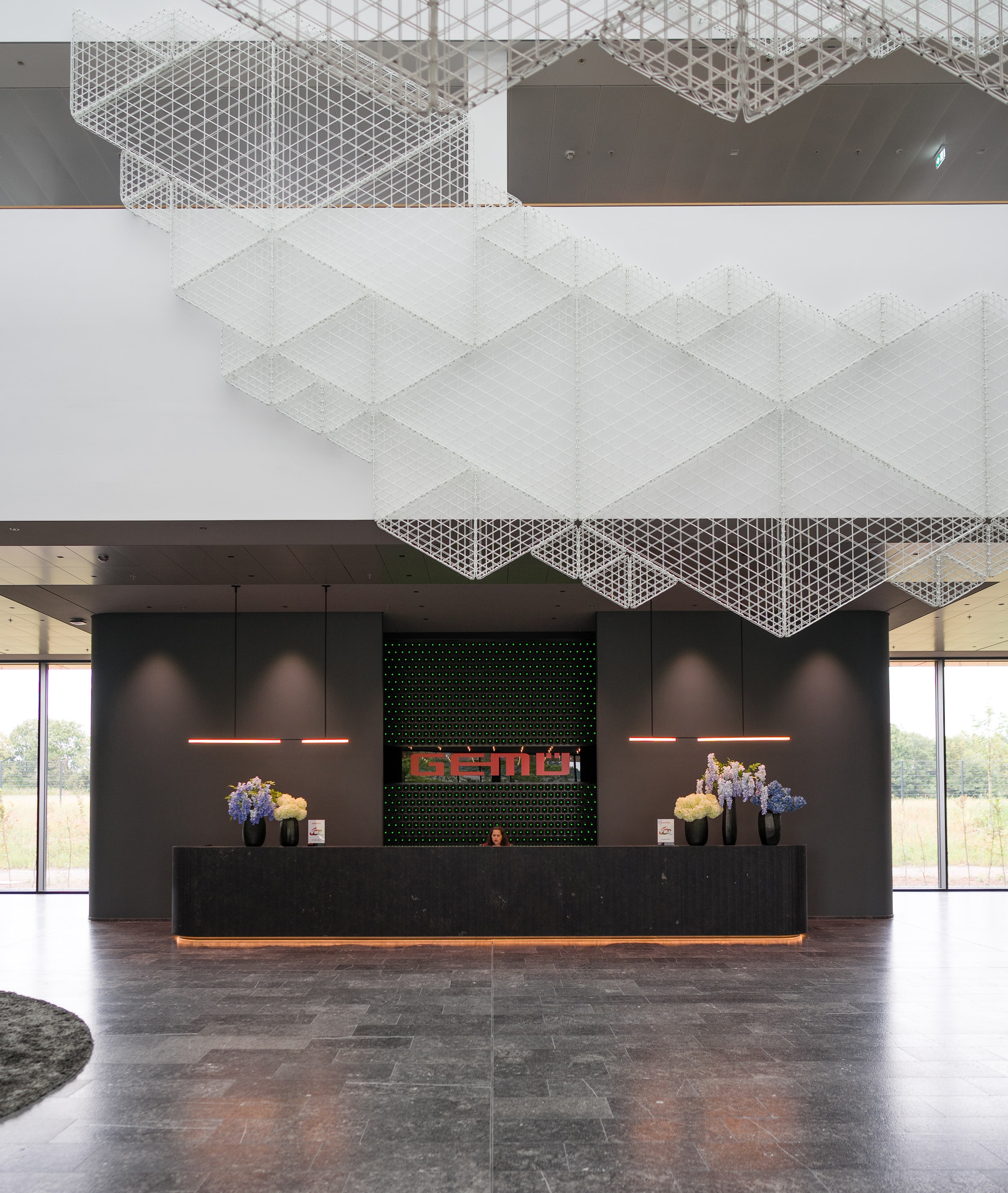 The new GEMÜ headquarters in Kupferzell marks the first milestone of the 18-hectare master plan and serves as a reference for future buildings. A central element is a bright atrium house that enables communication across all levels and embodies transparency. On the ground floor, a 25-meter-high hall with a glass skylight structure welcomes visitors. The reception, conference rooms, and a restaurant with a terrace are fully accessible. The G Café evokes an Italian café, offers all-day specialties, and opens up with full-height glazing to the pine forest.