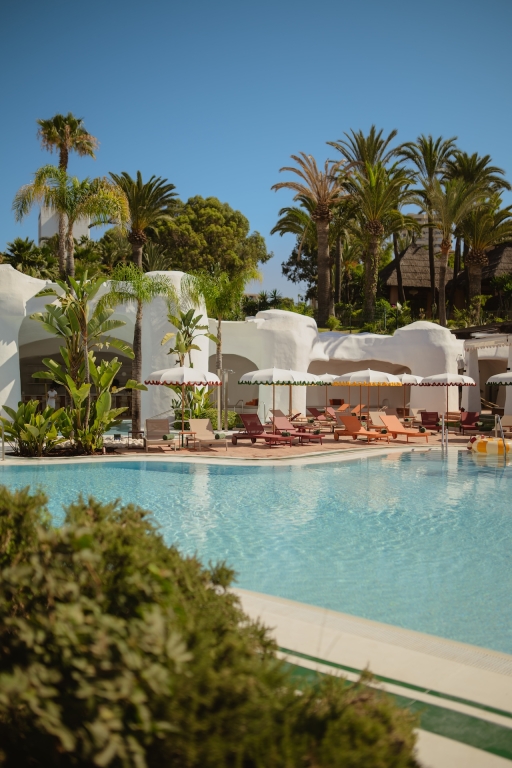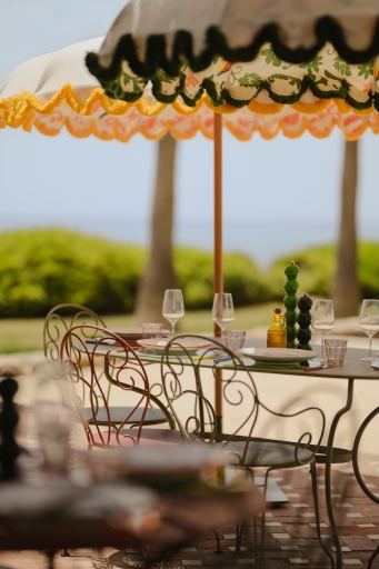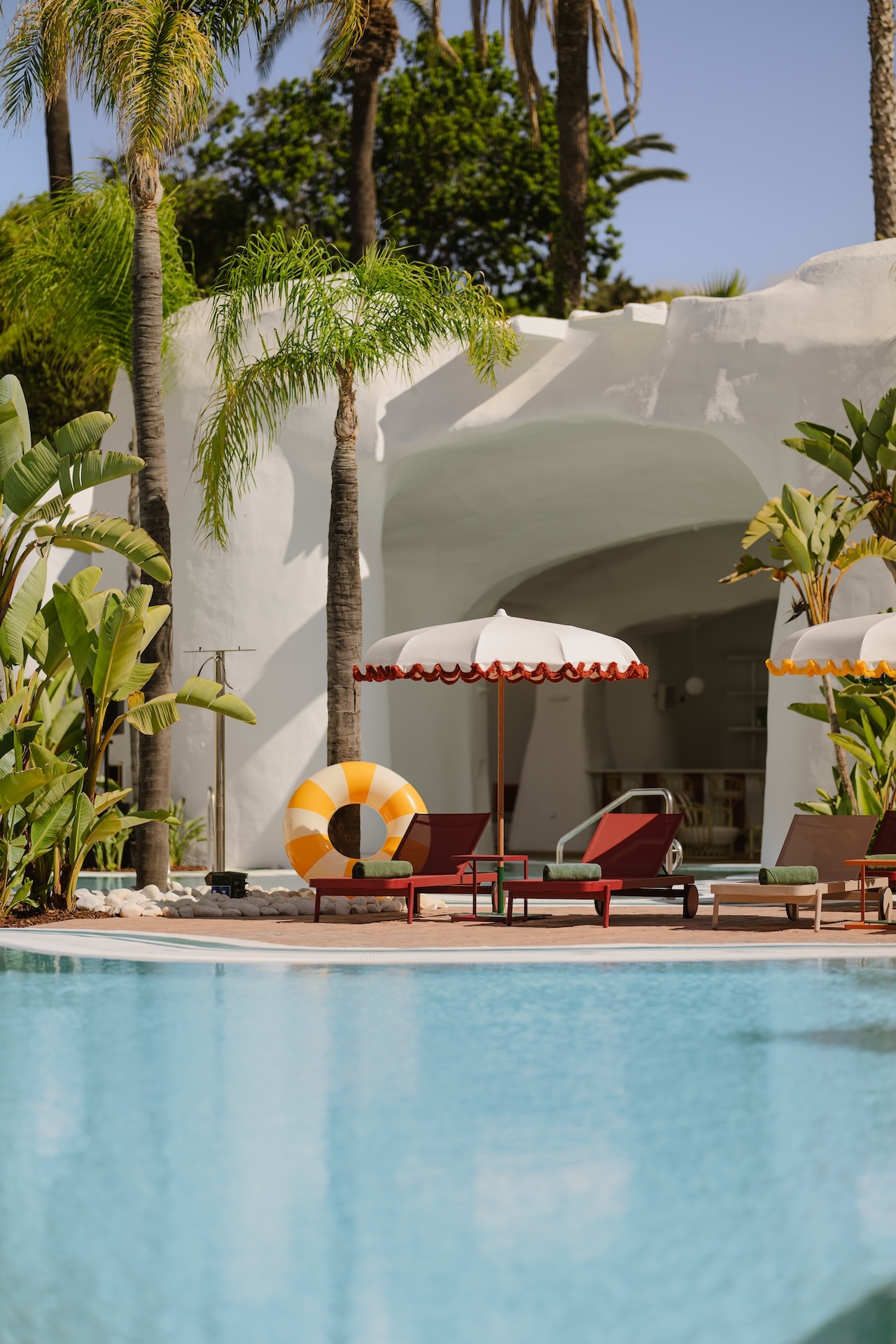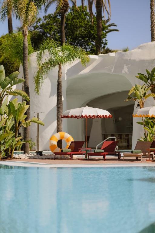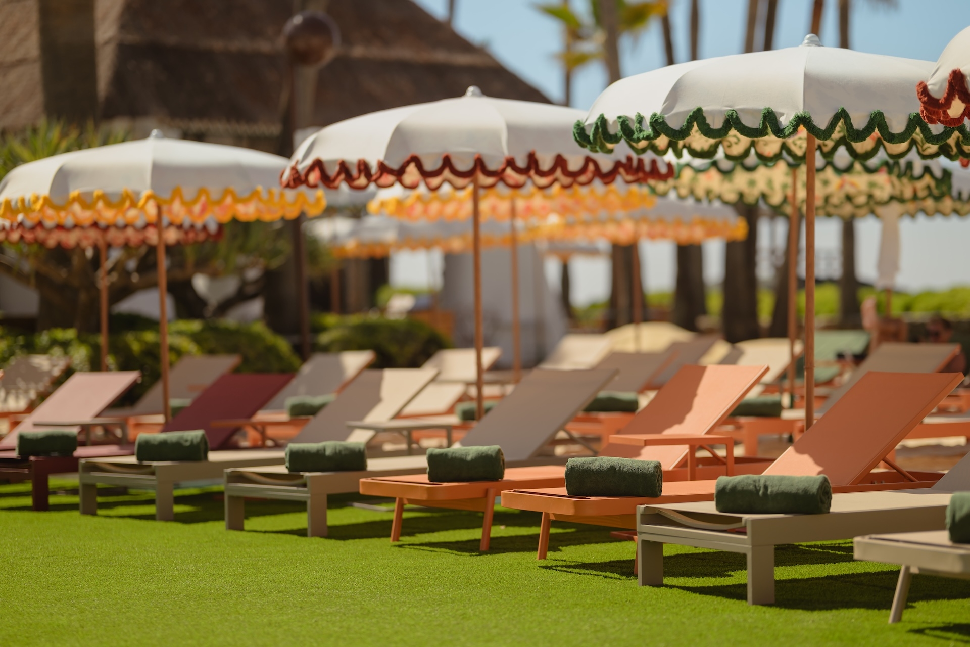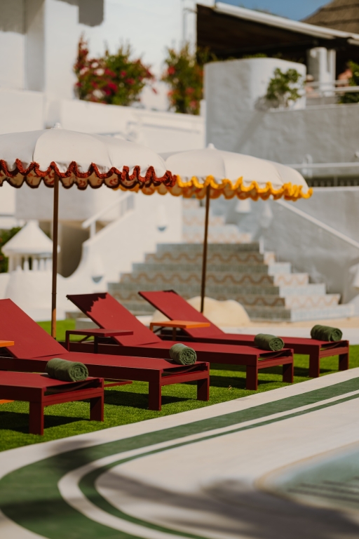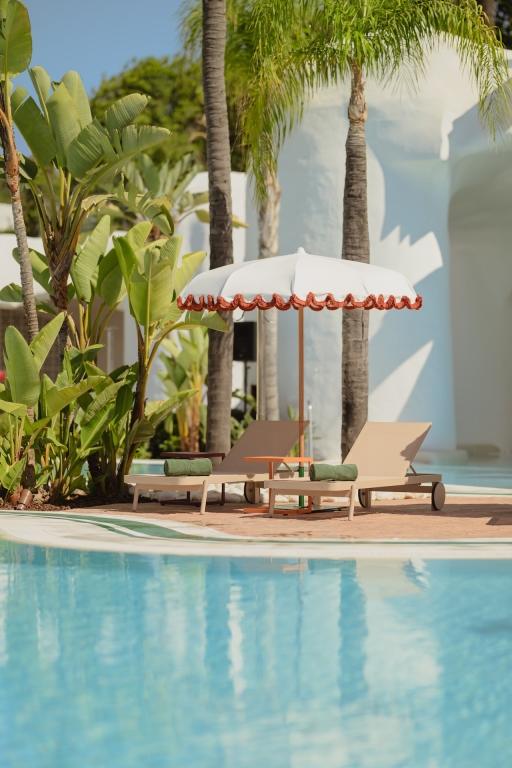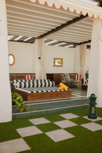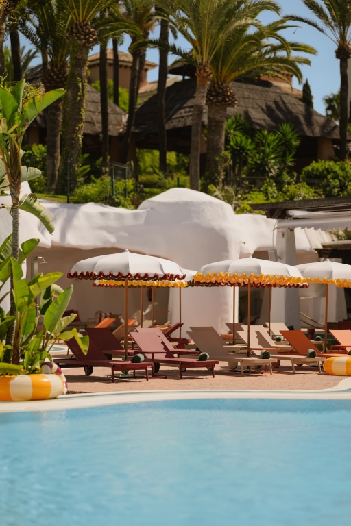 Set within the grounds of an iconic beachfront resort on the Costa del Sol, this one-season pop-up—designed as a preview of the permanent venue opening in 2026—reimagines Mediterranean maximalism through a lens of coastal ease and sun-faded charm. Inspired by its flagship on the French Riviera, known for bold, expressive design, the concept carries over key visual cues but adapts them with a playful, Mediterranean-specific twist. A palette of terracotta, citrus, and sun-faded green informs the material language, carried through wrought iron furnishings, brick paving, and custom textiles. Daybeds line the terrace and beach in rhythmic intervals, anchored by scalloped parasols trimmed with hand-illustrated motifs by artist Chiara Perano, developed in collaboration with the hospitality group’s design team. Dining unfolds under canvas canopies in a garden setting, where layered tabletops and curved seating invite leisurely, communal meals. Material choices prioritize durability & ambiance: marine-grade finishes, modular furnishings, and sun-treated textiles ensure resilience without visual compromise. The result is expressive, a spatial composition shaped by light & the Mediterranean.
