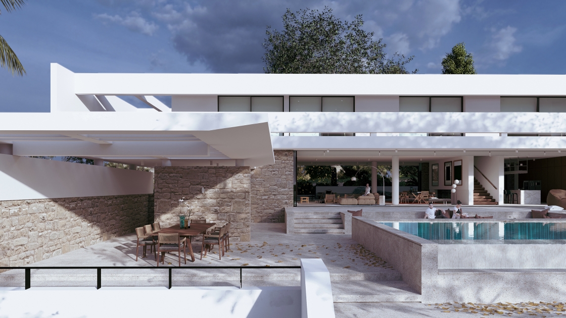 ETHRIO Sheltered Residence in Agios Athanasios, Limassol, is conceived as a dialogue between landscape, climate, and tradition. Anchored on a rocky hillside, it reinterprets the Cypriot iliakos the courtyard house into a contemporary bioclimatic dwelling.