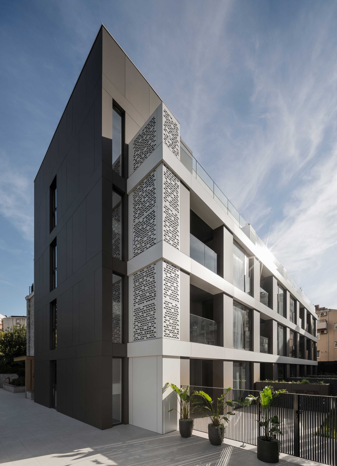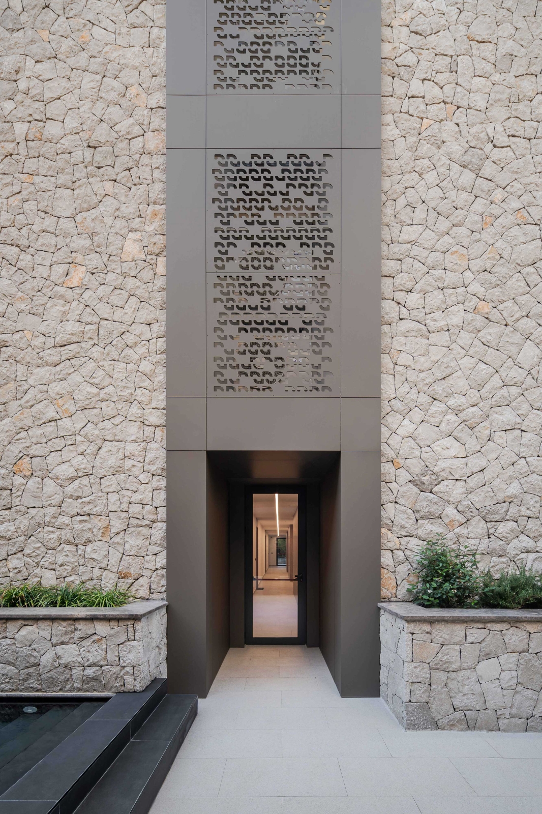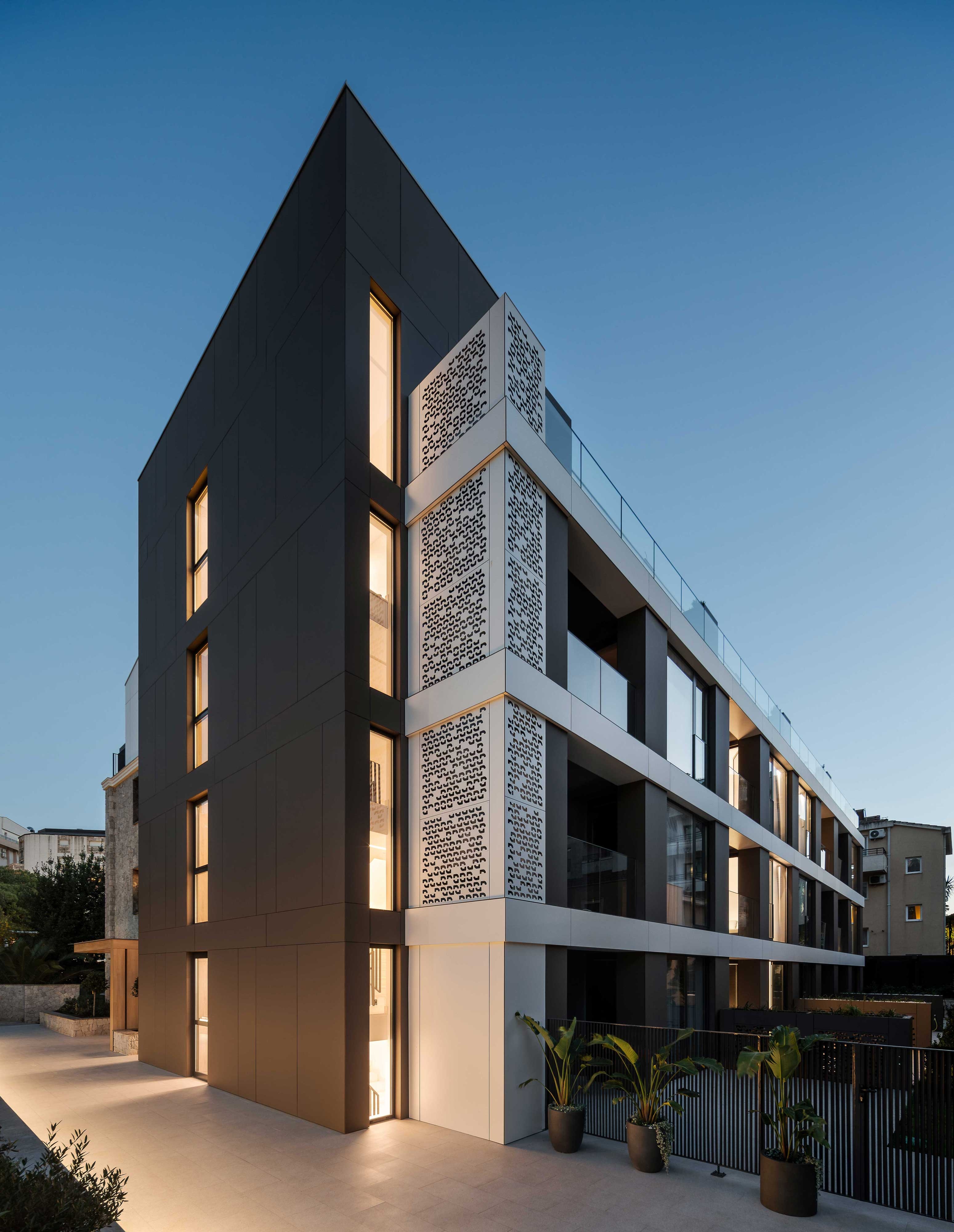 Onia embodies the essence of coastal living, blending comfort, privacy, and precision into a refined architectural vision. Designed to harmonize with its surroundings, the structure uses earthy tones that echo the natural landscape, while sleek Fundermax panels add a striking modern contrast. At its entrance, the traditional suvome a dry stone technique pays homage to Montenegrin heritage, seamlessly connecting the past with a contemporary aesthetic.