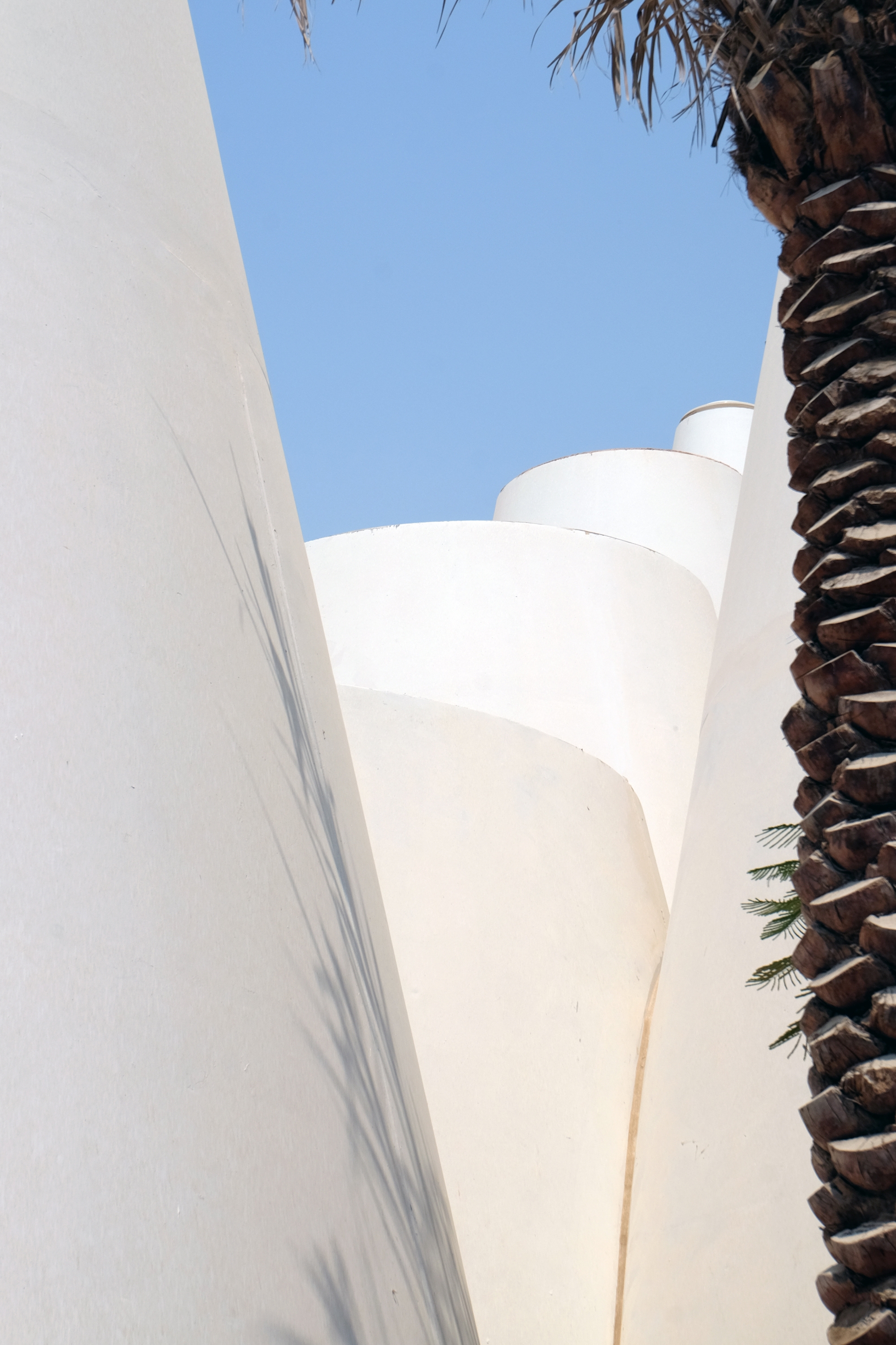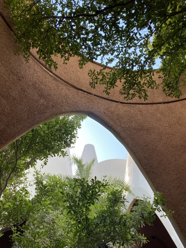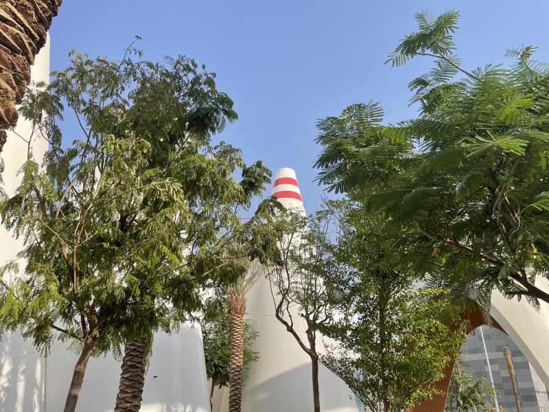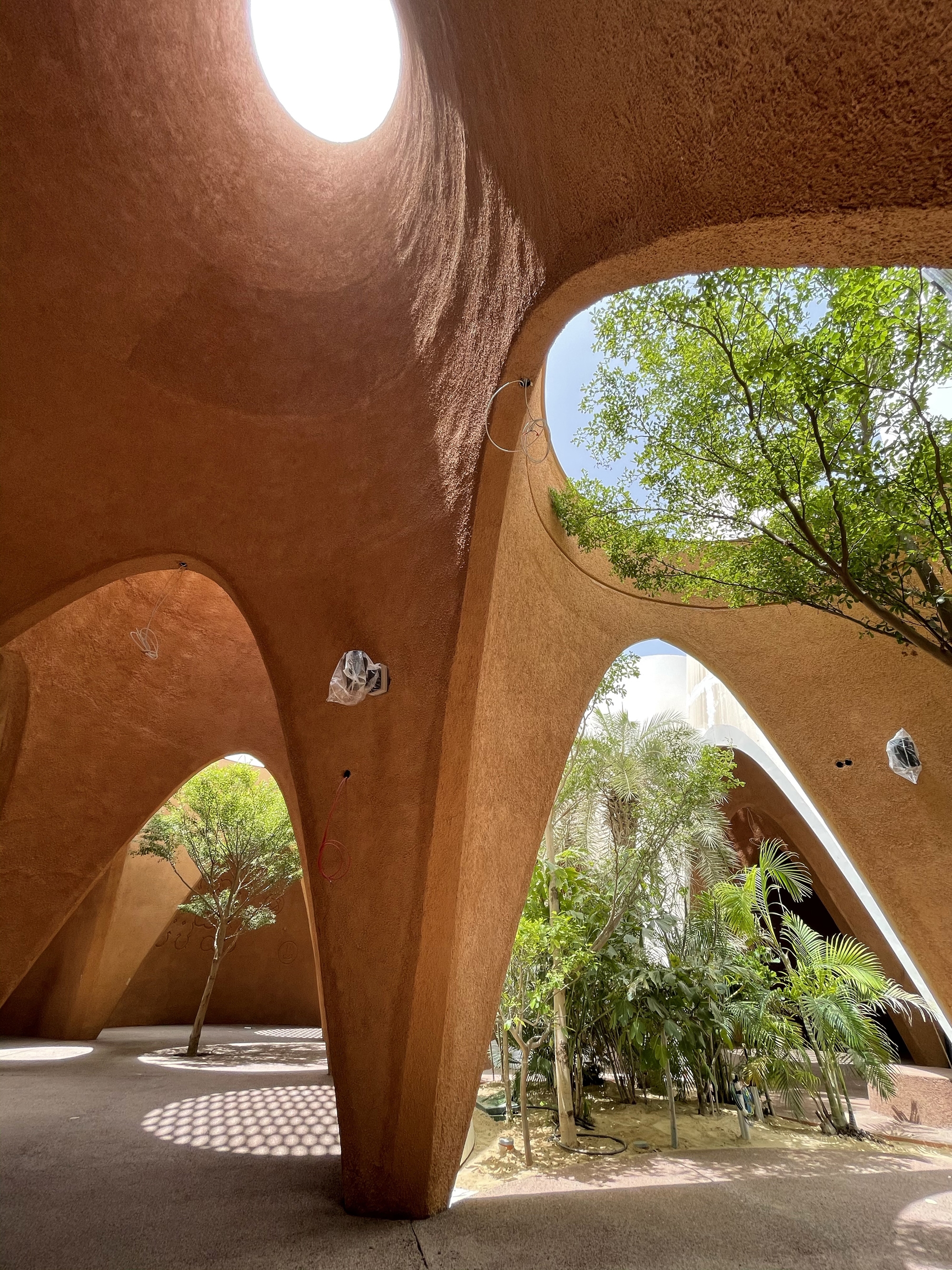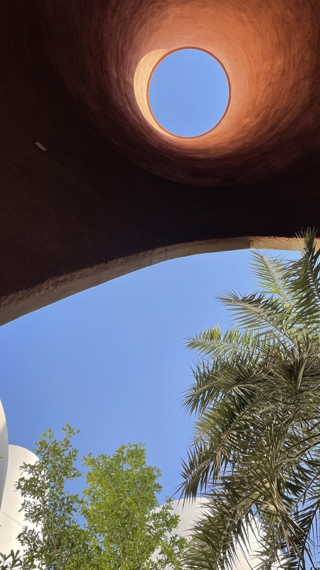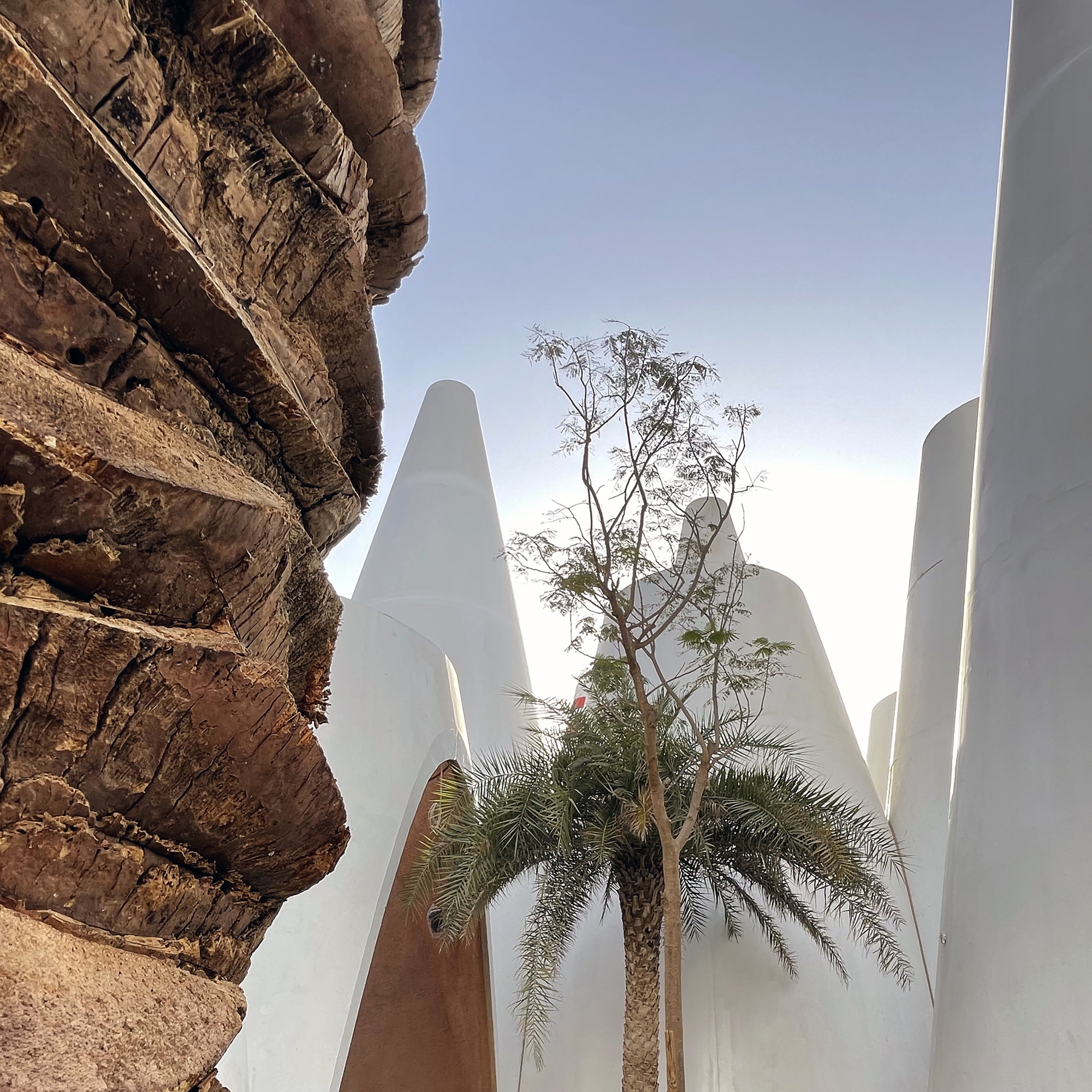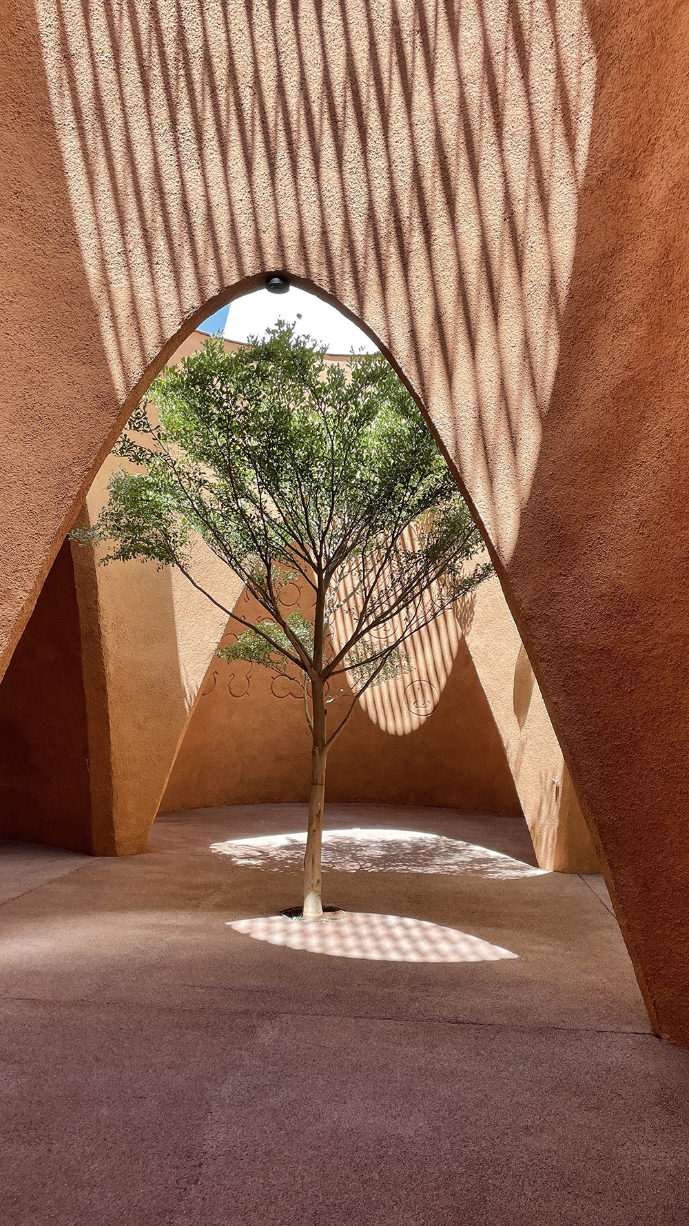 The pavilion designed by querkraft architects is inspired by historical wind towers and climate-regulating properties of Arab clay architecture. Re-interpreting these building traditions, 38 intersecting cones of different heights form the iconic shape of the Austrian EXPO pavilion. Arranged around 3 green courtyards, exciting and unique room sequences with different atmospheres are created in- and outside. With it’s haptic clay plaster surfaces, the canopy of leaves rustling in the wind over the open cones and the omnipresent interplay of light & shadow, the building appeals to all senses.