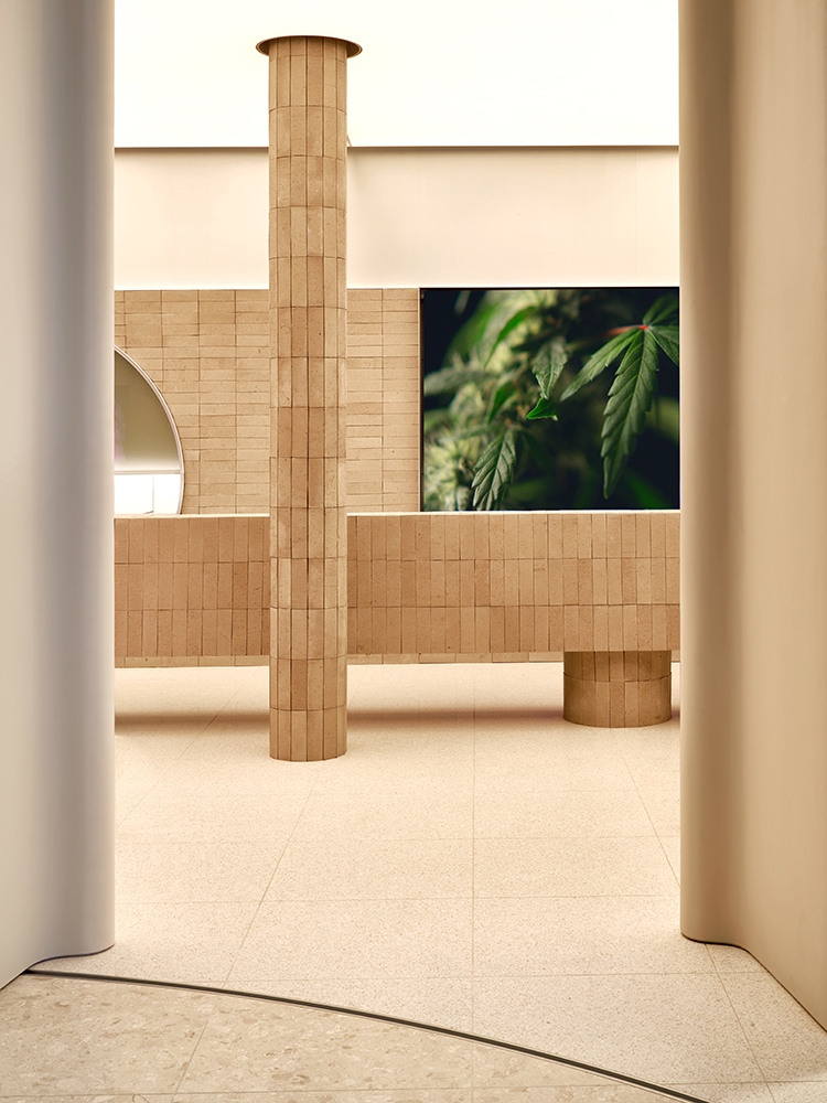 There is a wabi-sabi quality to the materiality, where the handmade and earthen is contrasted by highly technical materials. For us, this project is about celebrating the cannabis experience through a highly considered, multi-sensory environment. If a retailer earns the privilege of a consumer stepping out of their online platform and into a physical retail space, that space had better be astounding. This unconventional flagship presents a highly architectural feast for the senses, with a sublime artistic soul.