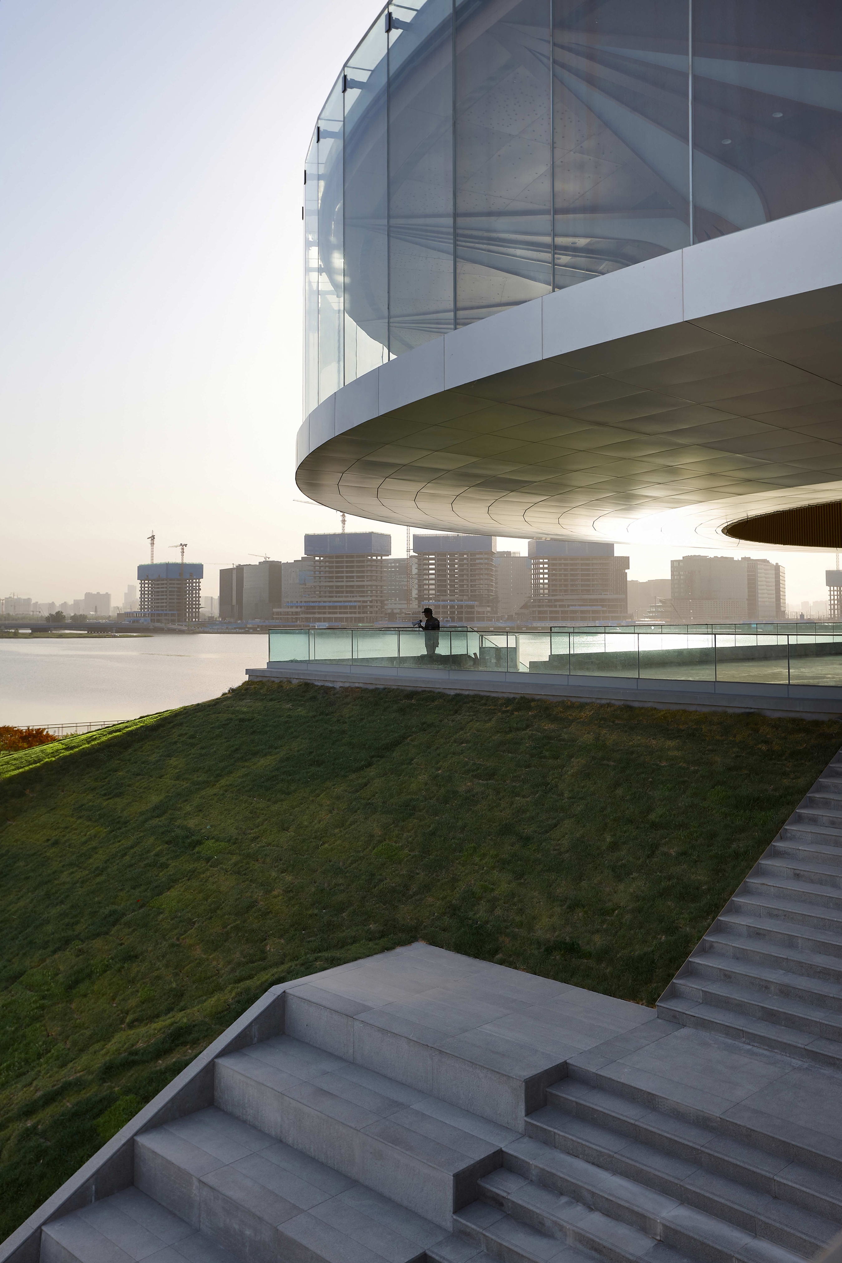 The ‘ring’ with a diameter of 51.2 m is supported by only 3 columns, with big spans in between to allow unobstructed views underneath.