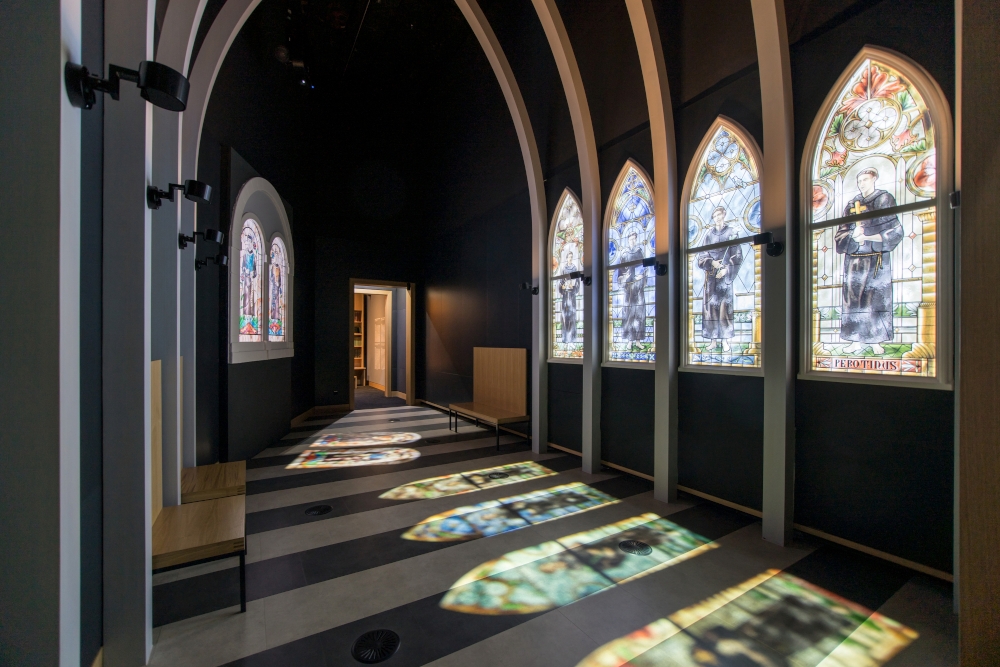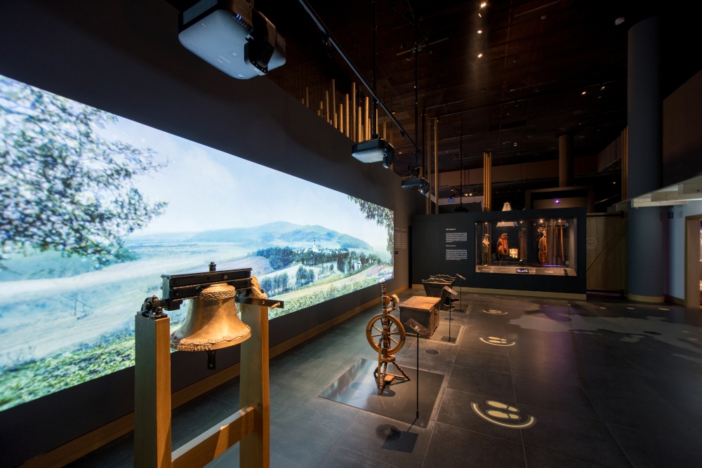 The AV system of the permanent exhibition consists of more than 200 displays and projectors, media servers, BrightSign players, a QSC Q-Sys control system, Nexmosphere sensors, a Usomo immersive audio guide system.