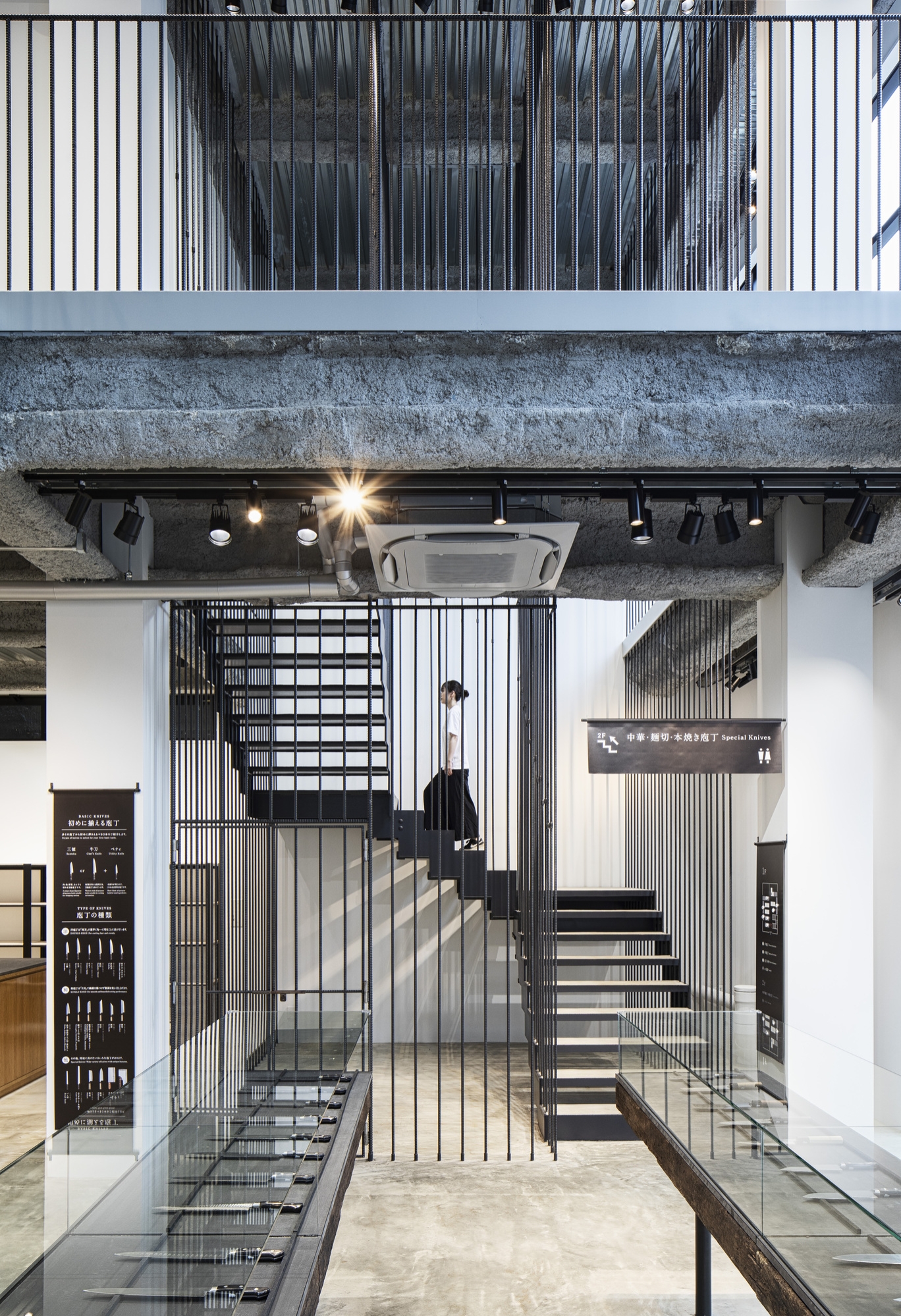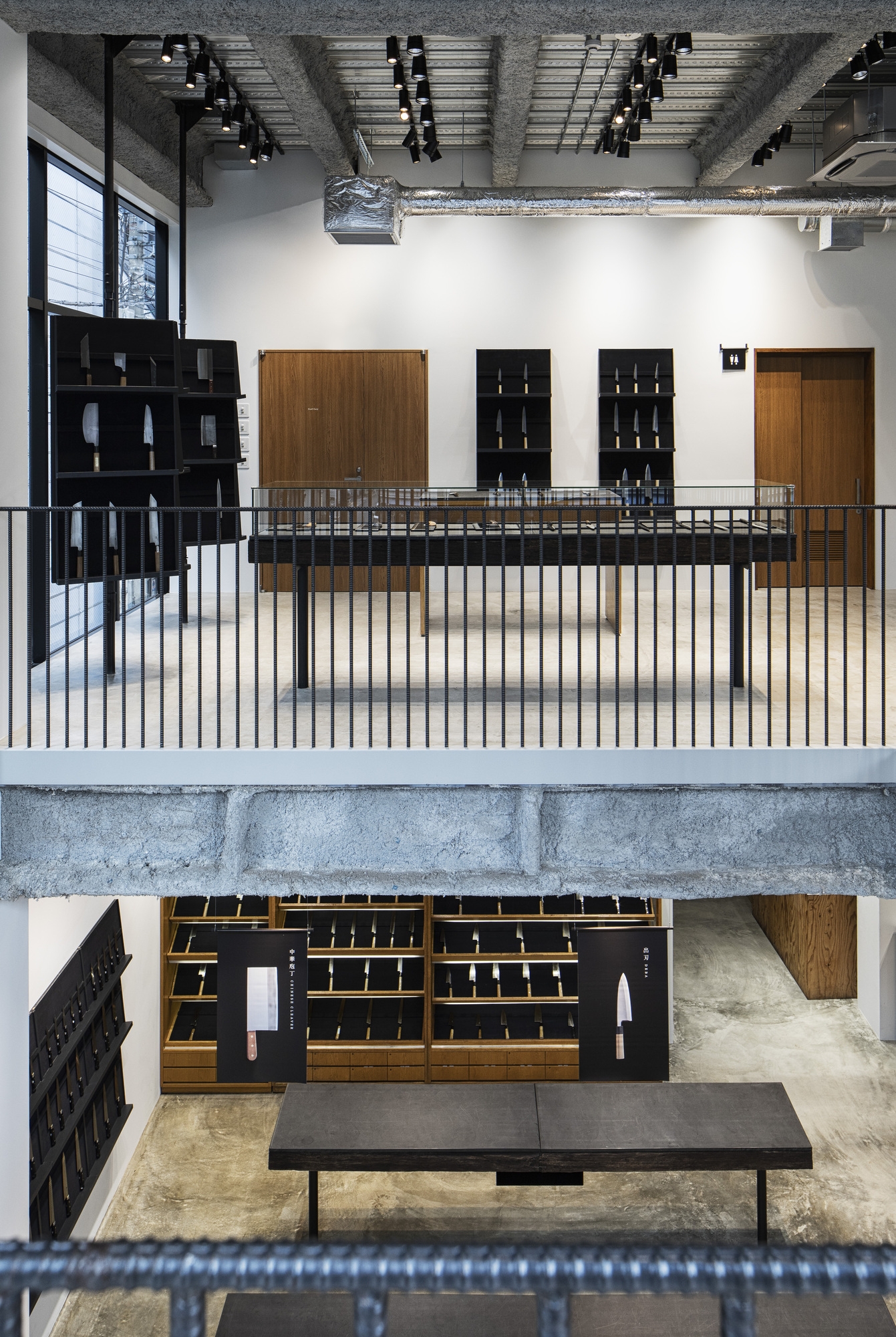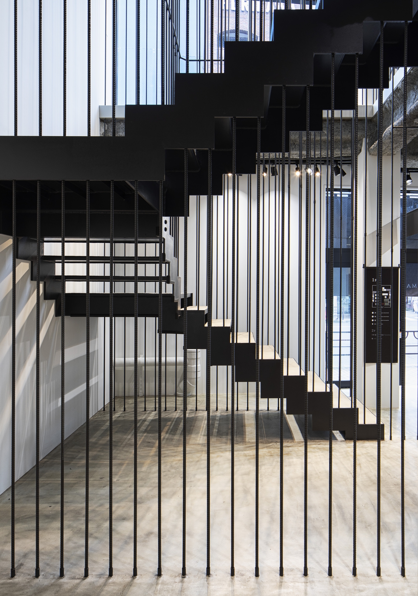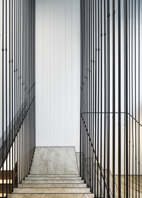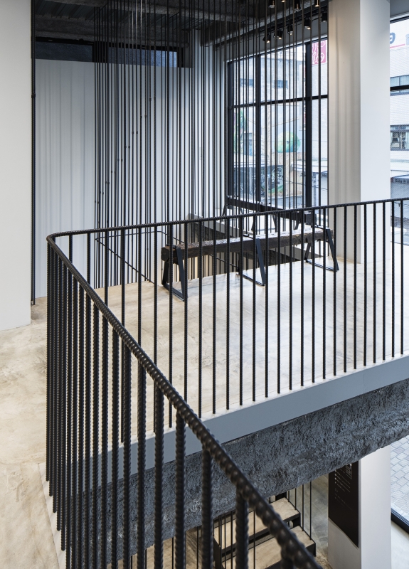 Therefore, the most appropriate for the shop's space was to show architectural skills of craftsmen. The rebar that is usually hidden in the wall became the main design.