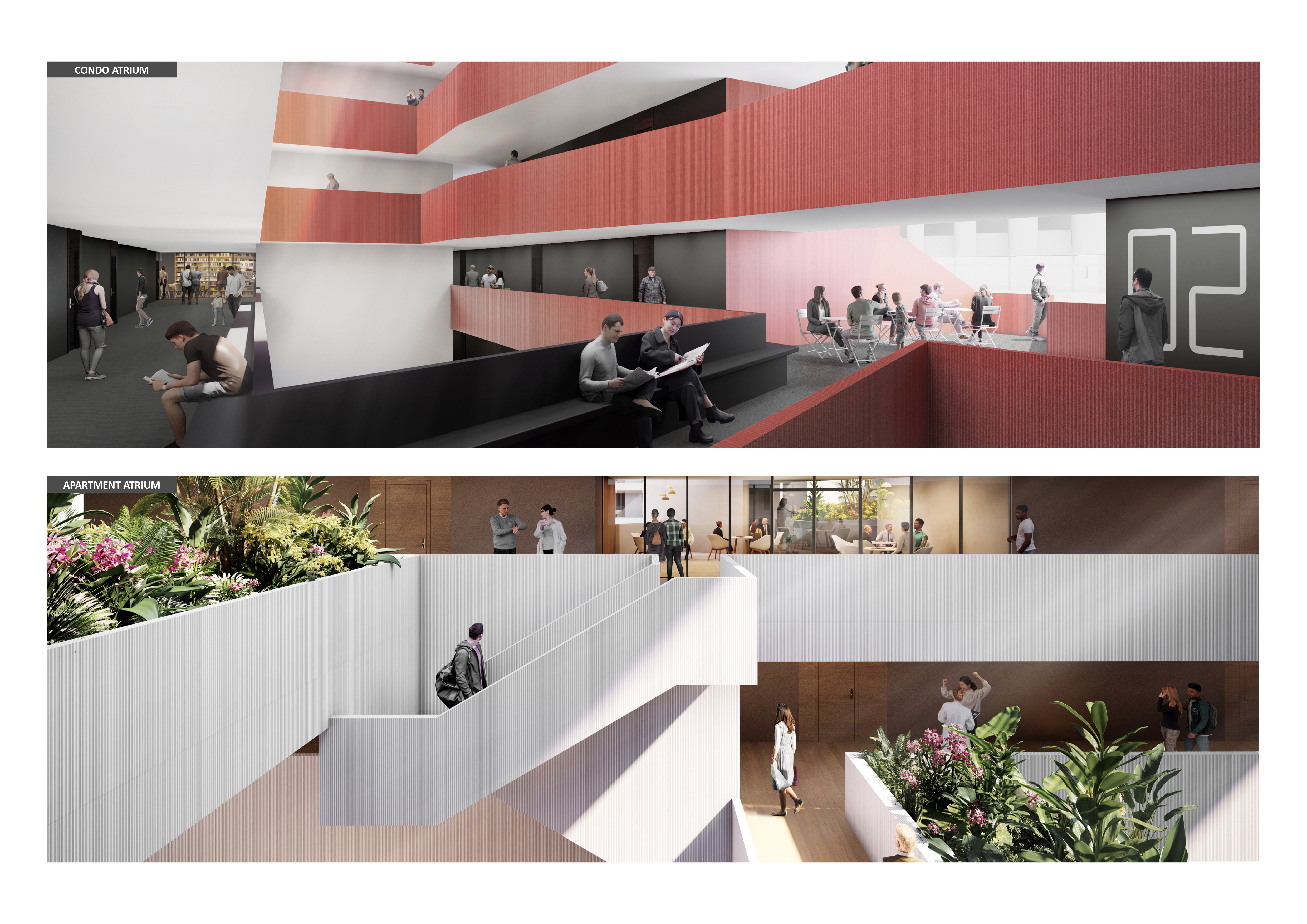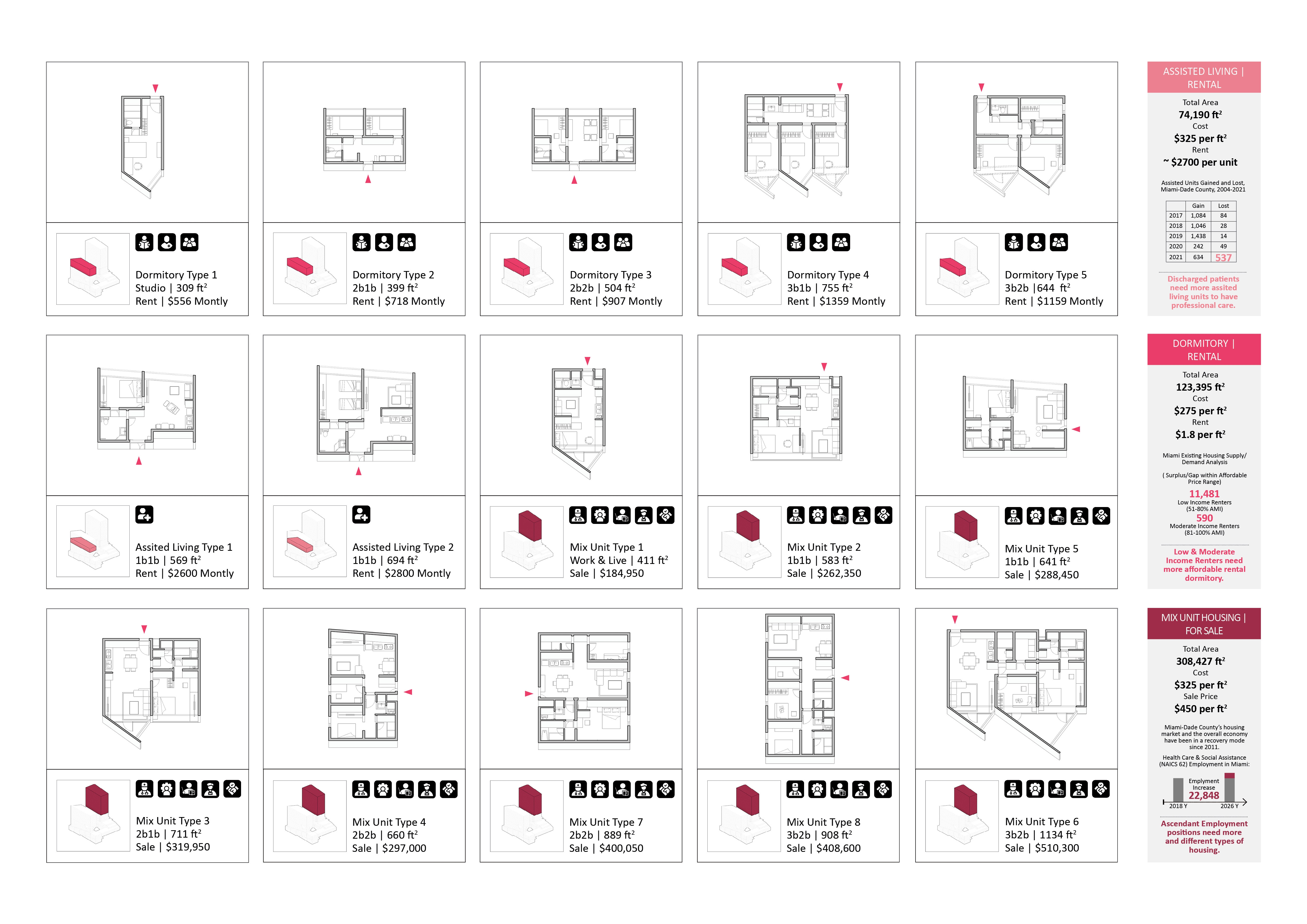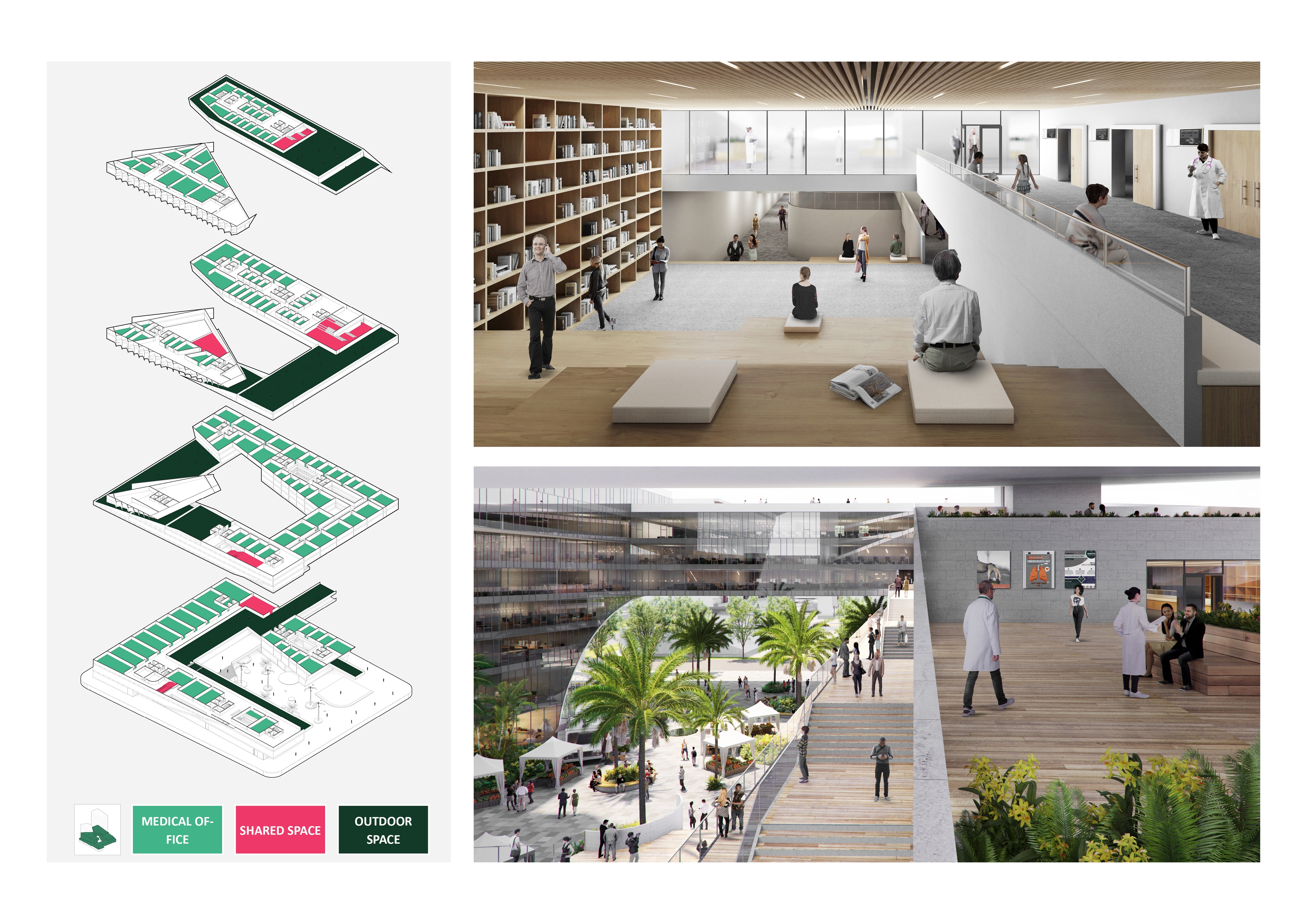 For the architectural scale, by bringing 448 units of mixed-income housing, medical office, medical community–oriented facilities, and retail into a single complex vertically, the design meets market needs to provide a quality, healthy environment for locals and future tenants.