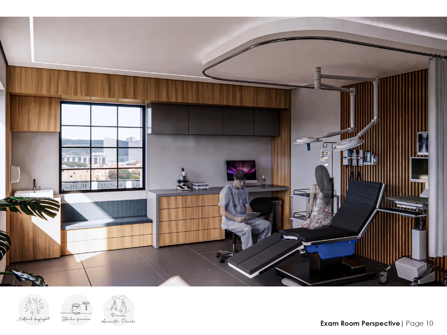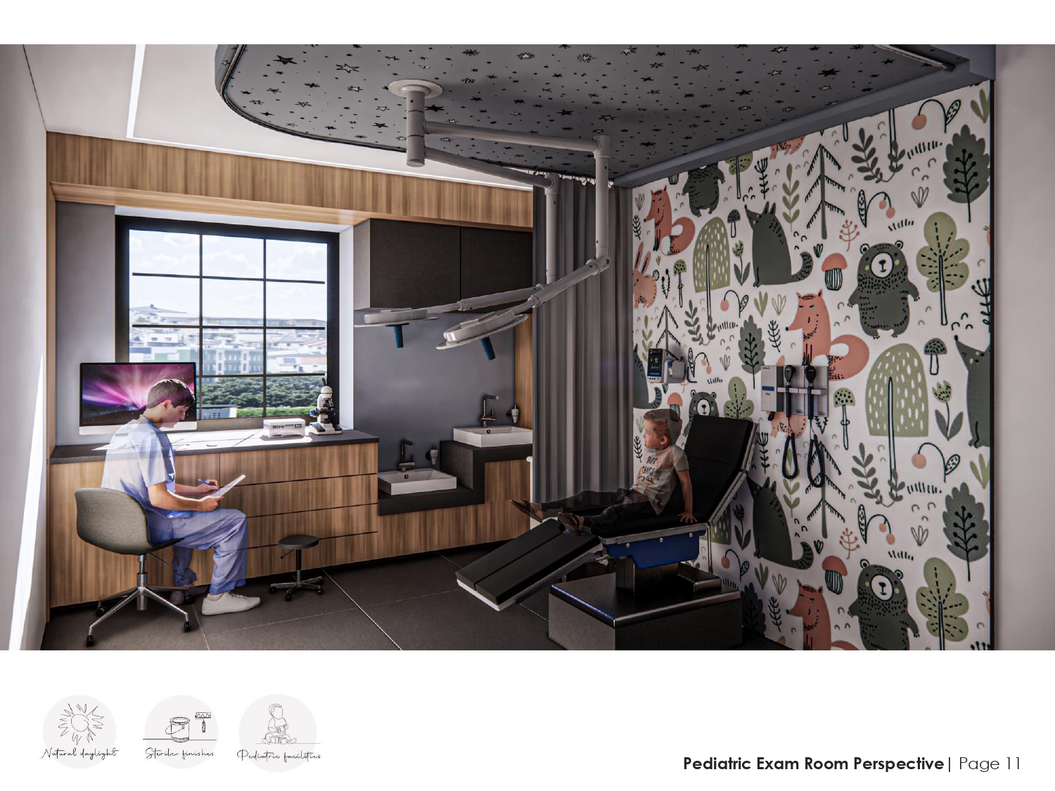 acute illness and/or injury care for all patients With a strong focus on an inclusive design we ensured specialized kitted examination rooms for pediatric, bariatric, disabled, elderly and the general