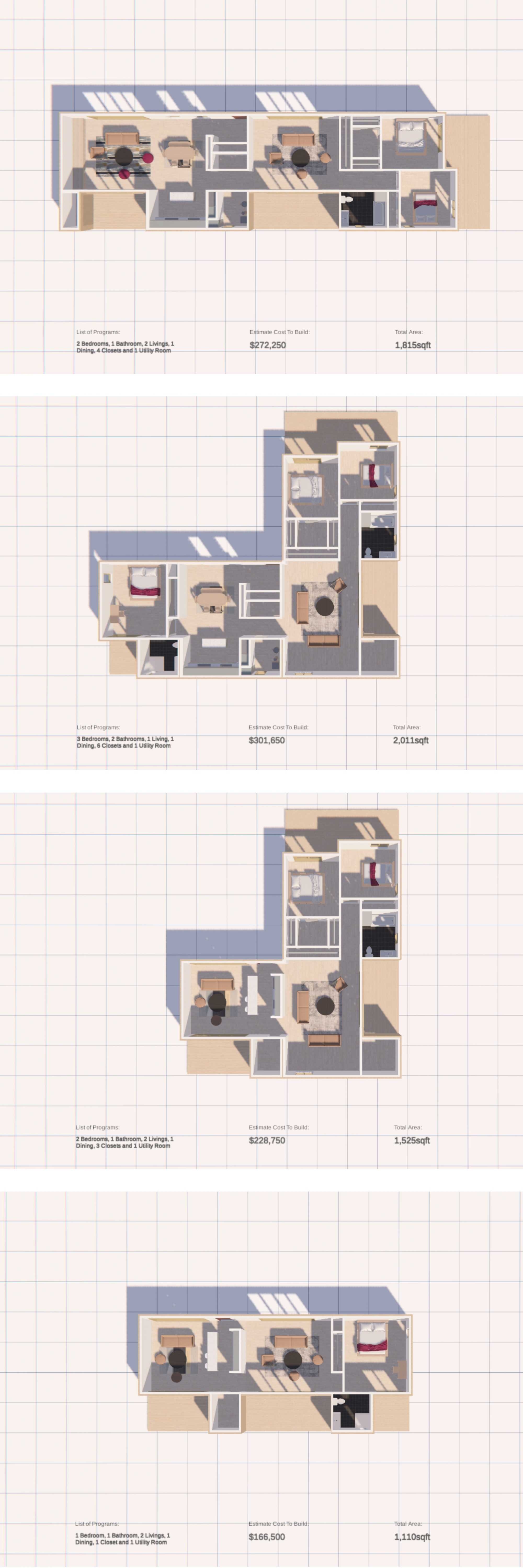 FRANK allows designers to manipulate rooms, our A.I embed the architectural knowledge required to connect and model rooms based on their location. We make designing a floor plan 100 times faster than any tools available.
