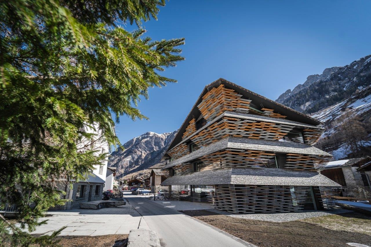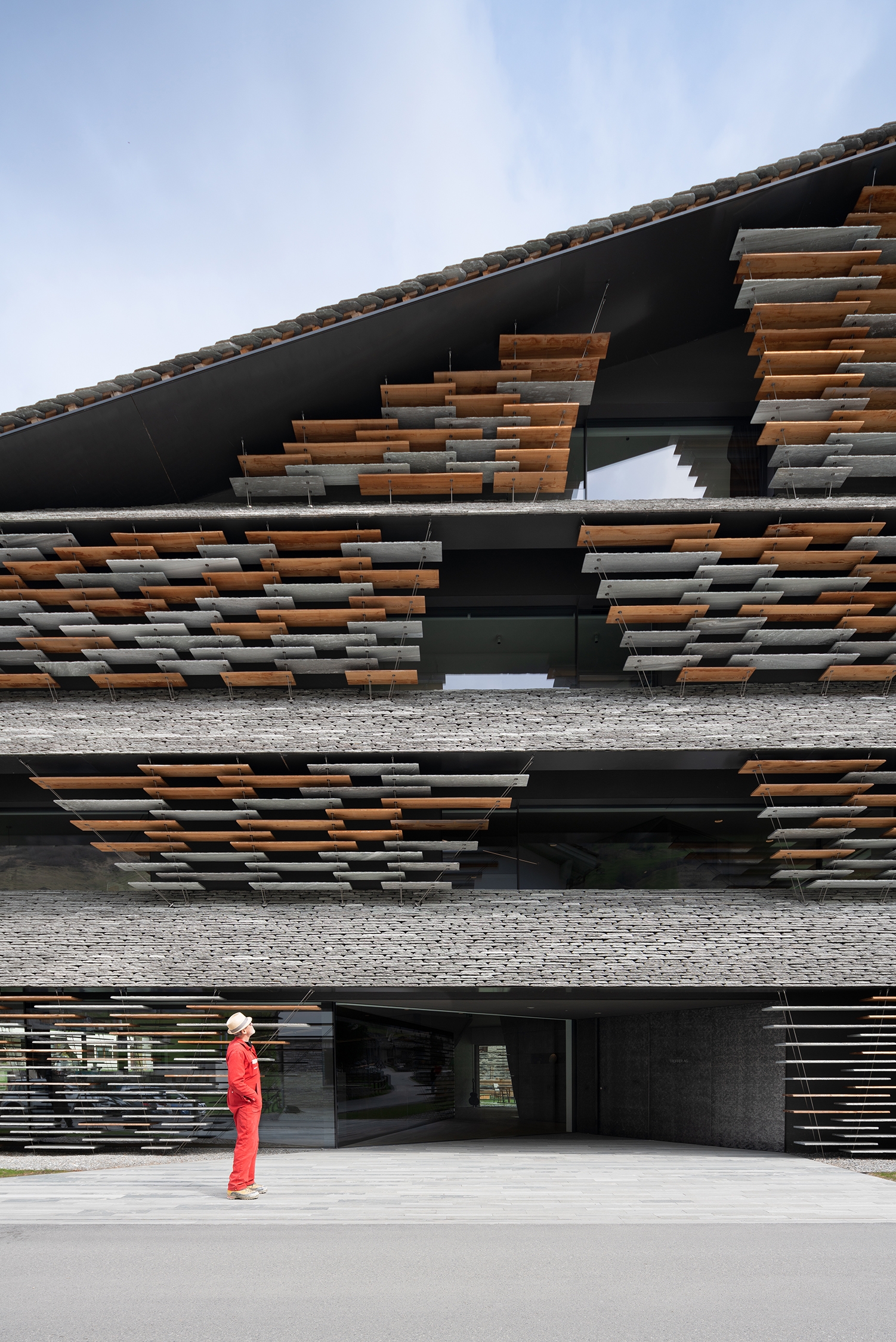 More than 10 years ago, we decided to build a new commercial and residential building in Vals, in the mountains of Grisons, Switzerland. As a company that has been involved in stone and its diverse applications in architecture for generations, finding the right architect was a major undertaking. We aimed to create a building that seamlessly blends into our traditional mountain village, without being perceived as completely out of place.
