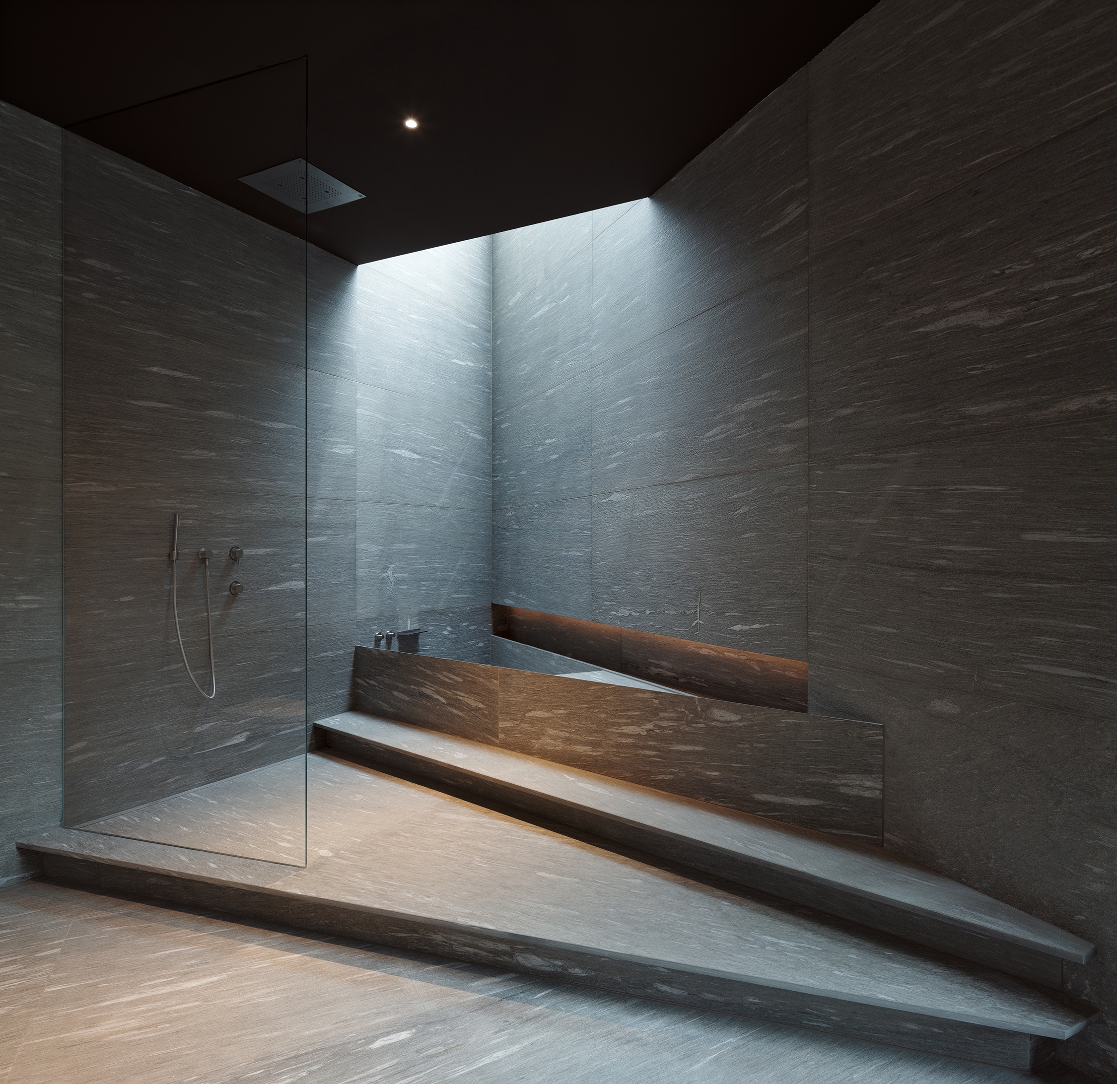 Simultaneously, we aspired to build a house that incorporates new, unconventional forms and innovative material applications while maintaining harmony with nature and its surroundings. Particularly, we wanted our stone to play a central role in creating harmony alongside other materials such as wood, metal and glass. In Kengo Kuma we found the perfect architect to transform our dreams into reality.