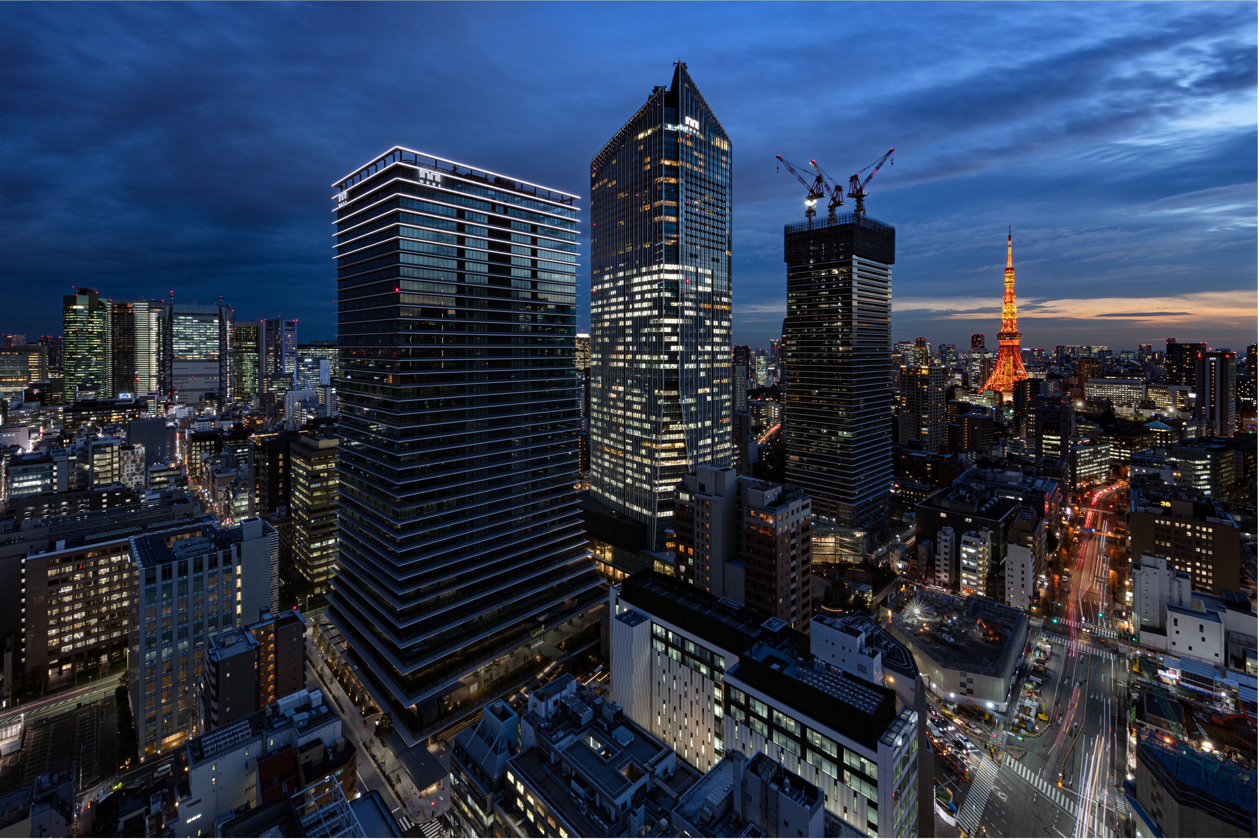 One of Tokyo’s tallest skyscrapers, is flanked by two impressive new companions: an office tower, 36 stories and 185 metres high, and a residential tower, Japan’s tallest residential skyscraper at 54 stories and 220 metres high.