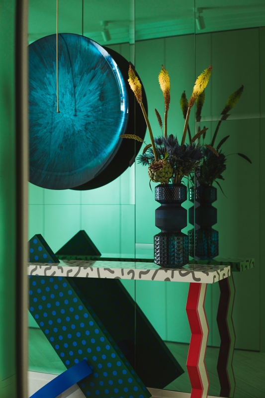The realisation of this project was a multi-level challenge, in particular the incorporation and neutralisation of the found elements in the project which, as it turned out, were contrary to the owner’s expectations and expression. Following the dream of our client Barbara, we immersed ourselves in the postmodernism of the Italian group “Memphis” and, on the other hand, in the Pop-art aesthetics of the 1960’s and 1970’s. It was quite a difficult and unconventional combination, but it turned out to be a platform for a lot of interesting ideas: full of intensity, colours and details mostly ending up in very individual furniture designs and patterns.