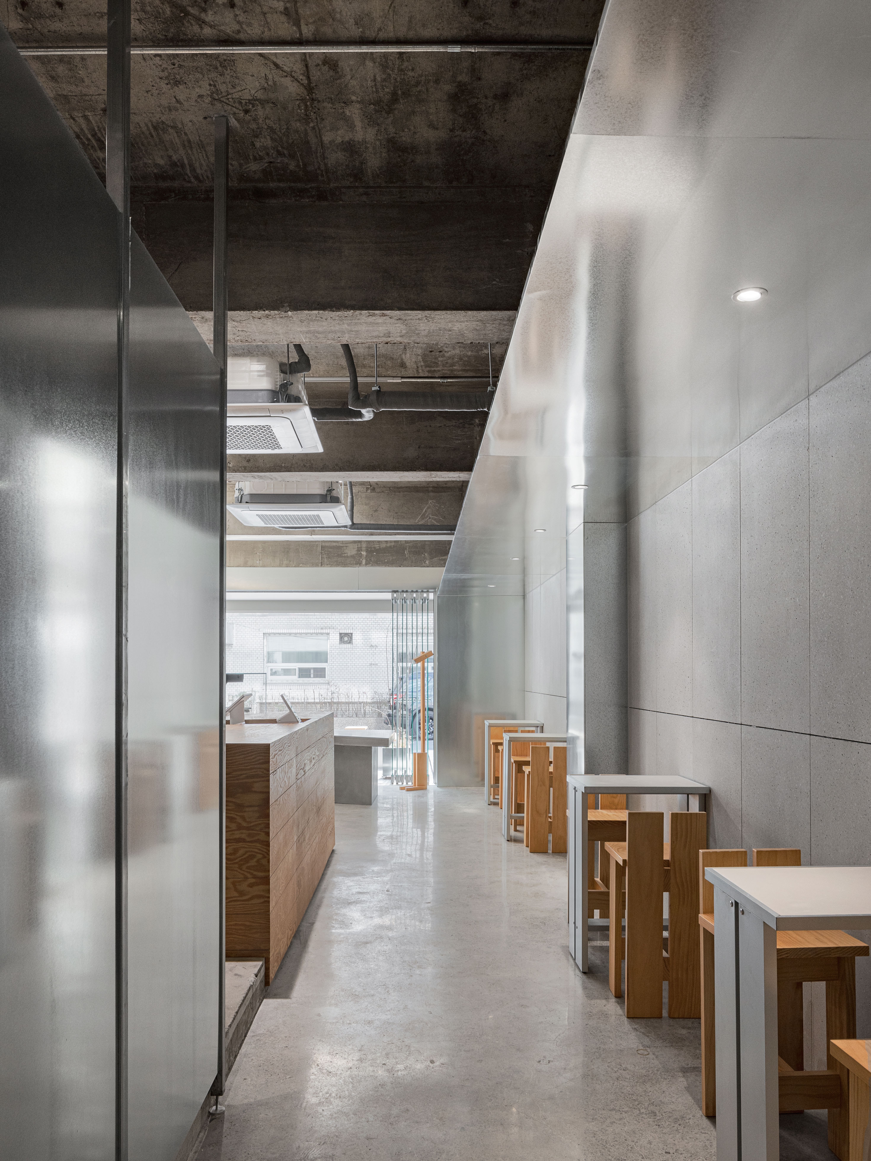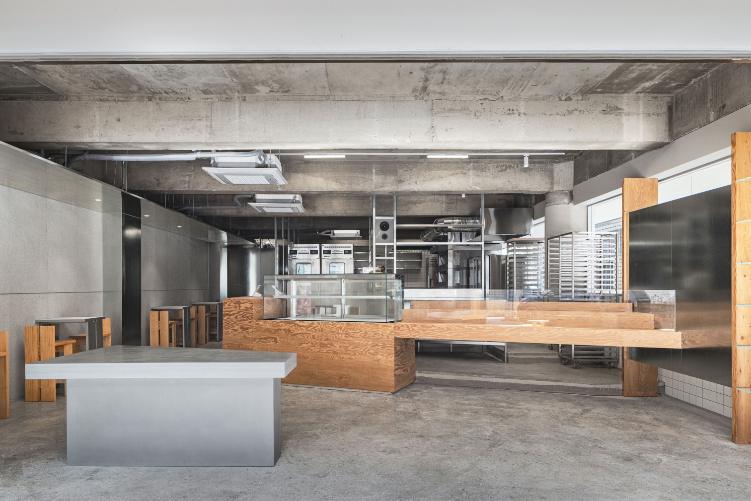 By emphasizing the primitive properties of materials such as concrete and wood as much as possible, a comfortable atmosphere was created, and naturalness could be expressed without being processed.