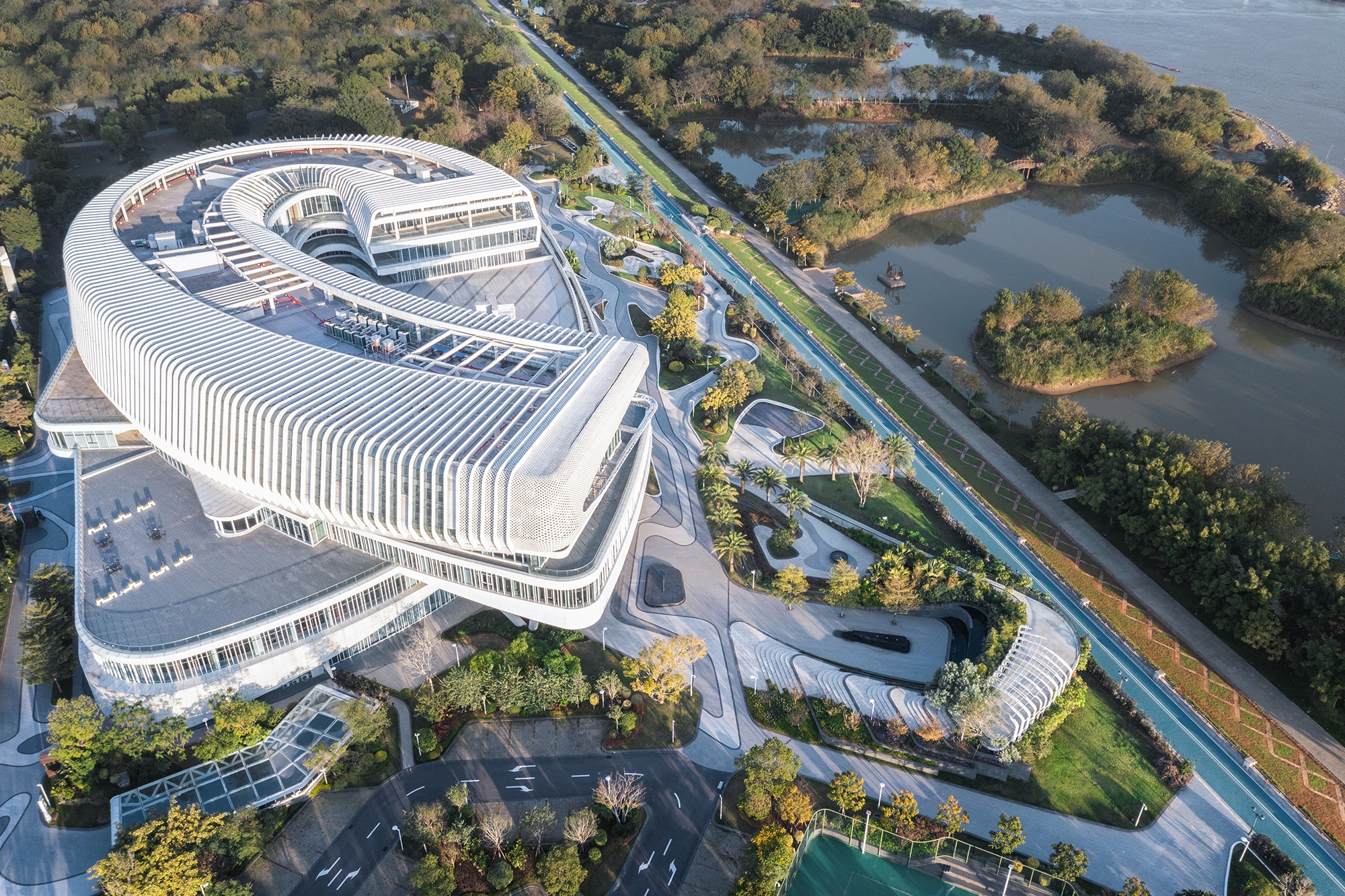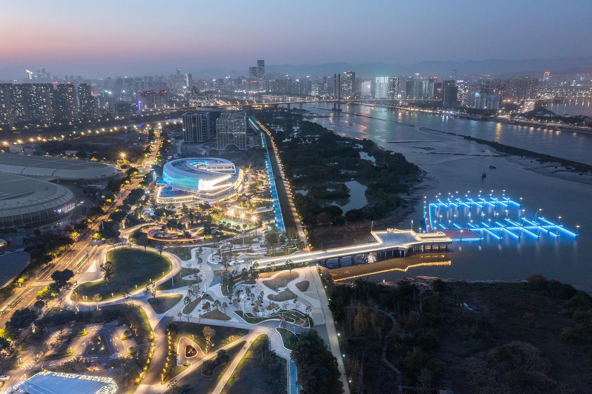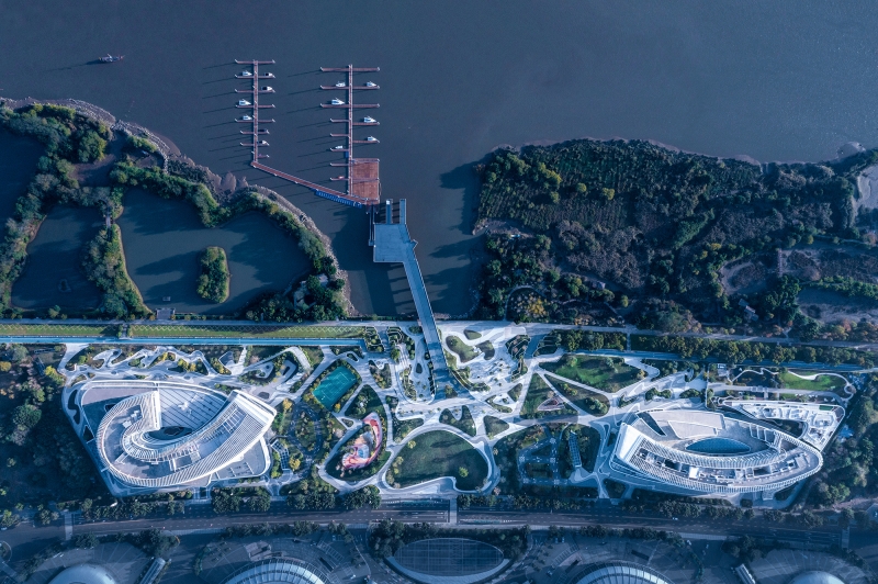 Nestled beautifully on the scenic banks of the Minjiang River, lies a spectacular new international yacht club marina project that offers an exquisite blend of four major businesses including business office, yacht club, commercial and serviced apartments. The design of this stunning project is inspired by the river's flowing aesthetics and incorporates themes such as "encounter", "qualitative change", "rhythm" and "slow flow". The result is a breathtaking landmark in Fuzhou, which beautifully highlights the local landscape characteristics, shipbuilding, and Tulou culture. This magnificent structure establishes an alluring connection between the city, nature, and humanity, making it a must-visit spot for everyone who loves to admire the beauty of architecture.