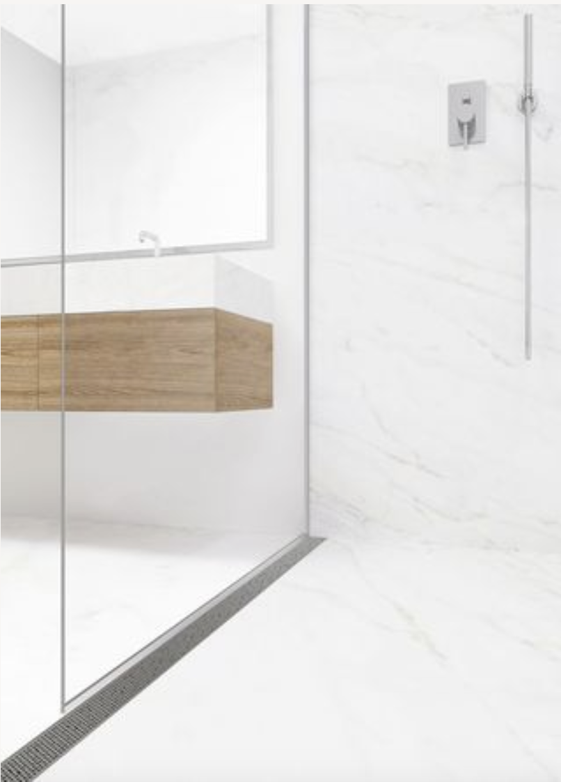 It is offered as part of Infinity Drain’s patented Site Sizable® and fixed length linear drain series in a variety of lengths and ten finishes. And for those following the trend of modern fabric waterproofing, it also comes with optional factory-applied Schluter®-KERDI.