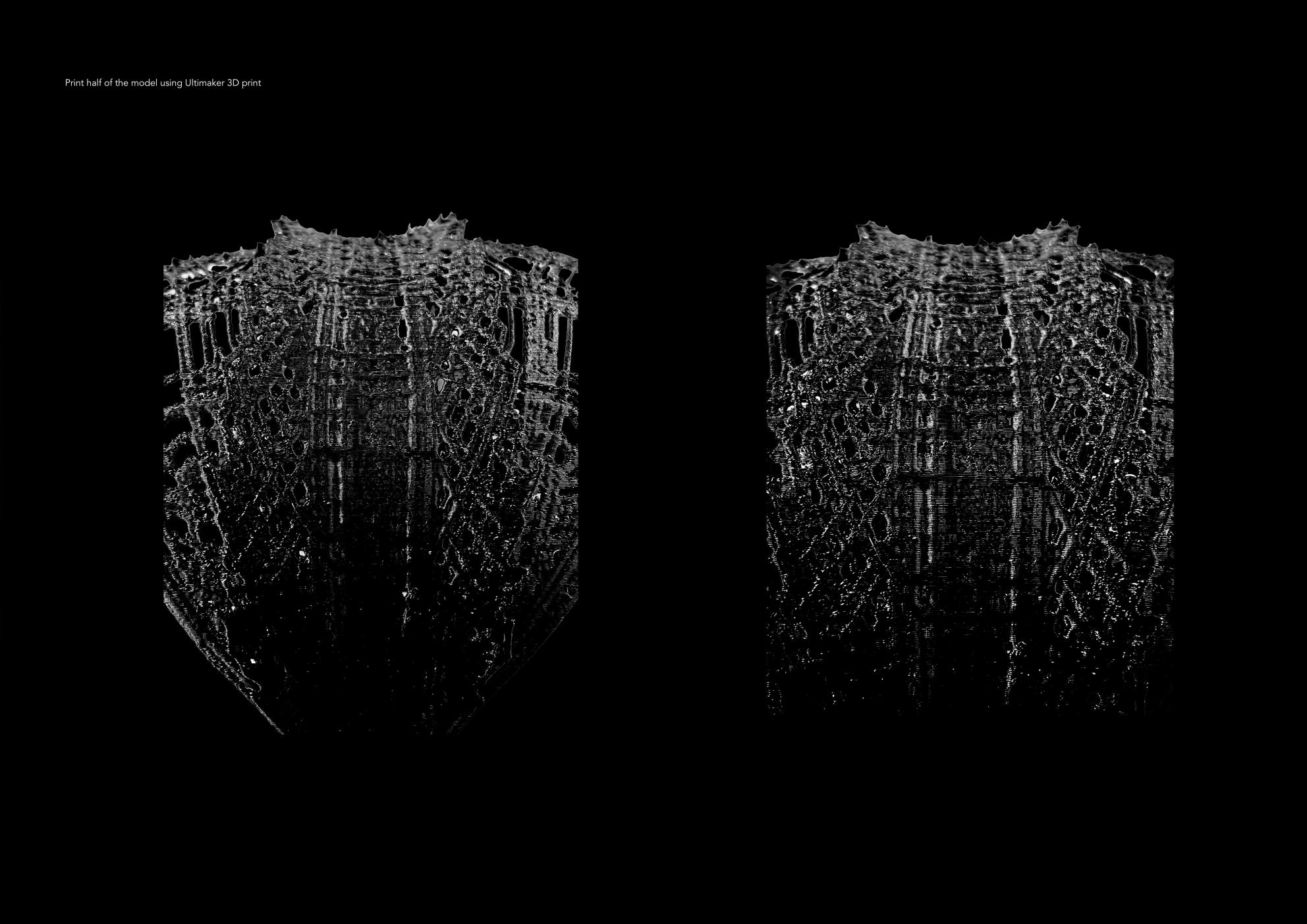 Exoskeletons is a lightweight structure that fuses advancements in additive manufacturing with bio-inspired computational design. These internal geometry form the structure, which varies in density and orientation according to a homeostatic load-responsive process, which makes them adapt to local strain levels within a structure.